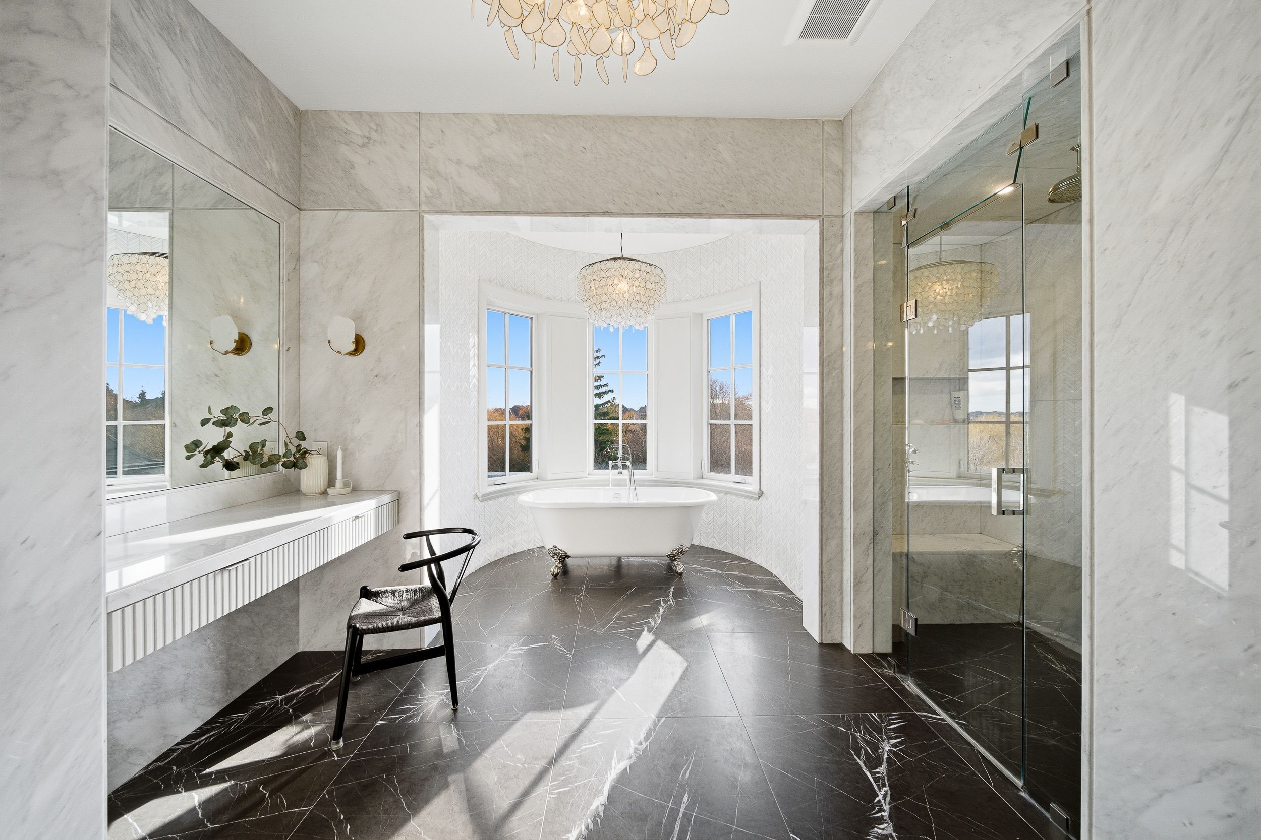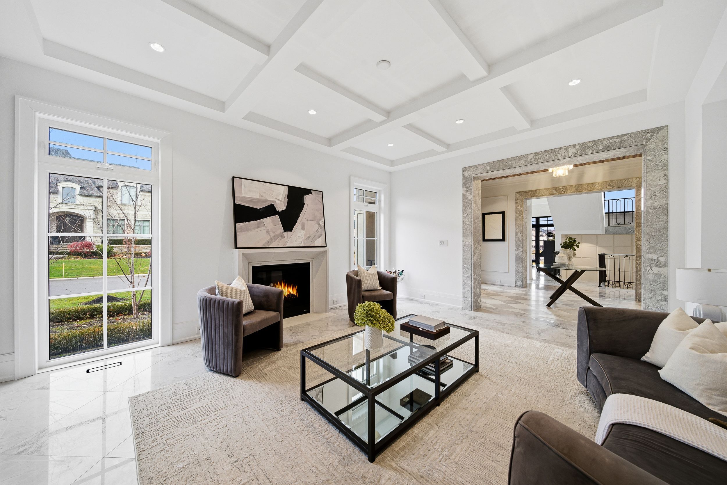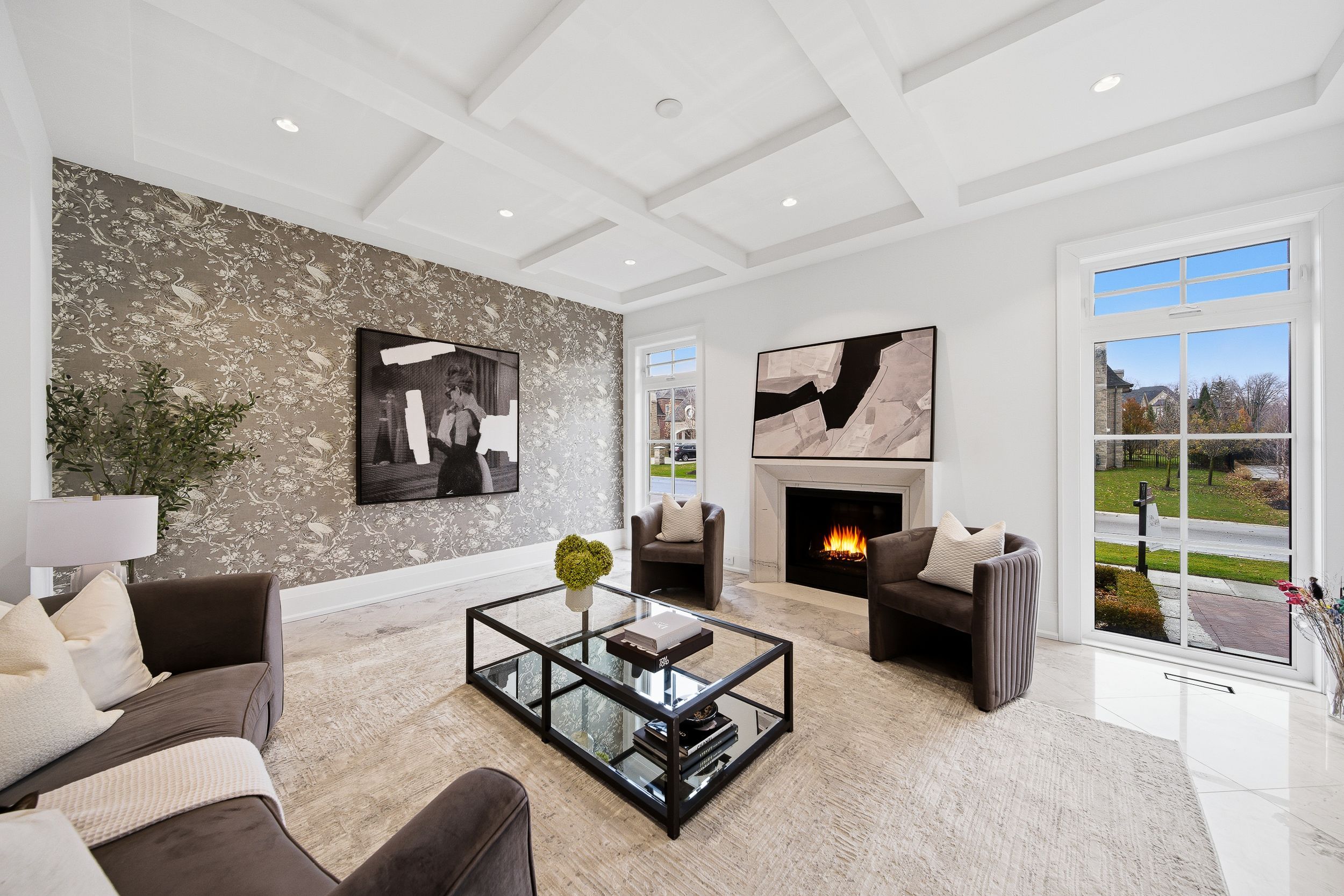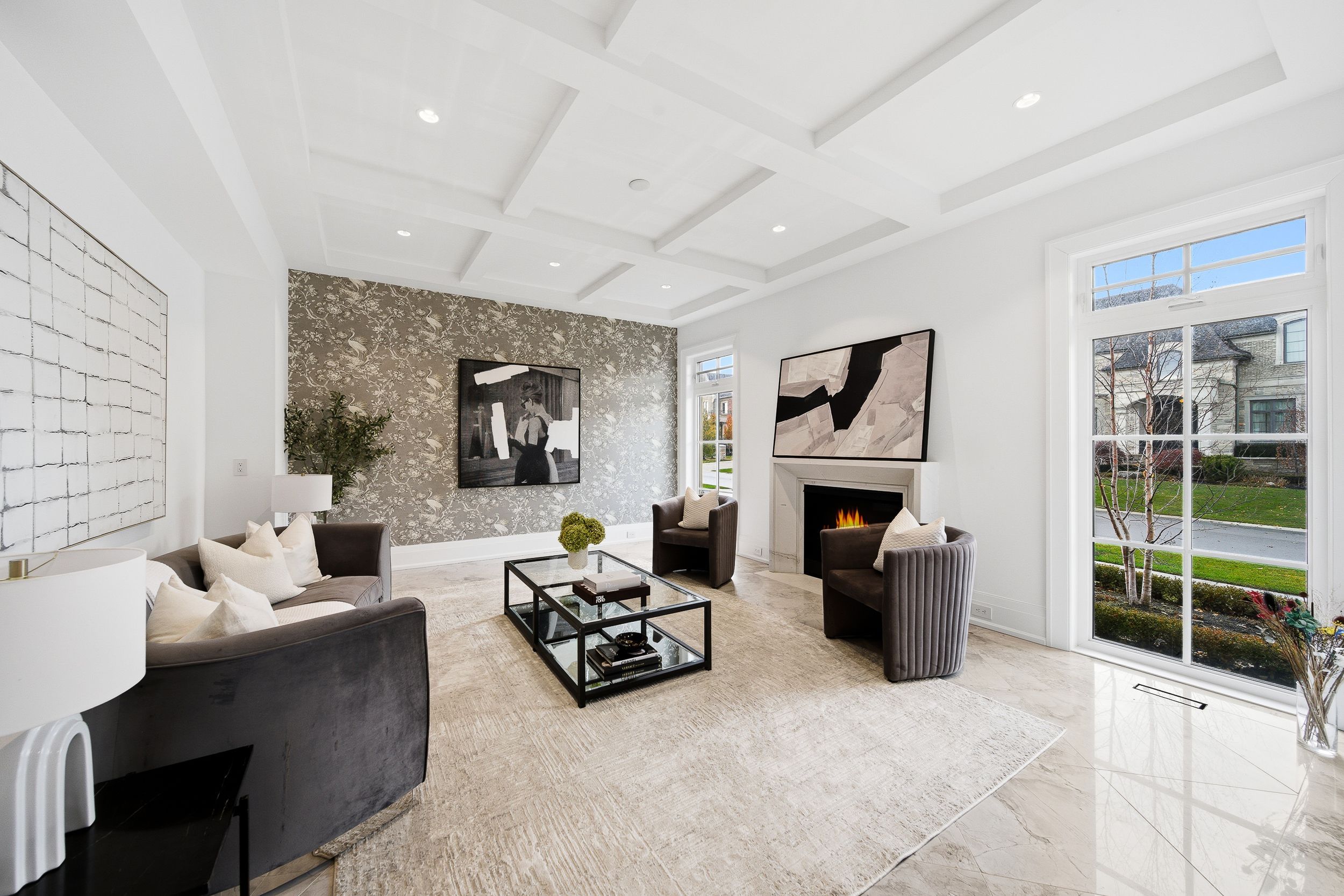 Experience uncompromising luxury in this custom-built estate offering approximately 9,500 sq. Ft. Of total living space, set on over half an acre backing onto a private ravine. Designed with exceptional craftsmanship, this residence features 10. 5' main-floor ceilings, 10' ceilings on the second level, and approximately 9' ceilings in the walk-out lower level, all enhanced by custom millwork, natural stone slab flooring, white oak hardwood, and multiple designer fireplaces. With five bedrooms plus an additional nanny suite, the home is ideal for multi-generational living. The chef's kitchen showcases solid wood cabinetry, walnut detailing, a 60" thermador panelled fridge/freezer, 48" rangetop, double bosch ovens, a walk-in pantry and honed marble surfaces. The spa-like primary retreat includes slab marble walls, a steam shower, victoria & albert tub, heated floors and exquisite mother-of-pearl accents. Additional ensuites feature marble finishes, heated floors and premium fixtures. A main-floor guest suite, two laundry rooms, built-in closet lighting and full smart-home automation elevate everyday living. The walk-out lower level offers a gym with sauna, nanny quarters, cantina, bar area and a future theatre room. A 3-car garage with oversized 9' x 9' doors provides the option to install lifts for additional vehicle storage. Outdoors, enjoy a resort-style 16' x 38' saltwater pool with omni logic automation, a cabana with kitchen and bath, outdoor shower, two loggias with a fireplace and bbq, and extensive professional landscaping. A rare offering that blends modern elegance, advanced technology and exceptional indoor-outdoor living.