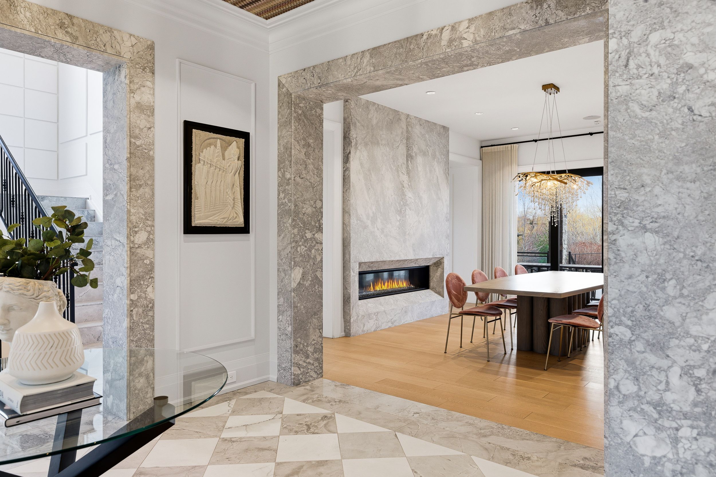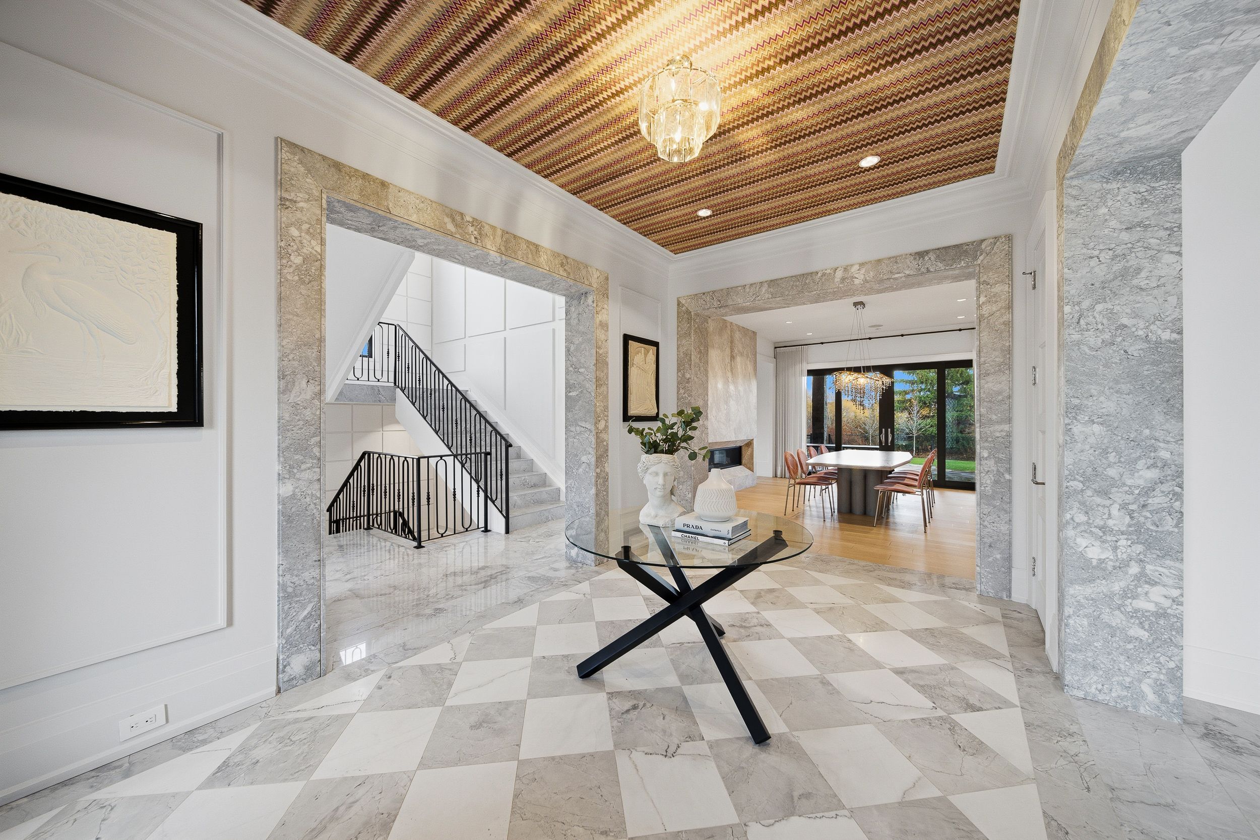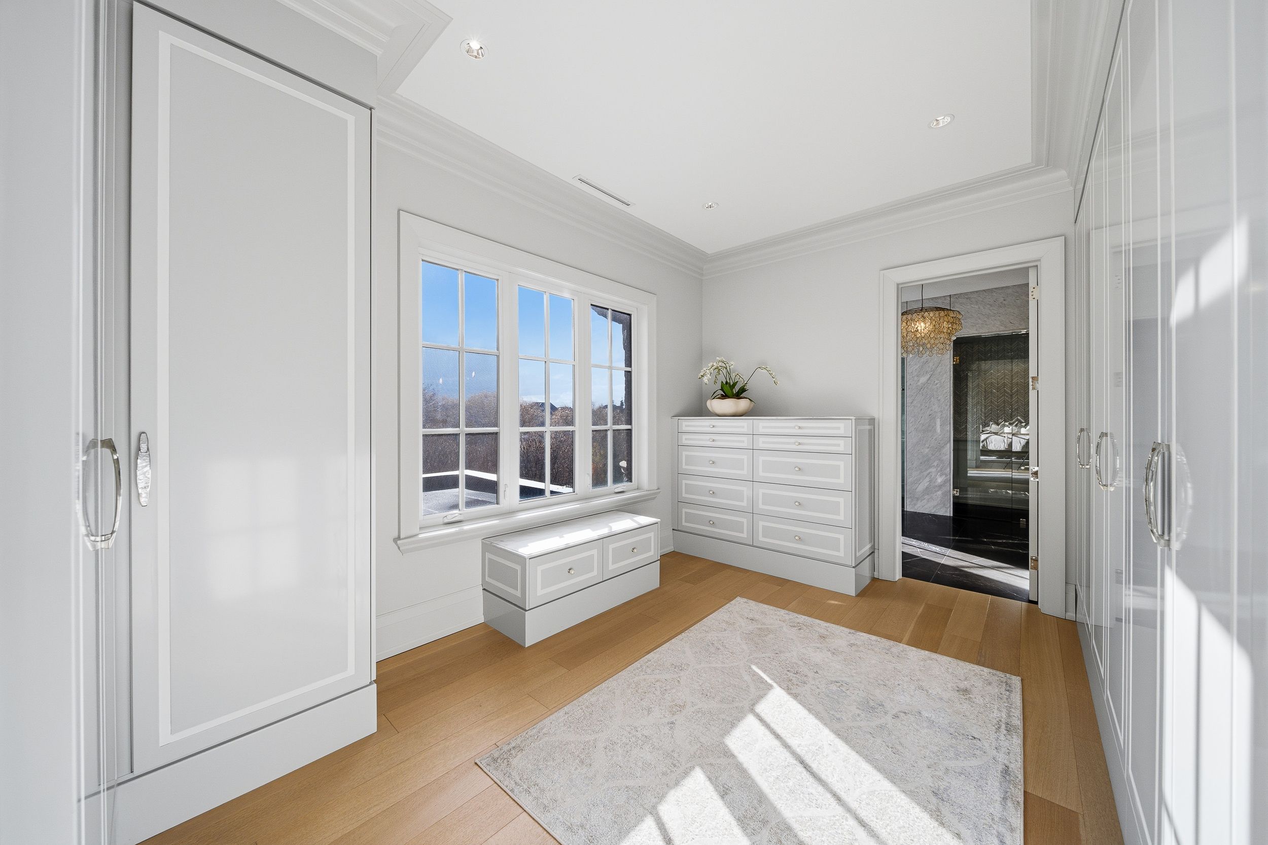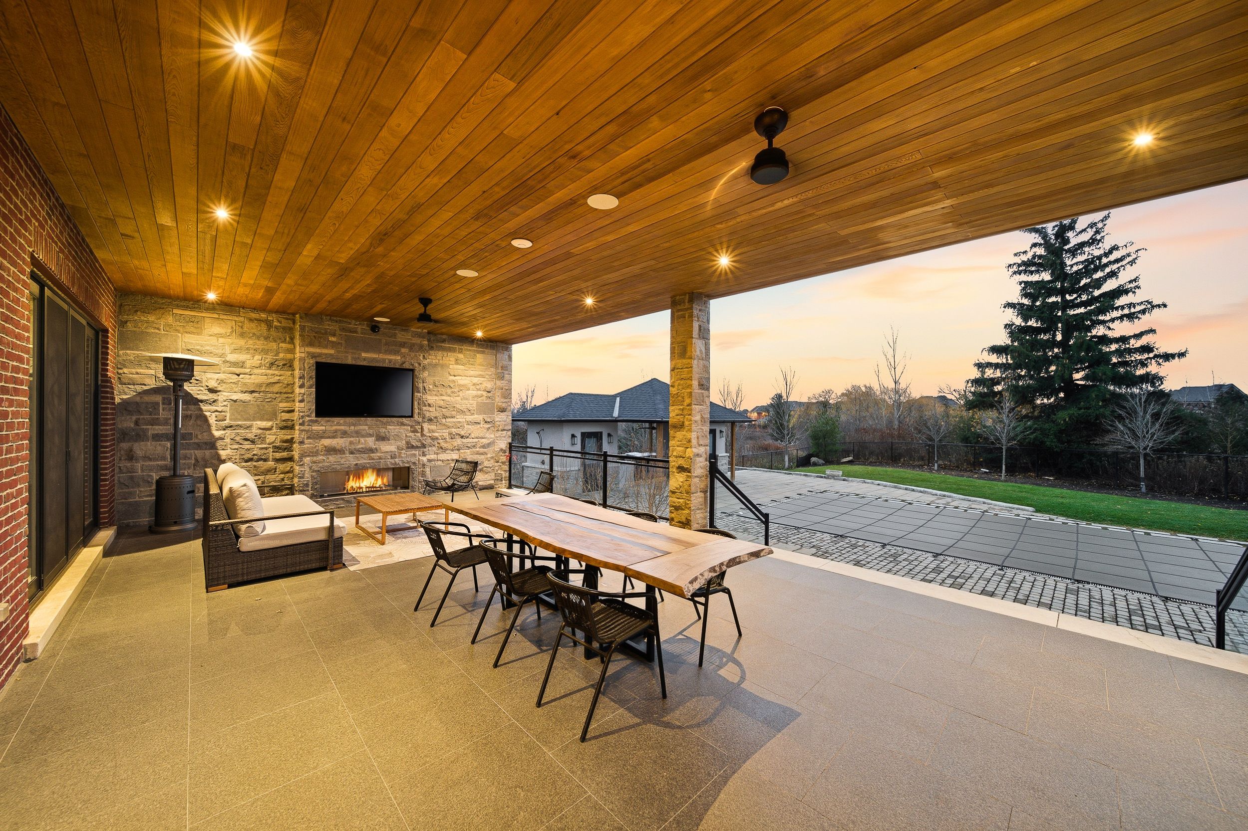 Experience uncompromising luxury in this custom-built estate offering approximately 9,500 sq. Ft. Of total living space, set on over half an acre backing onto a private ravine. Designed with exceptional craftsmanship, this residence features 10. 5' main-floor ceilings, 10' ceilings on the second level, and approximately 9' ceilings in the walk-out lower level, all enhanced by custom millwork, natural stone slab flooring, white oak hardwood, and multiple designer fireplaces. With five bedrooms plus an additional nanny suite, the home is ideal for multi-generational living. The chef's kitchen showcases solid wood cabinetry, walnut detailing, a 60" thermador panelled fridge/freezer, 48" rangetop, double bosch ovens, a walk-in pantry and honed marble surfaces. The spa-like primary retreat includes slab marble walls, a steam shower, victoria & albert tub, heated floors and exquisite mother-of-pearl accents. Additional ensuites feature marble finishes, heated floors and premium fixtures. A main-floor guest suite, two laundry rooms, built-in closet lighting and full smart-home automation elevate everyday living. The walk-out lower level offers a gym with sauna, nanny quarters, cantina, bar area and a future theatre room. A 3-car garage with oversized 9' x 9' doors provides the option to install lifts for additional vehicle storage. Outdoors, enjoy a resort-style 16' x 38' saltwater pool with omni logic automation, a cabana with kitchen and bath, outdoor shower, two loggias with a fireplace and bbq, and extensive professional landscaping. A rare offering that blends modern elegance, advanced technology and exceptional indoor-outdoor living.