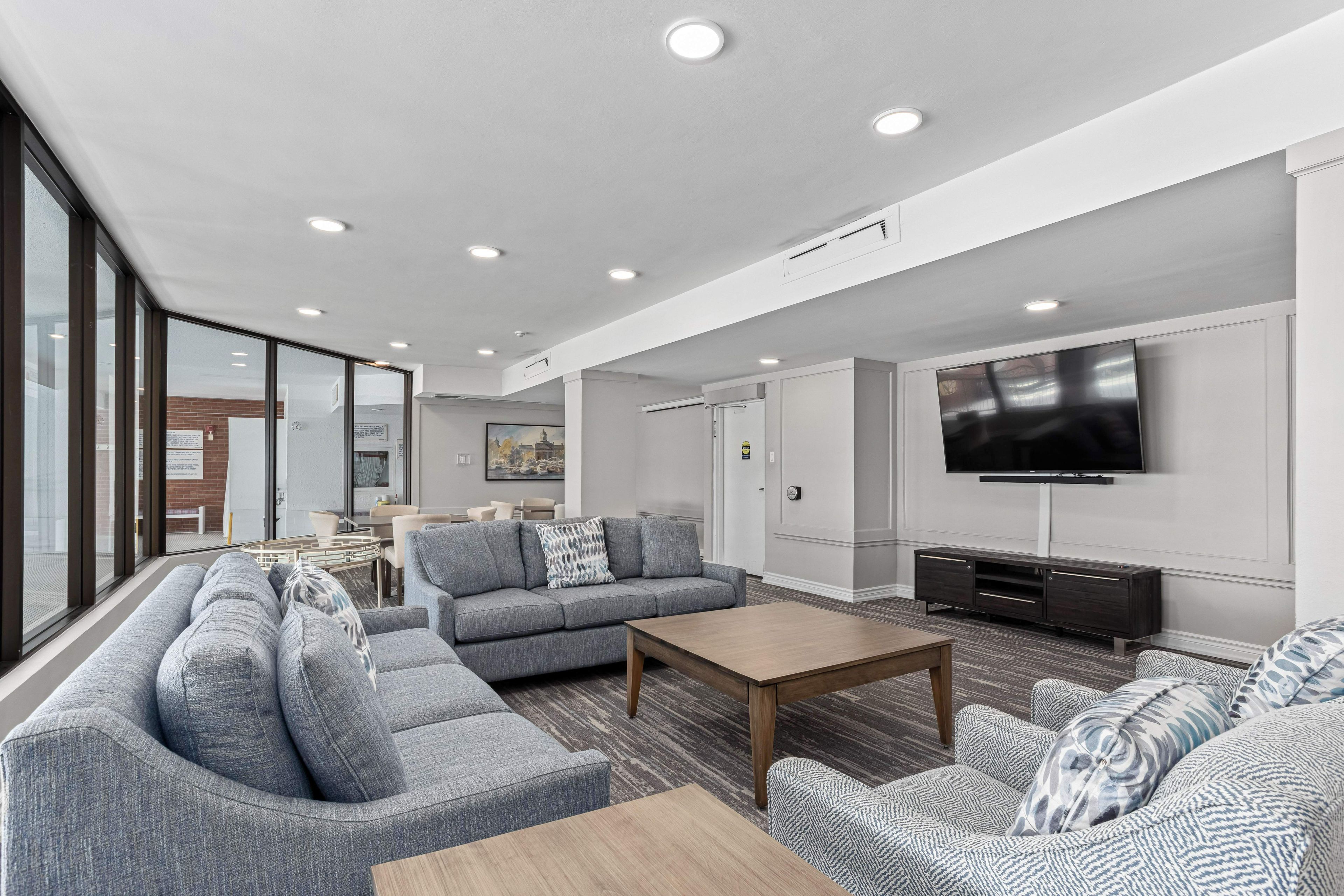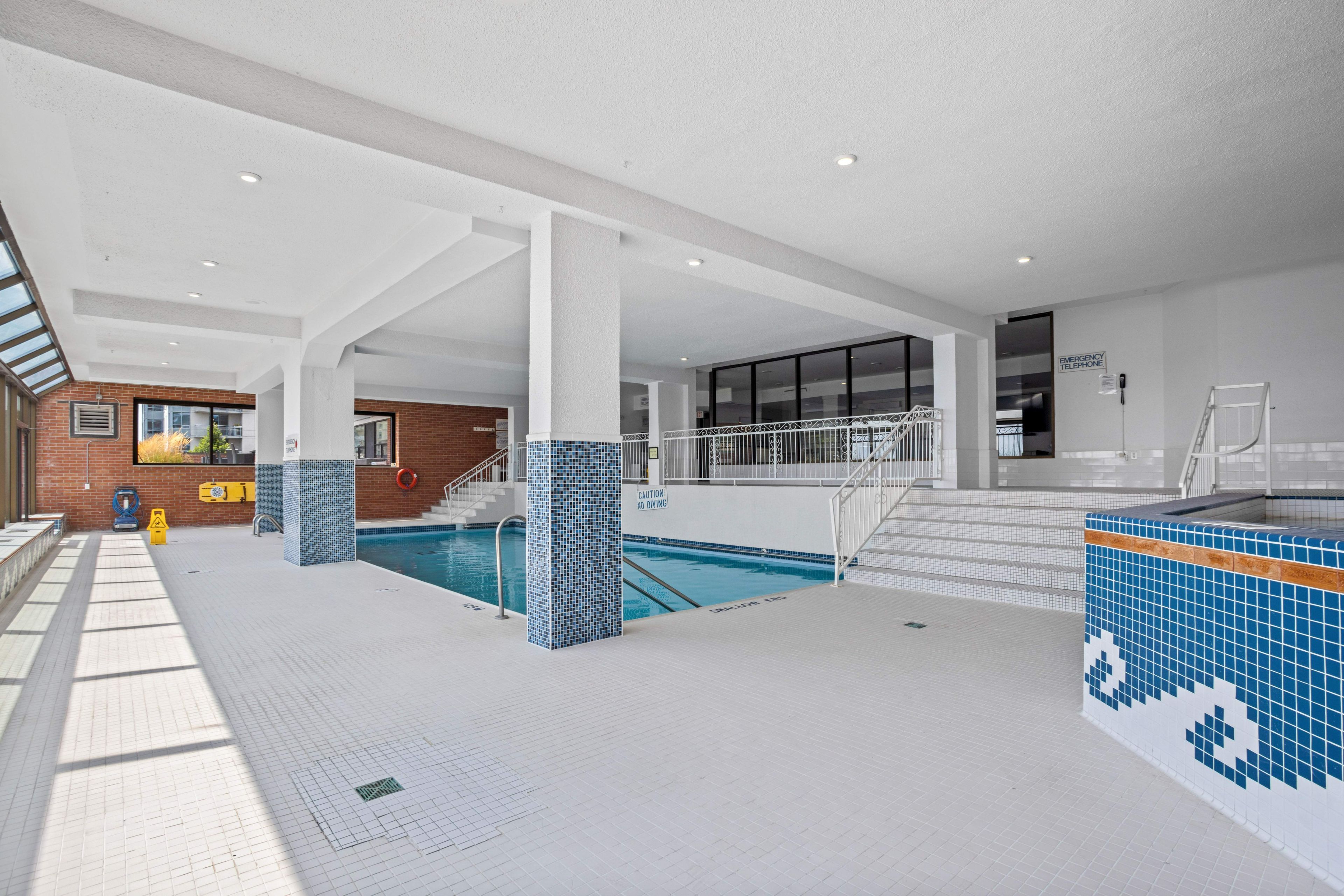 • Building amenities include indoor pool, hot tub, and exercise room.