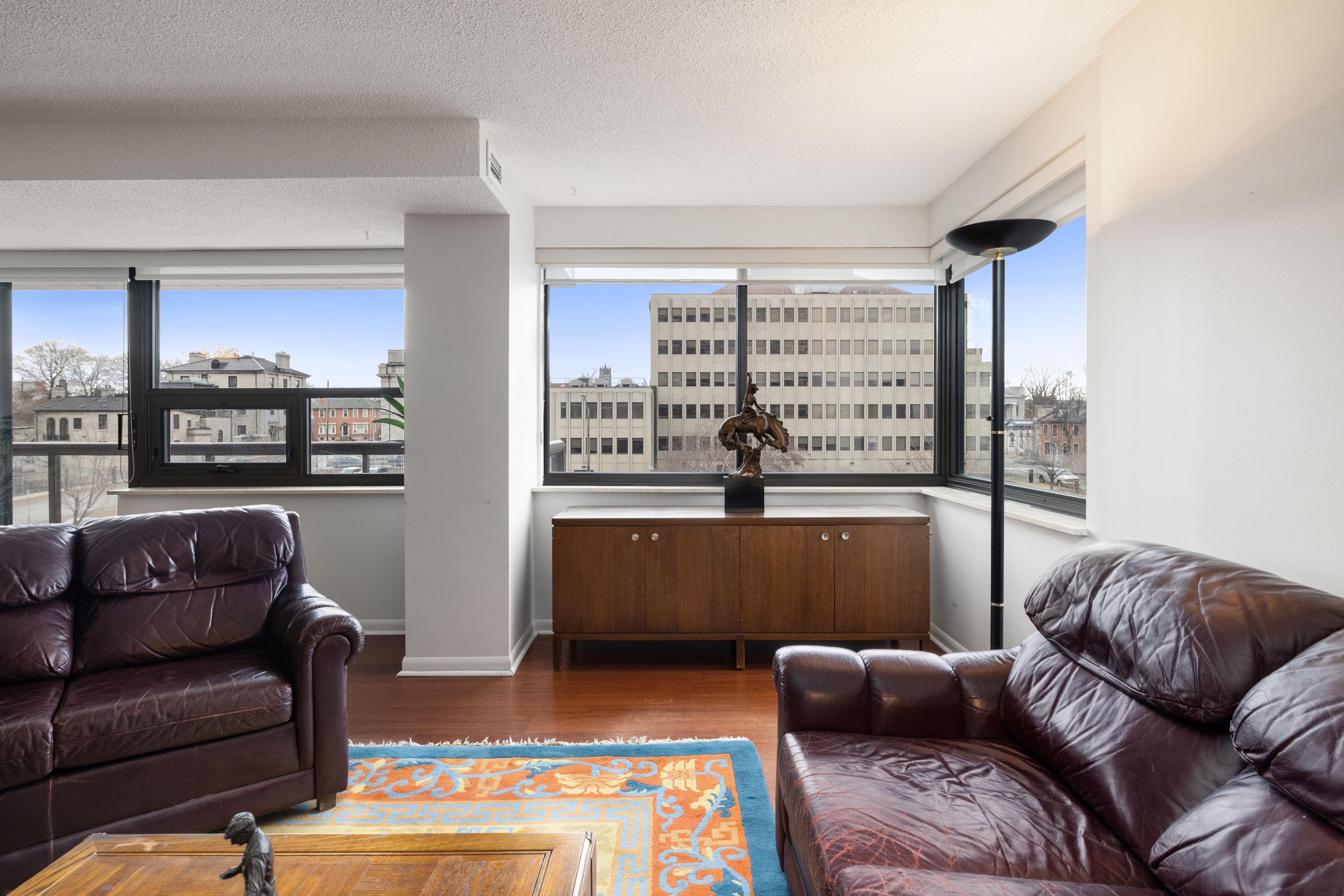 • Bright living area with balcony views of the city.