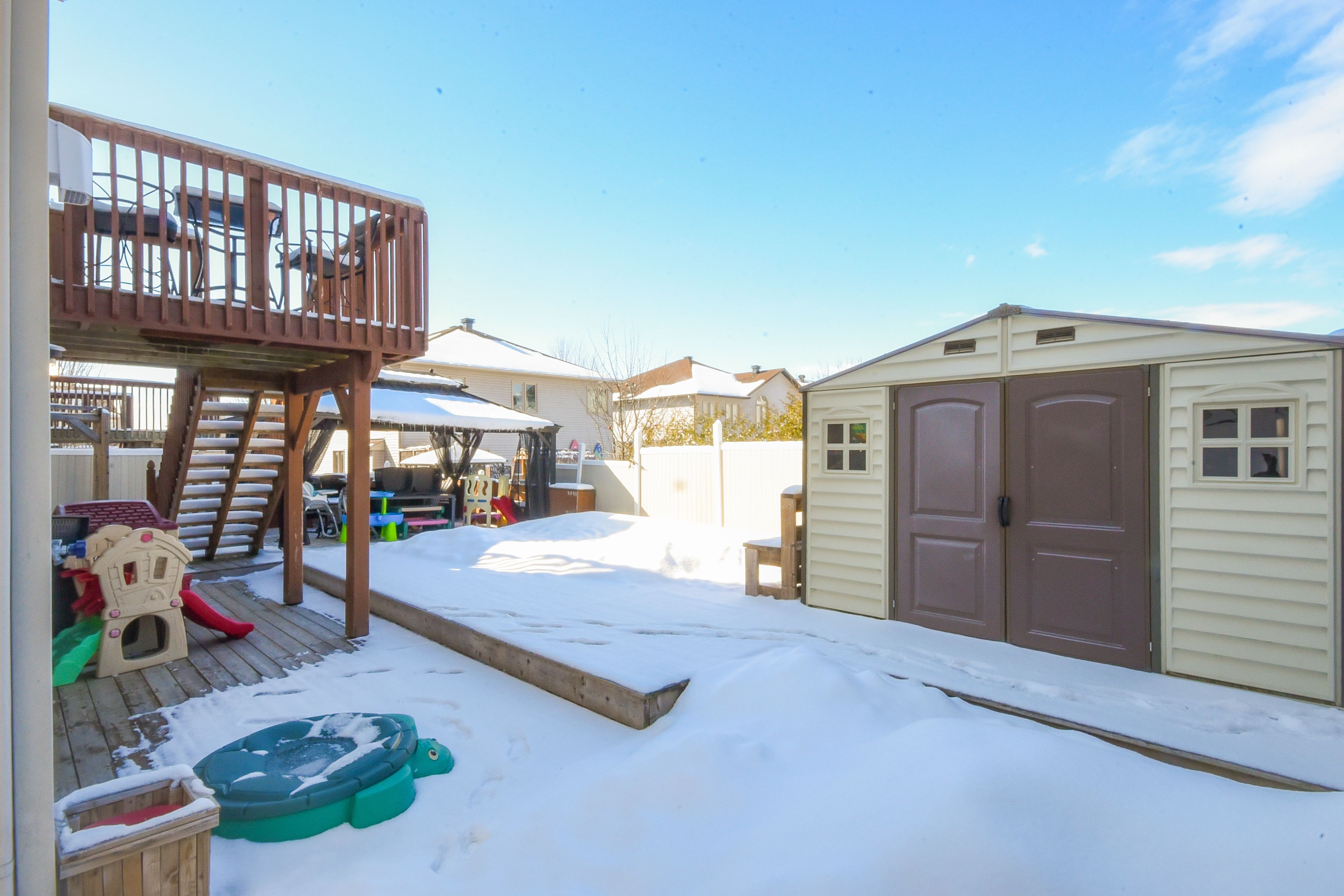 Turnkey investment opportunity! This impeccably maintained 2011 all-brick 4+1 bedroom home offers exceptional versatility and income potential. Featuring a fully finished basement with a separate side entrance, the lower-level is ideally suited for conversion into a secondary suite, complete with a spacious living area, additional bedroom, and both a full and half bathroom- perfect for generating additional cash flow or accommodating multi-generational living! The main floor showcases an impressive, upgraded entranceway with an expansive, open concept design that sets the tone for the home. A beautifully appointed kitchen features sleek granite countertops and patio doors that open to a private, fully-fenced backyard with a multi-tiered deck and large storage shed - ideal for outdoor living. The level is thoughtfully laid out with a separate dining room, a convenient office/ den, a sun-filled living room with oversized windows, and an inviting family room. Completing the main floor are a 2 piece bath, convenient laundry, and direct access to the double car garage. The second level offers an exceptionally spacious primary retreat complete with a walk-in-closet and well-appointed four-piece ensuite, featuring a glass-enclosed shower, elegant tile work, a relaxing soaker tub, vanity and toilet. This level is complimented with 3 additional well-sized bedrooms and a full four-piece main bathroom. With strong income potential, a functional lay-out, and quality finishes throughout,this property presents a rare opportunity for investors and homeowners alike in a highly desirable setting. All showings to go through listing agent.- 24 hour irrevocable on all offers.