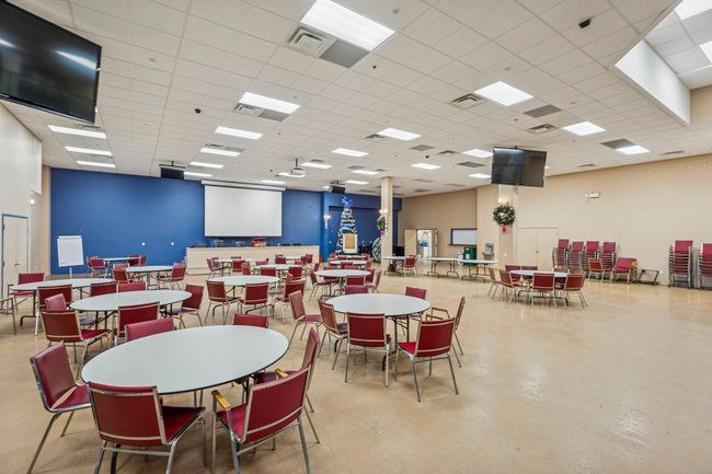 • Union Hall area offers event space and kitchen, adaptable for various uses.