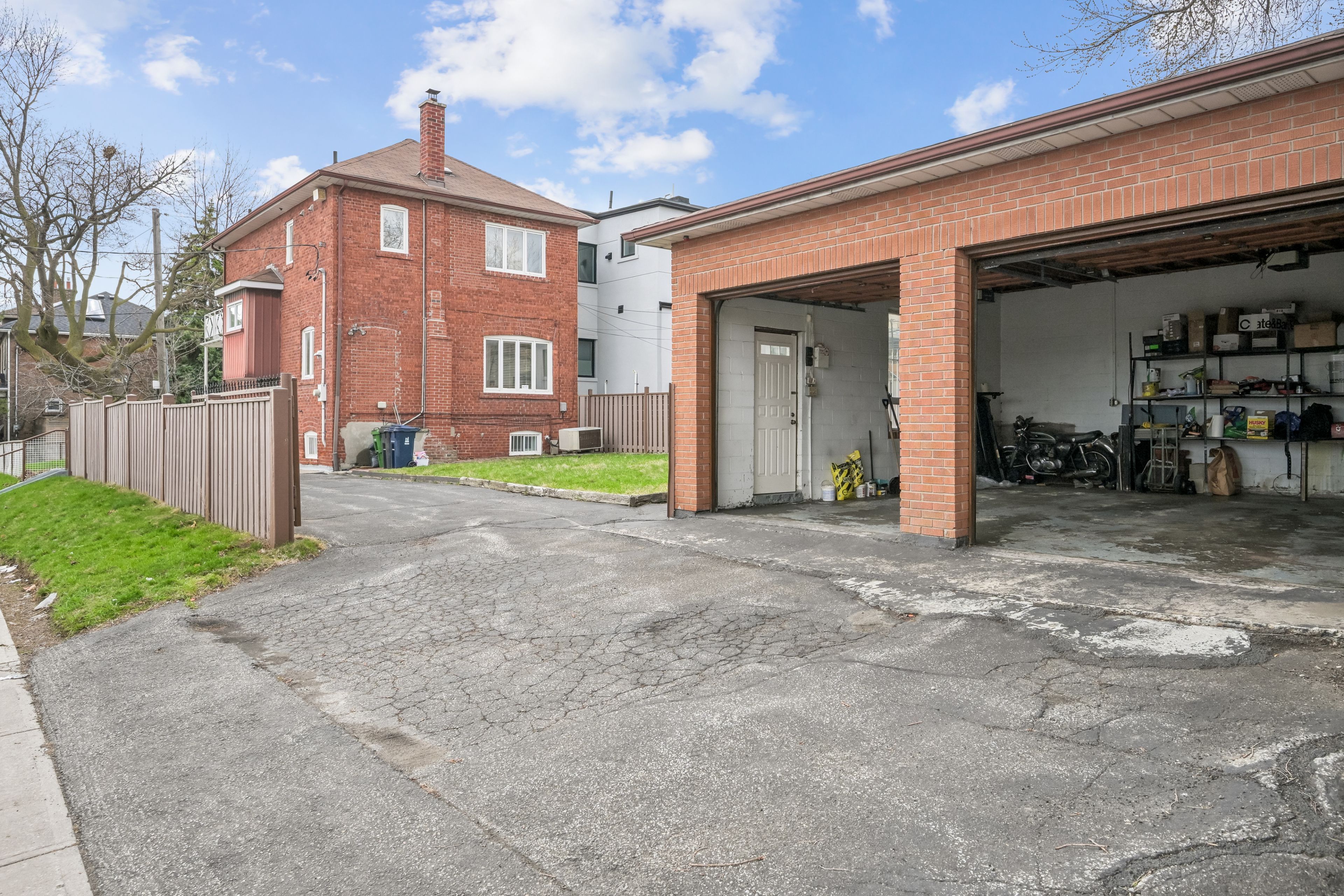 Fantastic detached 2 1/2 storey brick home in a highly sought-after neighbourhood, lovingly maintained by the same family for over 27 years. Situated on a generous 39. 5 ft x 112 ft lot, this incredibly versatile property offers exceptional potential-whether you're looking to sever(buyer to do due diligence), develop, create an income-generating investment, live and rent, or simply enjoy as a spacious family home. This bright and inviting residence features east/west exposure, filling the home with natural light throughout. Every room includes a window, complemented by a skylight that enhances the airy feel. Boasting large principal rooms and high ceilings throughout, the home offers both comfort and functionality. Enjoy multiple outdoor relaxation spaces, including a private backyard and expansive verandas on both the main and second floors (18. 5 ft x 7 ft). The finished basement features a wood fireplace , a large recreation room with flexible use options, and two separate entrances-one from the side and one from the front-adding to the home's income or in-law suite potential. A rare highlight is the oversized double block garage (22'10"ft x 21'6"ft), ideal for a hobbyist, car enthusiast, or additional storage. Ample parking includes 2 garage spaces plus 5 exterior spots. With an impressive walk score of 84 and transit score of 77, enjoy ttc at your doorstep and a short ride to the eglinton lrt or bloor subway. Walking distance to schools, parks, shopping, and vibrant neighbourhoods including corso italia and oakwood village. Endless possibilities await-don't miss this exceptional opportunity!