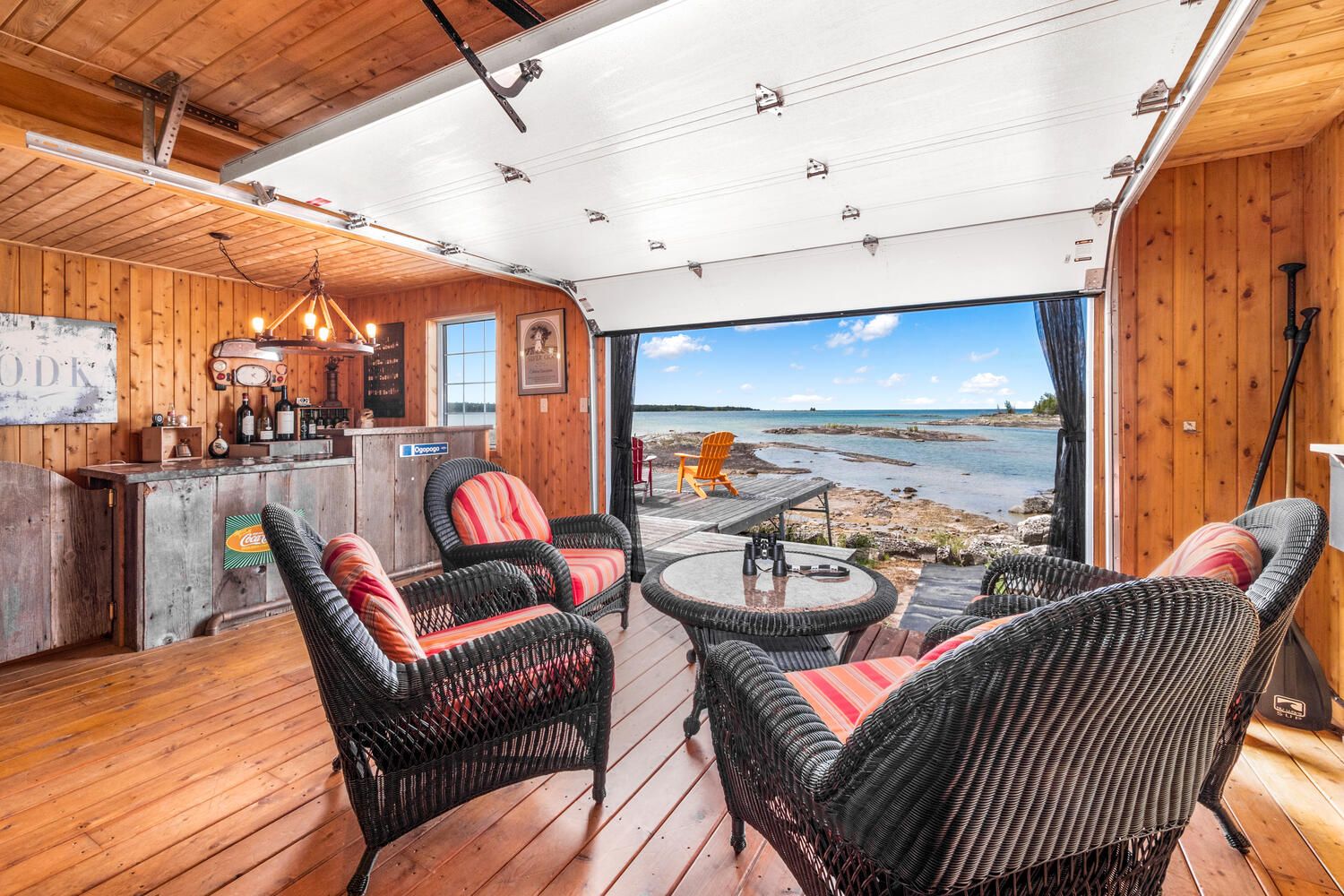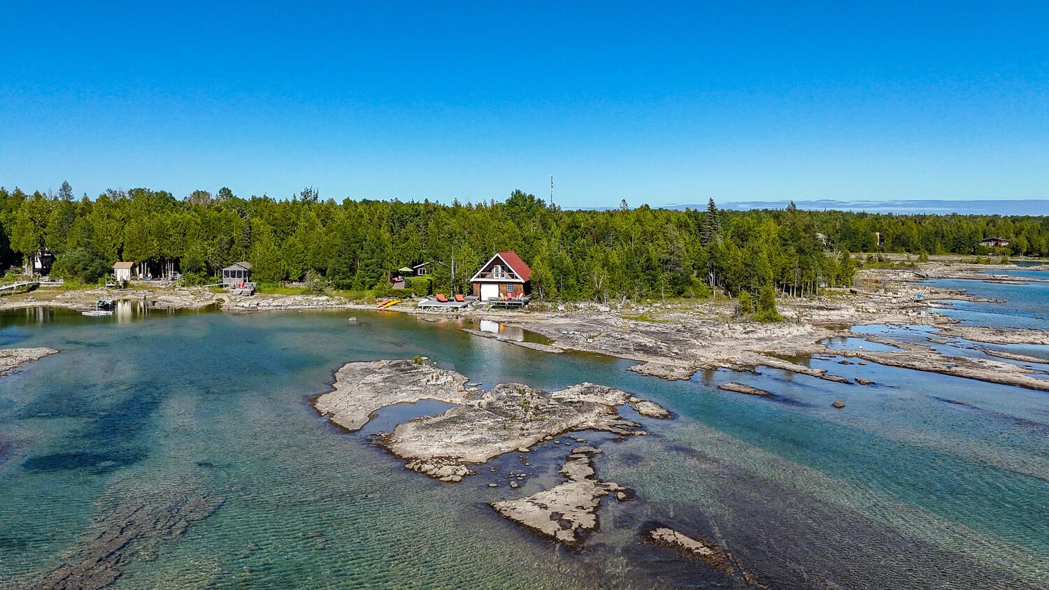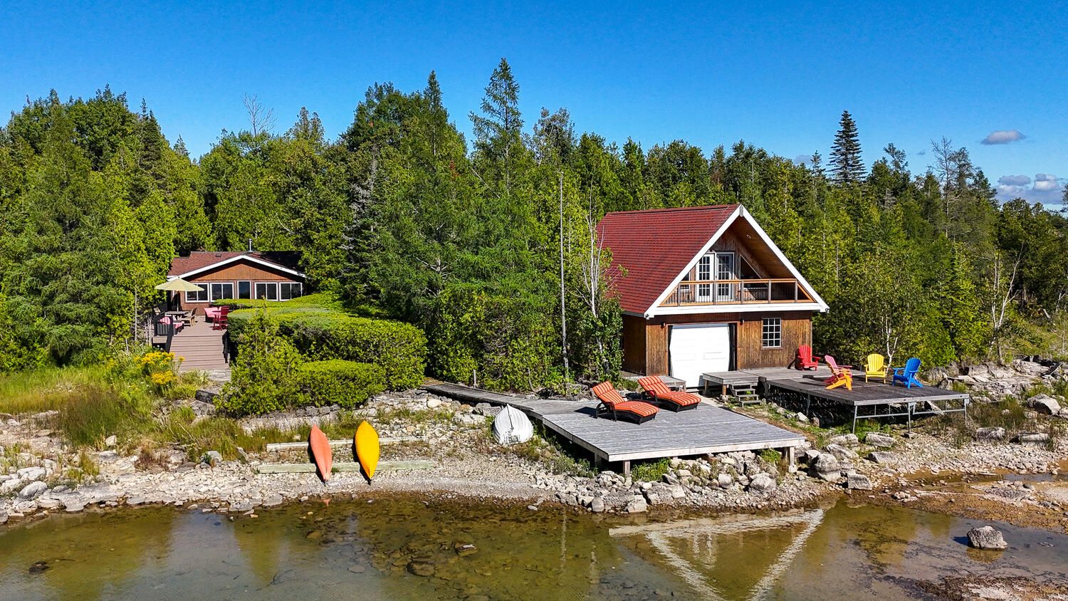 A rare waterfront gem on lake huron! Don't miss this exceptional opportunity to own a four-season home or cottage on the pristine shores of lake huron. With 170 feet of gradual shoreline, this beautifully maintained property offers the perfect setting for unforgettable lakeside living. The main residence, 1179 sq. Ft. Of thoughtfully designed space, features one-level living with 3 bedrooms and a 4-piece bath. An open concept living and dining area is filled with natural light, showcasing picturesque lake views and a cozy woodstove. The modern kitchen includes stone countertops, under-cabinet lighting, and convenient built-in laundry. This turn-key retreat also includes a dry boathouse, detached garage, and charming guest accommodations. The boathouse is a perfect place to unwind, relax, or play games - rain or shine. The upper-level suite offers panoramic lake views from a private balcony, ideal for guests or extended family. The additional bunkies with hydro provide extra comfort and versatility. Outdoor living is at its finest here! Entertain with ease using the outdoor grill station, or relax along stone pathways that lead through landscaped grounds, designed for privacy and beauty. Swim, kayak, or simply take in the stunning sunsets over the lake - the clean, rocky shoreline is perfect for it all. Located just a short drive from tobermorys shops, restaurants, and recreational attractions, this property offers a unique blend of serenity and convenience. Whether you're seeking a peaceful getaway or a place to host family and friends, this lake huron retreat is ready to welcome you. Are you ready to explore?