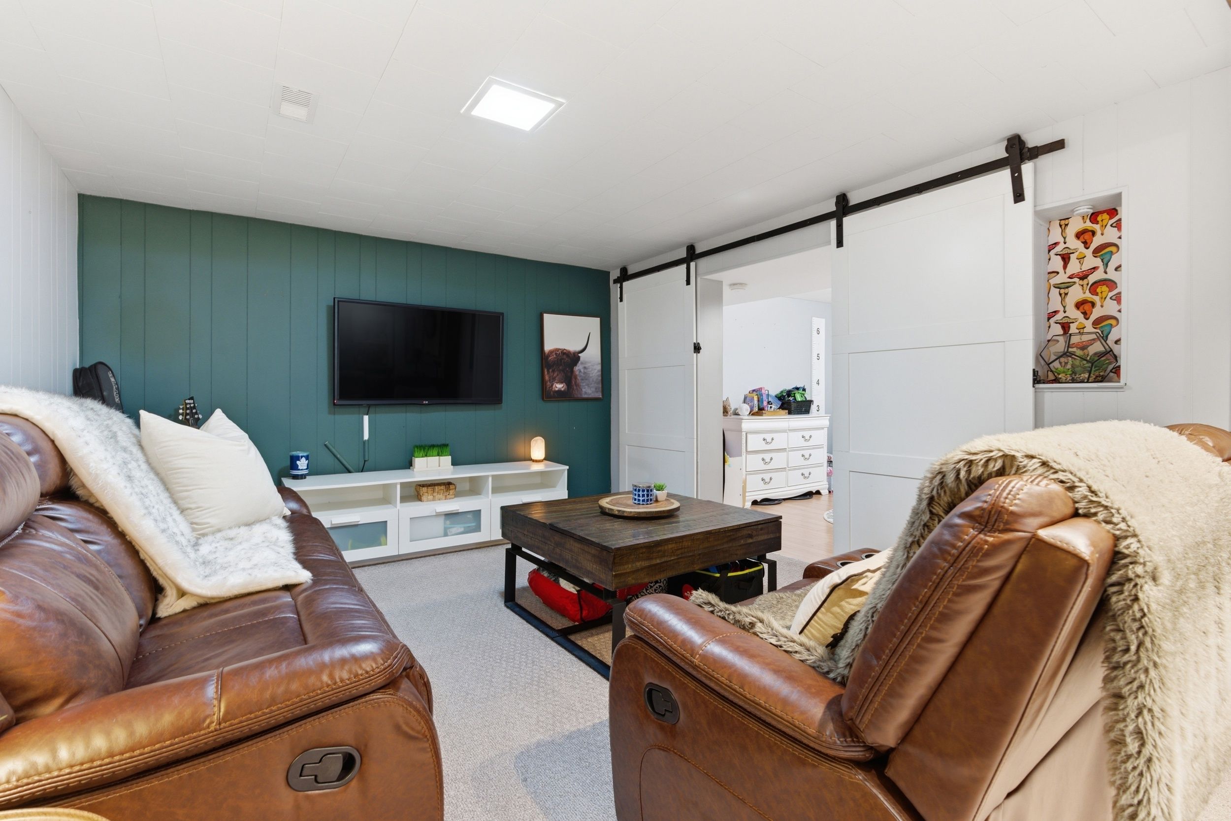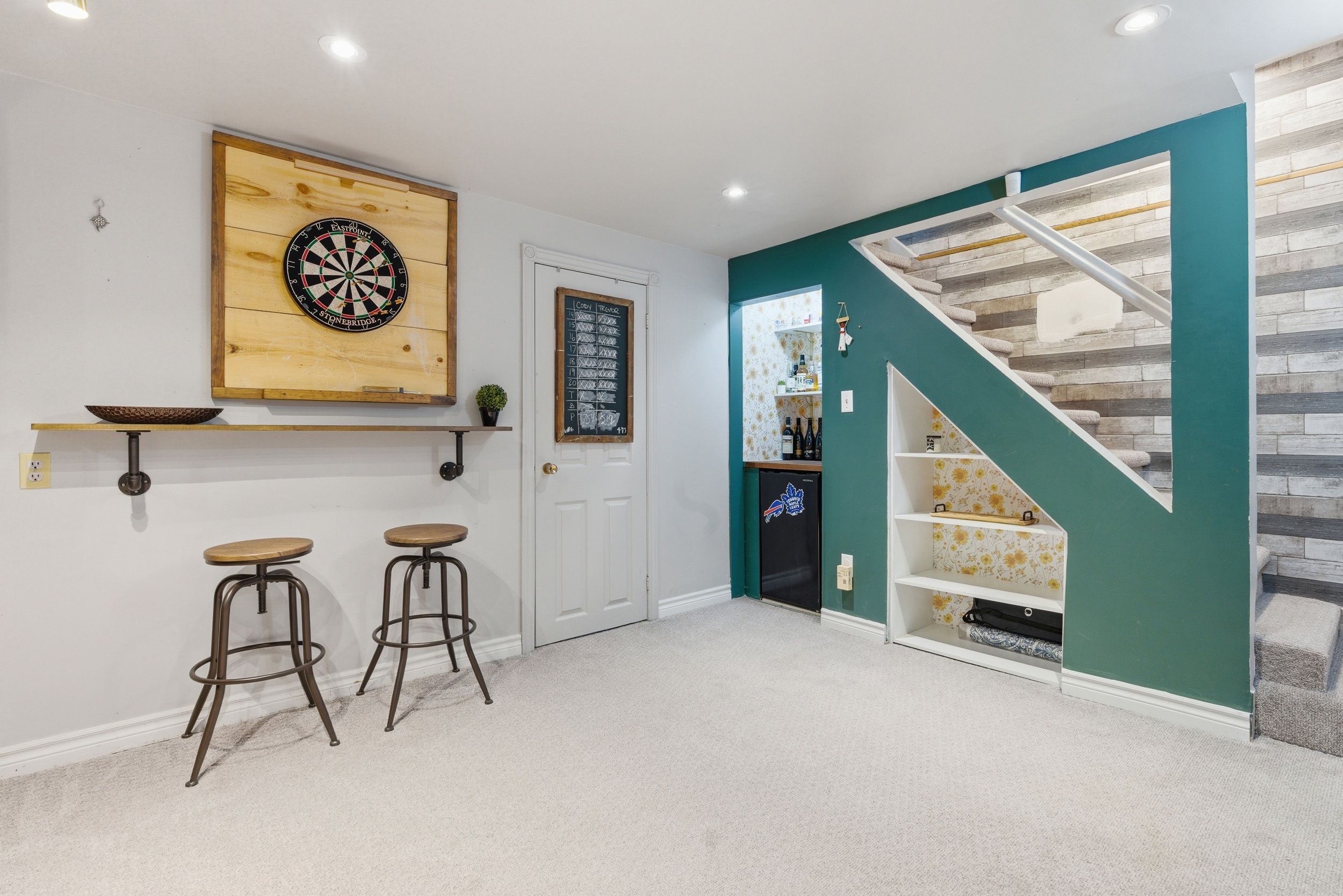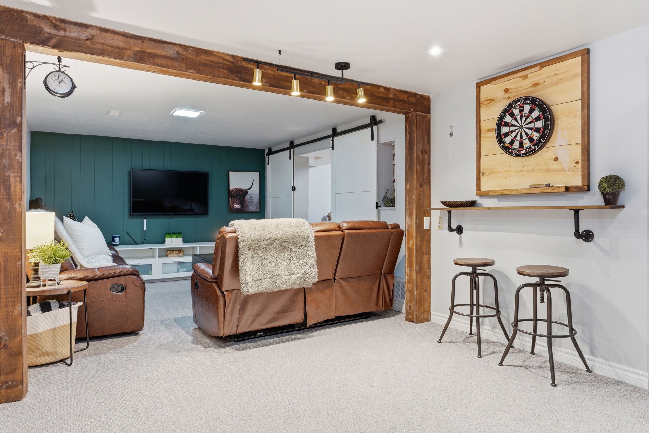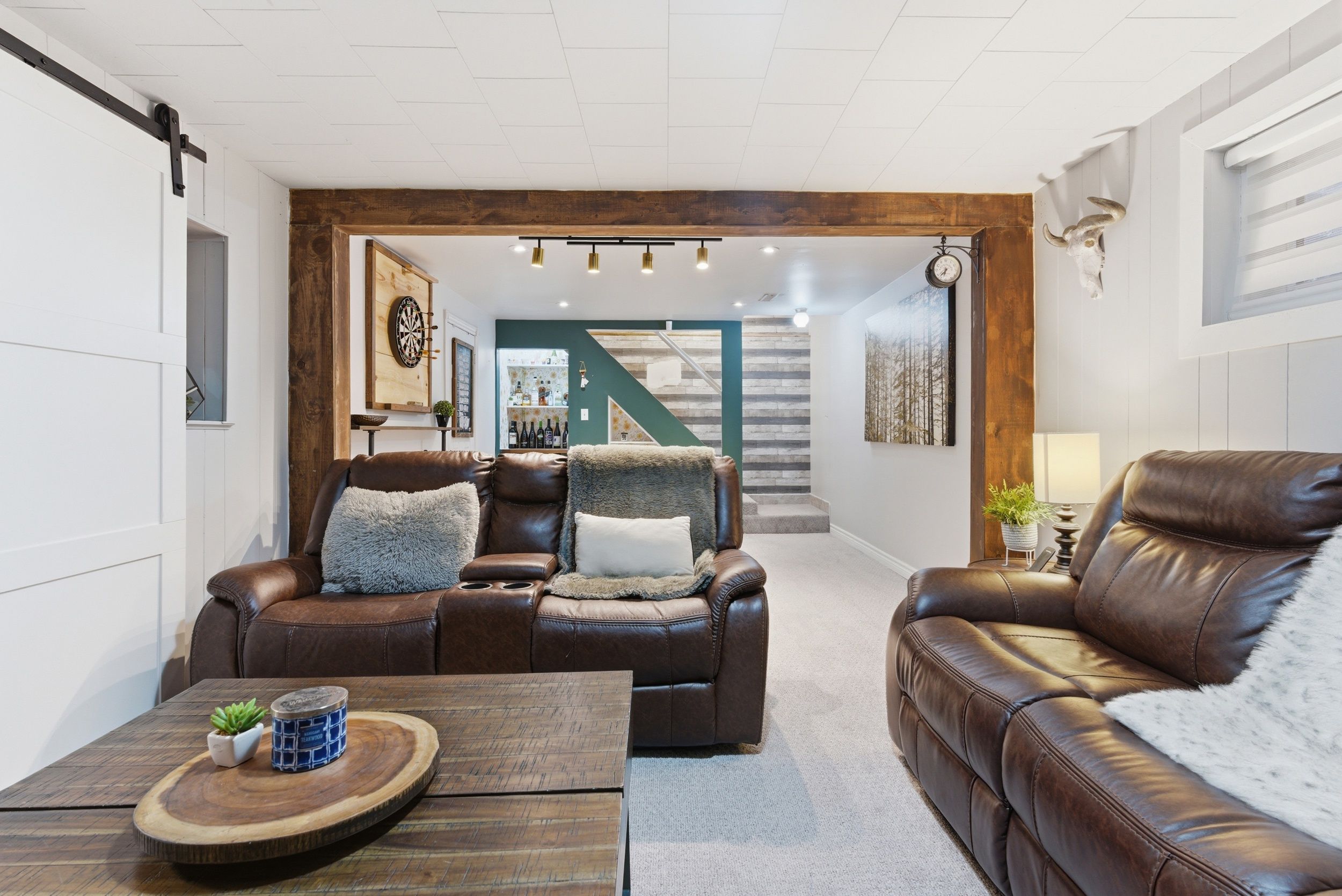 • Finished basement includes a fifth bedroom and recreation room with dry bar.