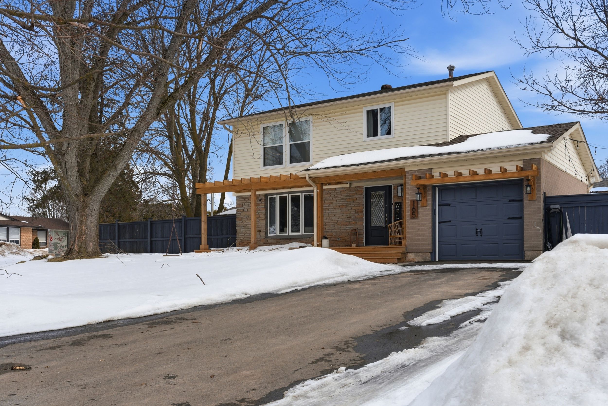 The perfect place to create lasting family memories. This spacious 4+1 bedroom, two-storey home sits on a large corner lot in the highly sought-after lakeview neighbourhood, just a short stroll from fairy lake, local schools, parks, and scenic walking trails. The property offers fantastic curb appeal with a large front lawn, mature trees, and beautifully maintained gardens. A welcoming front porch provides the perfect place to relax while watching the kids play, while the extended driveway offers parking for up to six vehicles. Inside, the main floor is warm and inviting. A bright family room featuring a large bay window flows into the renovated eat-in kitchen, thoughtfully designed with soft-close cabinetry, quartz countertops, black stainless steel appliances, and built-in wall cabinetry with pantry storage. An electric fireplace adds a cozy touch and creates the perfect setting for everyday living and family dinners. The main floor also includes a powder room, convenient garage access, and a walkout to the fully fenced backyard. The backyard is designed for entertaining and relaxation, complete with an above-ground pool, pool cabana, sauna, and a stamped concrete patio that creates your own private outdoor retreat. Upstairs, you will find four spacious bedrooms, including a bright primary bedroom with large windows and double closets. A four-piece bathroom with double sinks makes busy mornings easier for the whole family. A convenient laundry chute connects directly to the basement laundry area for added functionality. The fully finished basement adds even more living space with a fifth bedroom featuring large barn doors, along with a recreation room complete with a dry bar, perfect for movie nights, games, or hosting guests. Located just a short drive from highway 401, this home offers an ideal balance of peaceful neighbourhood living and easy commuting.