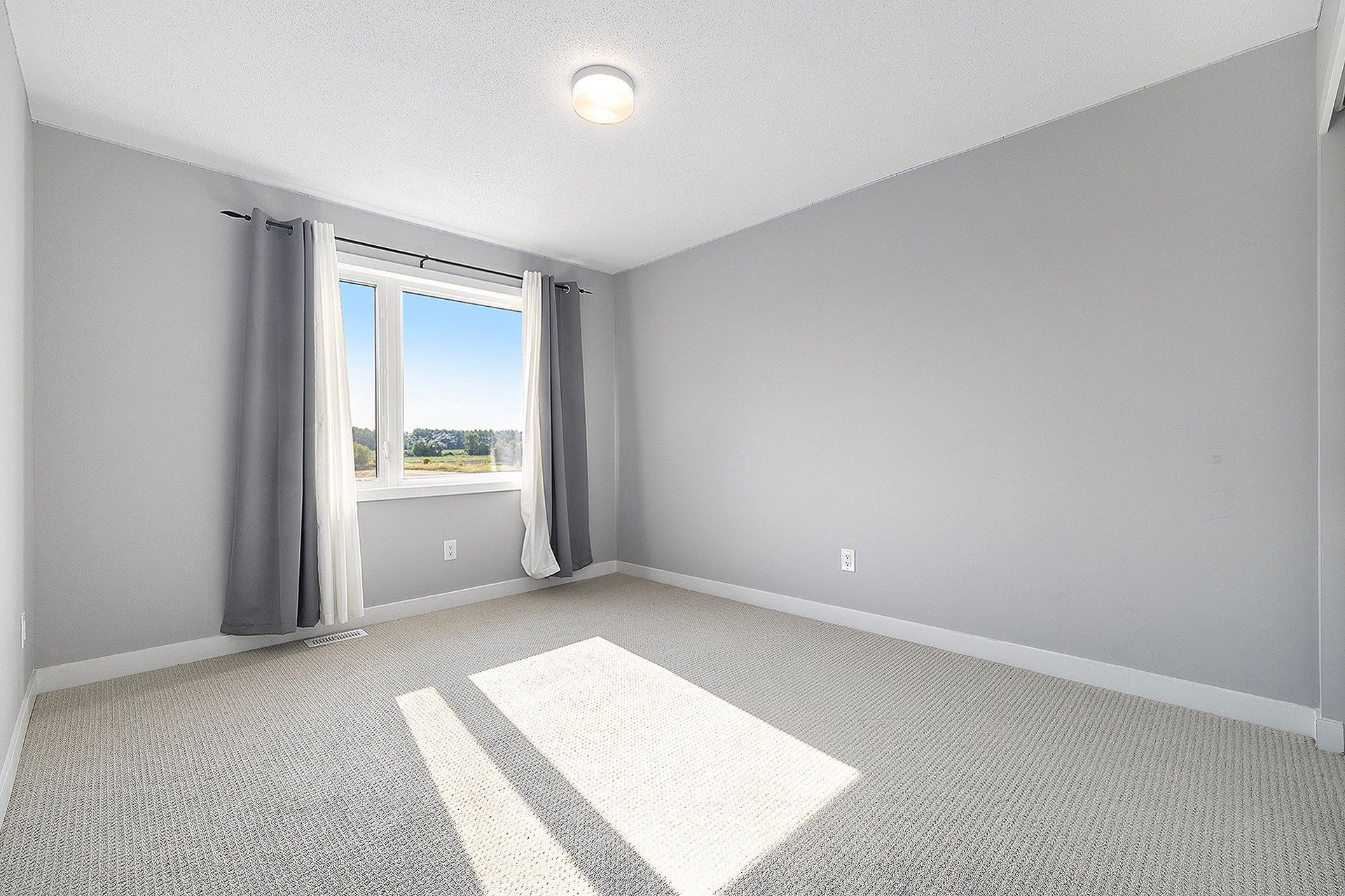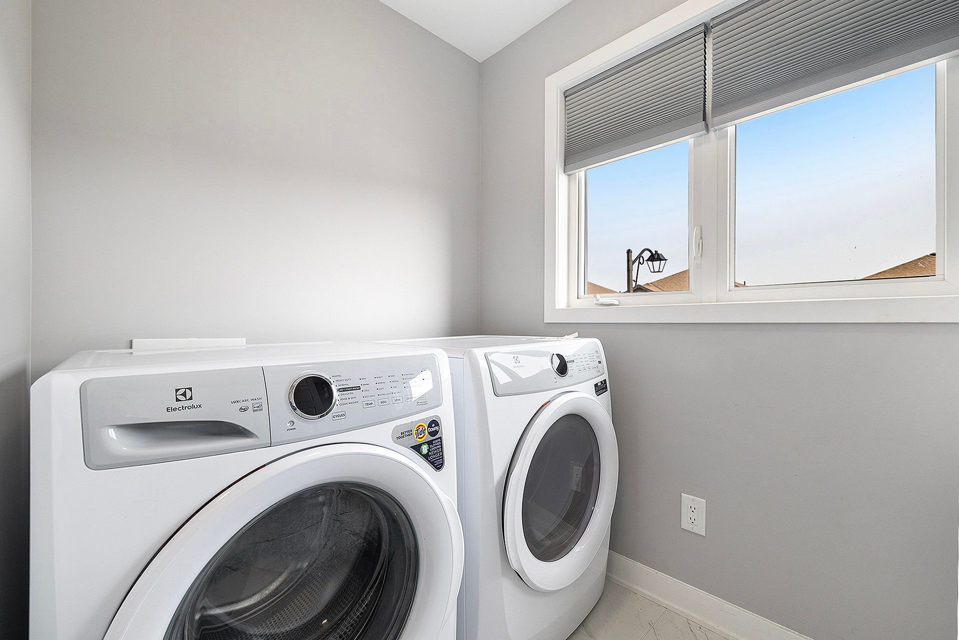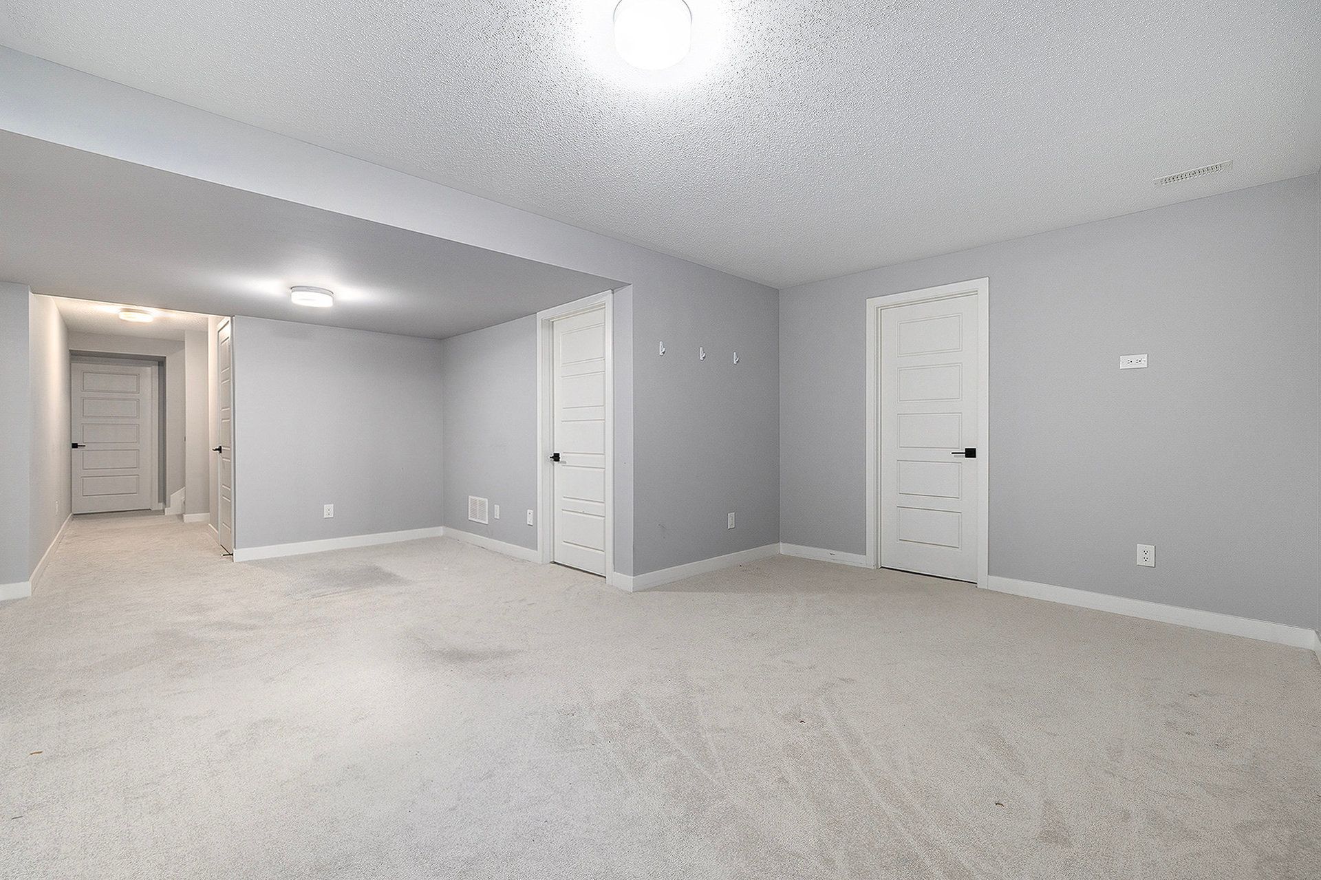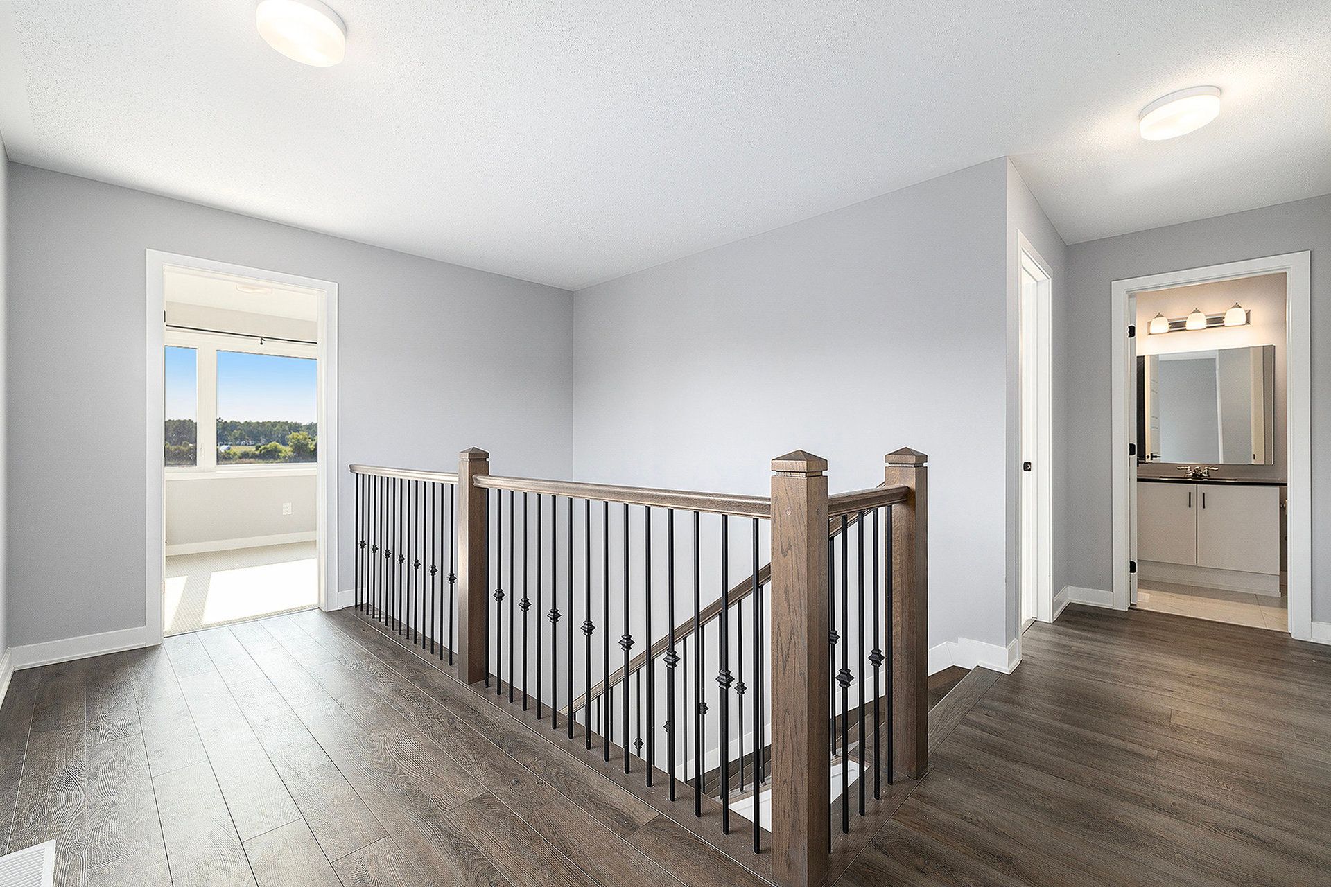 This stunning corner home is truly move-in ready, offering modern upgrades and designer finishes throughout. With no front neighbors, enjoy added privacy and peaceful, unobstructed views. Step inside to a bright and airy main floor, where large windows fill the space with natural light. A versatile flex room provides the perfect setting for a home office, playroom, or additional living area. The stylish kitchen is a standout, featuring quartz countertops, a large island with backsplash, under-cabinet lighting, tall pantry cabinetry, and premium stainless steel appliances. An elegant hardwood staircase with sleek metal pickets leads to the second floor, where you'll find three spacious bedrooms. The primary suite serves as a private retreat, complete with a spa-inspired ensuite bath and a generous walk-in closet. A convenient computer alcove and second-floor laundry room add to the home's thoughtful and functional layout. The finished basement expands your living space with a large recreation room, a partially completed 3-piece rough-in currently usable as a powder room, and ample storage. Set on a desirable lot, this home offers comfort, style, and versatility in every detail - a true must-see!