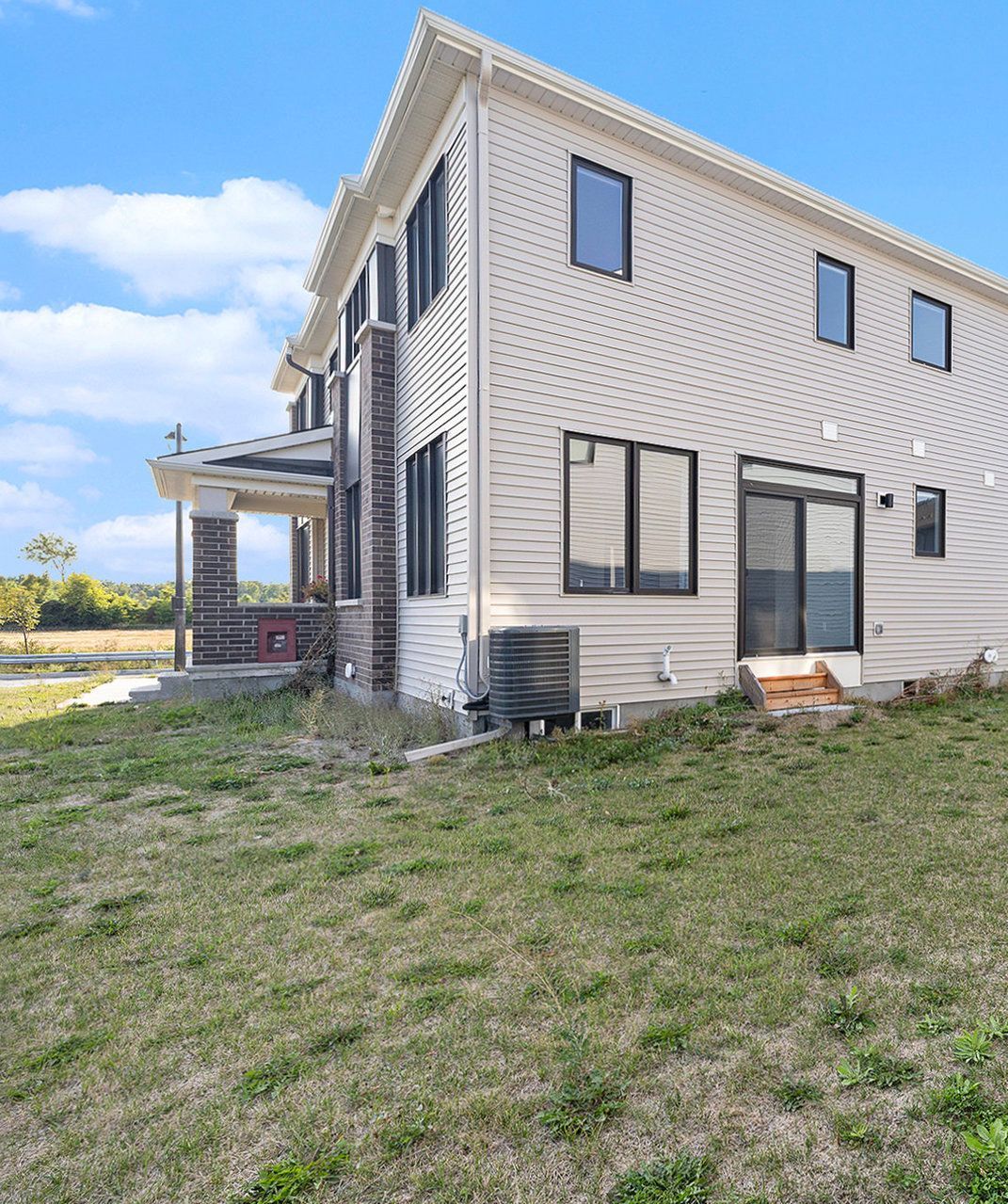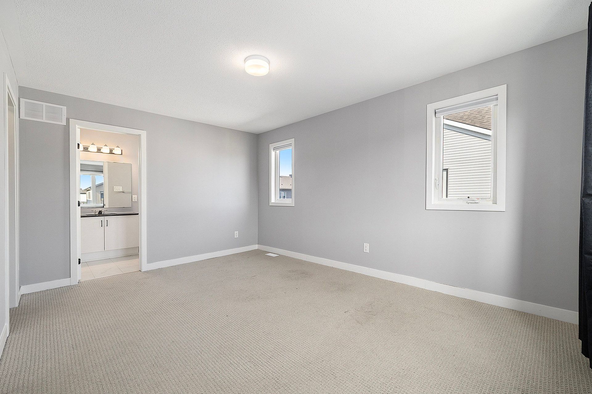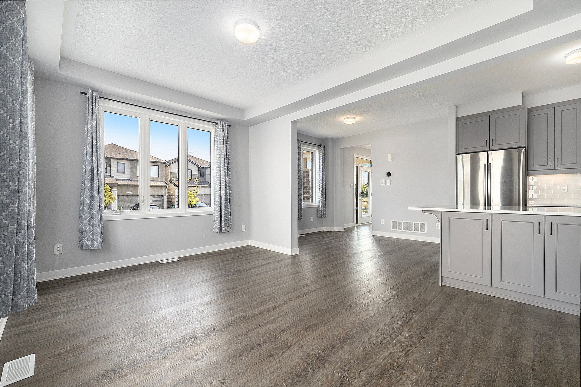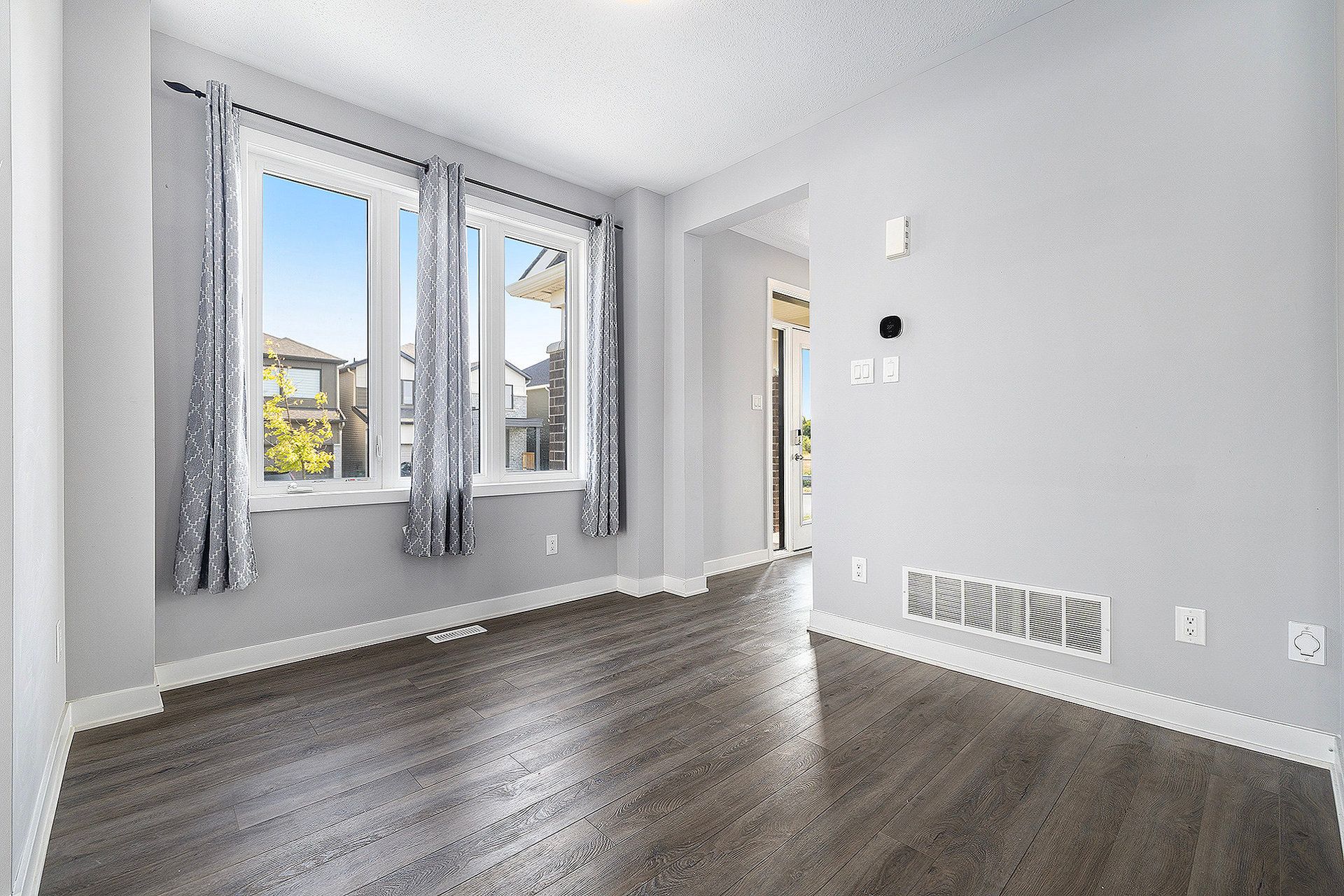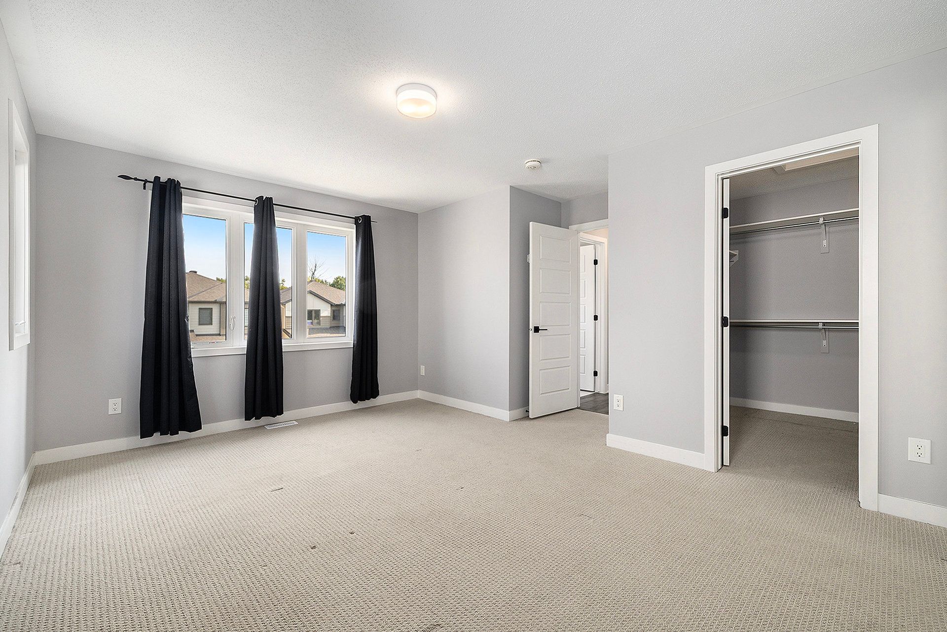 This stunning corner home is truly move-in ready, offering modern upgrades and designer finishes throughout. With no front neighbors, enjoy added privacy and peaceful, unobstructed views. Step inside to a bright and airy main floor, where large windows fill the space with natural light. A versatile flex room provides the perfect setting for a home office, playroom, or additional living area. The stylish kitchen is a standout, featuring quartz countertops, a large island with backsplash, under-cabinet lighting, tall pantry cabinetry, and premium stainless steel appliances. An elegant hardwood staircase with sleek metal pickets leads to the second floor, where you'll find three spacious bedrooms. The primary suite serves as a private retreat, complete with a spa-inspired ensuite bath and a generous walk-in closet. A convenient computer alcove and second-floor laundry room add to the home's thoughtful and functional layout. The finished basement expands your living space with a large recreation room, a partially completed 3-piece rough-in currently usable as a powder room, and ample storage. Set on a desirable lot, this home offers comfort, style, and versatility in every detail - a true must-see!