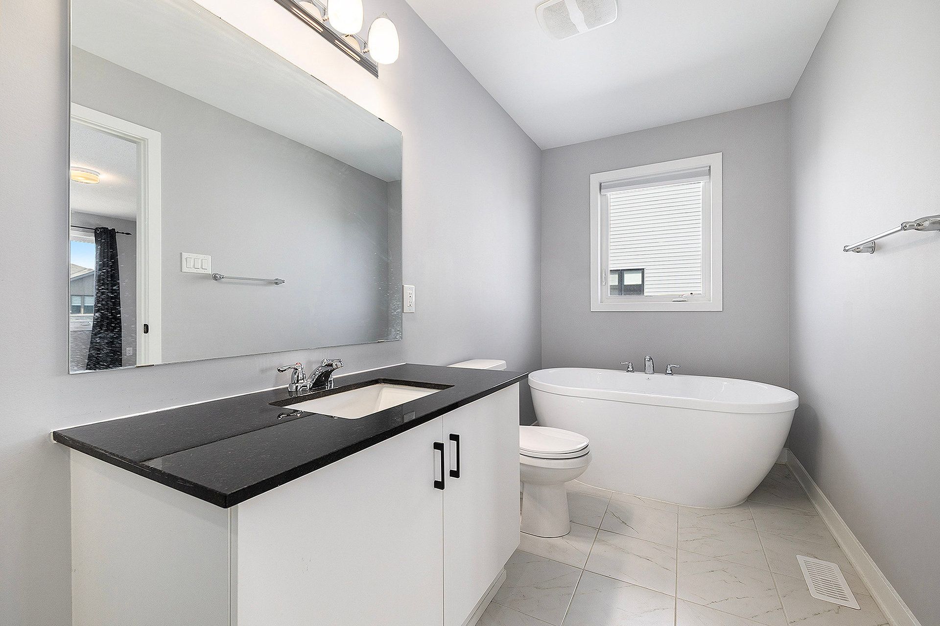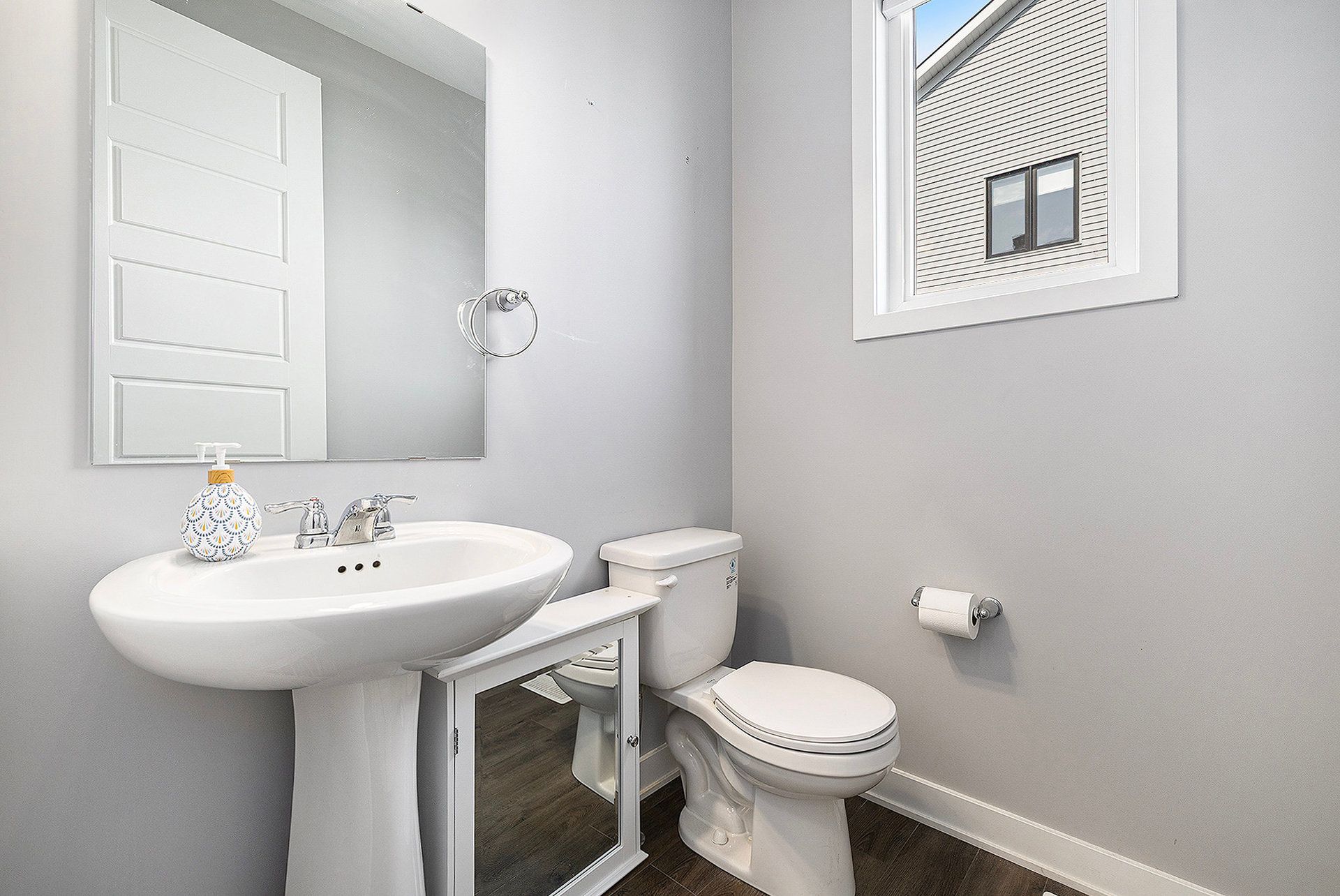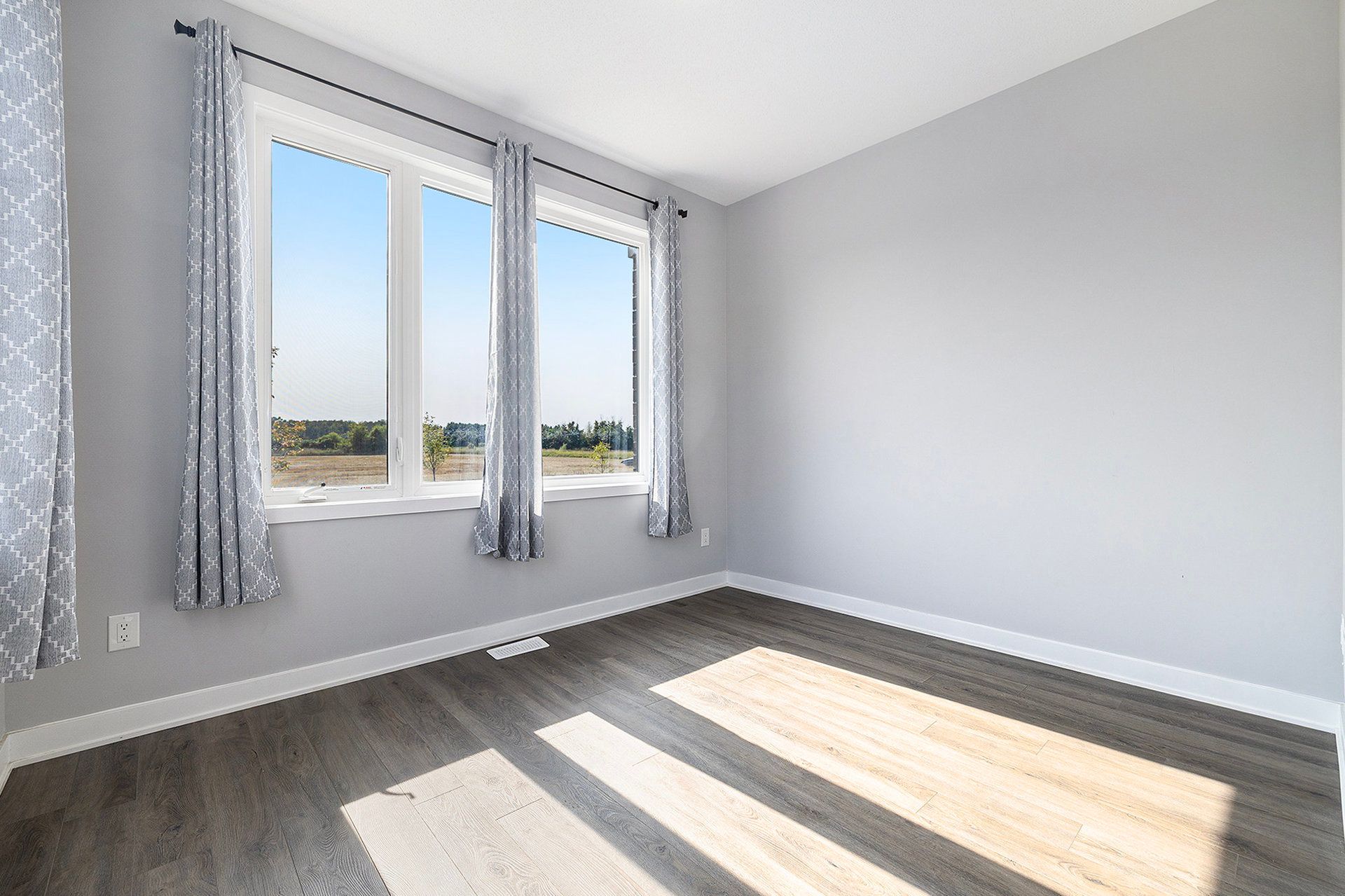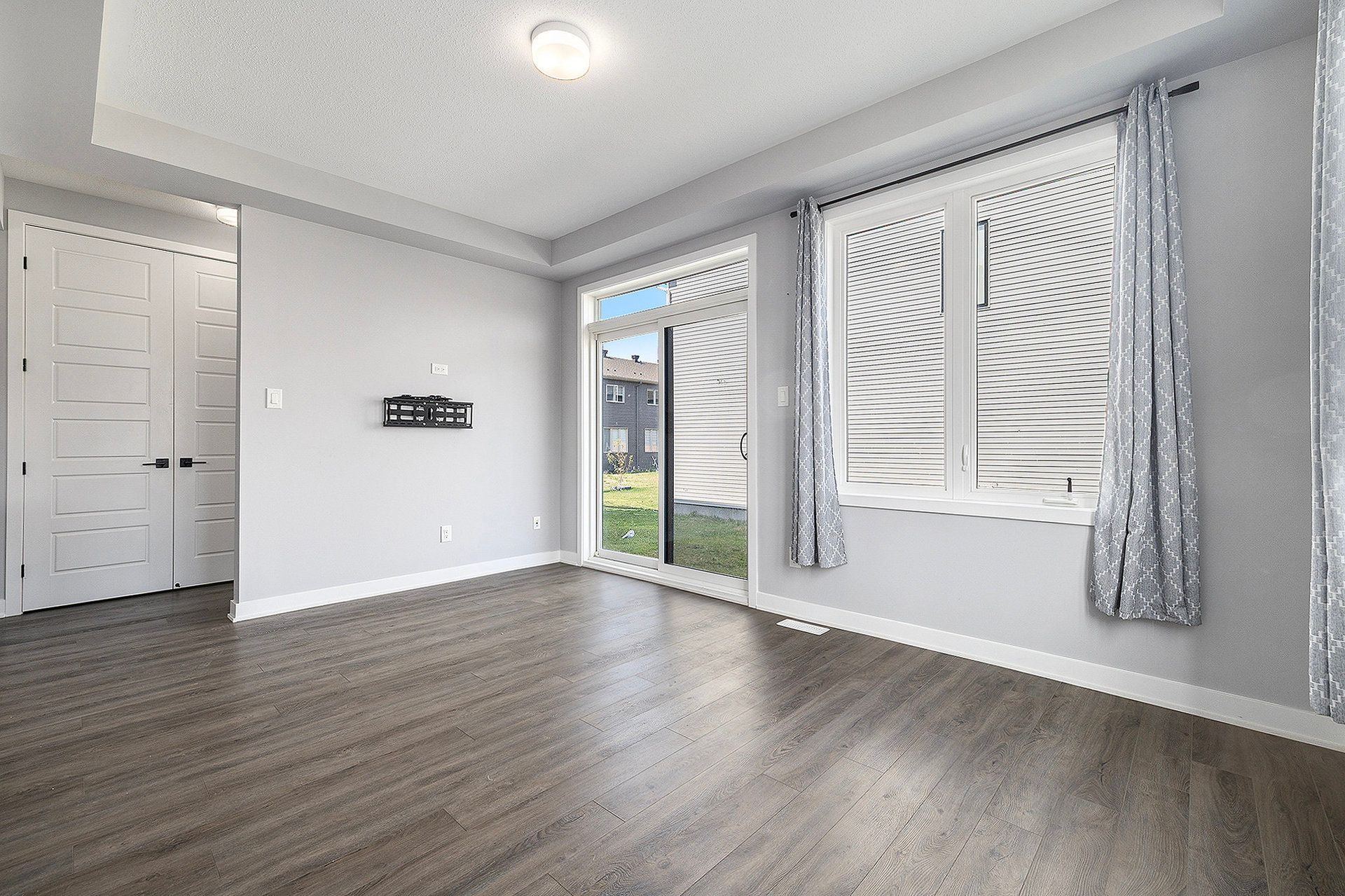 This stunning corner home is truly move-in ready, offering modern upgrades and designer finishes throughout. With no front neighbors, enjoy added privacy and peaceful, unobstructed views. Step inside to a bright and airy main floor, where large windows fill the space with natural light. A versatile flex room provides the perfect setting for a home office, playroom, or additional living area. The stylish kitchen is a standout, featuring quartz countertops, a large island with backsplash, under-cabinet lighting, tall pantry cabinetry, and premium stainless steel appliances. An elegant hardwood staircase with sleek metal pickets leads to the second floor, where you'll find three spacious bedrooms. The primary suite serves as a private retreat, complete with a spa-inspired ensuite bath and a generous walk-in closet. A convenient computer alcove and second-floor laundry room add to the home's thoughtful and functional layout. The finished basement expands your living space with a large recreation room, a partially completed 3-piece rough-in currently usable as a powder room, and ample storage. Set on a desirable lot, this home offers comfort, style, and versatility in every detail - a true must-see!