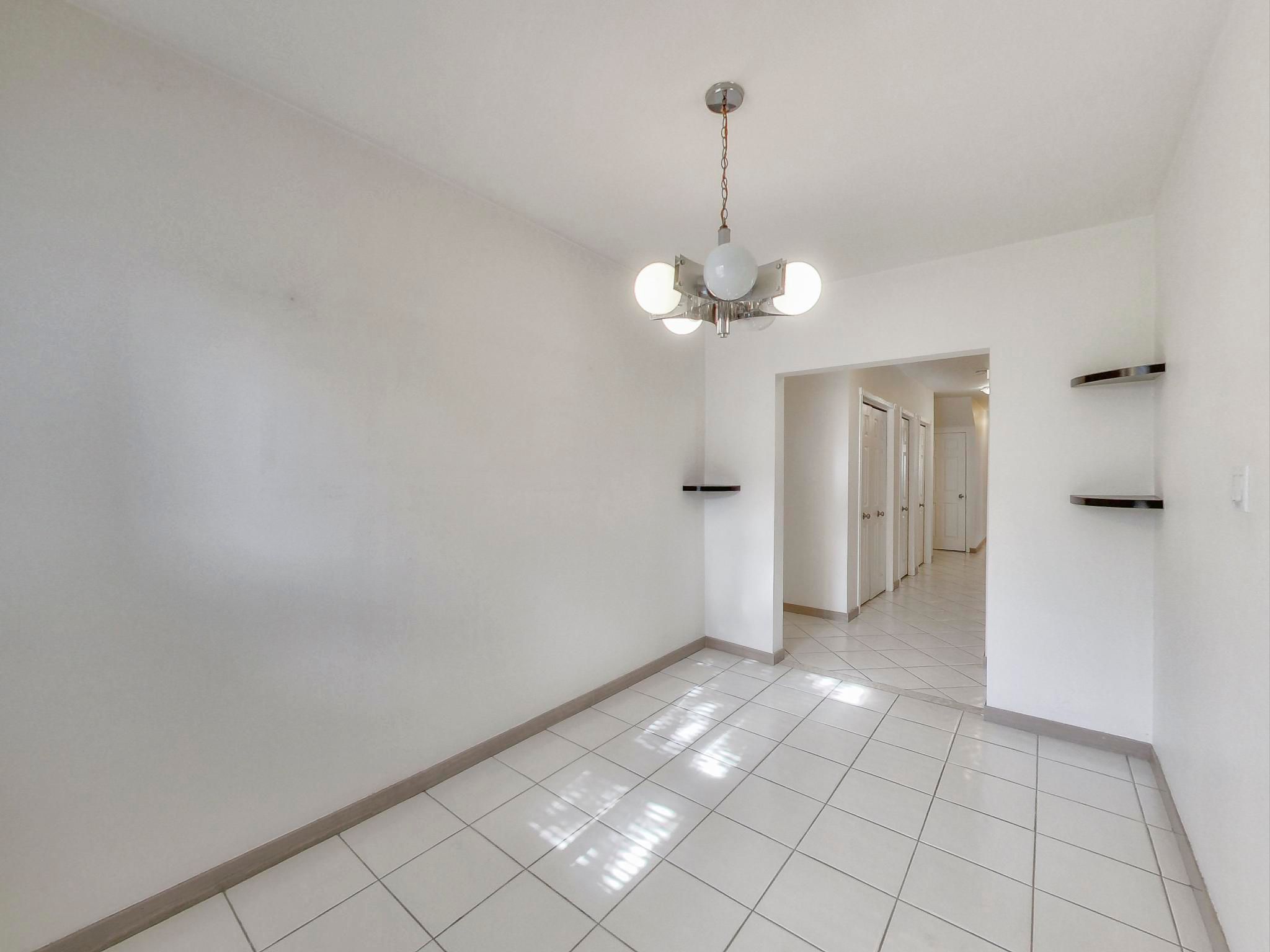 • Modern eat-in kitchen with contemporary cabinets and built-in appliances.