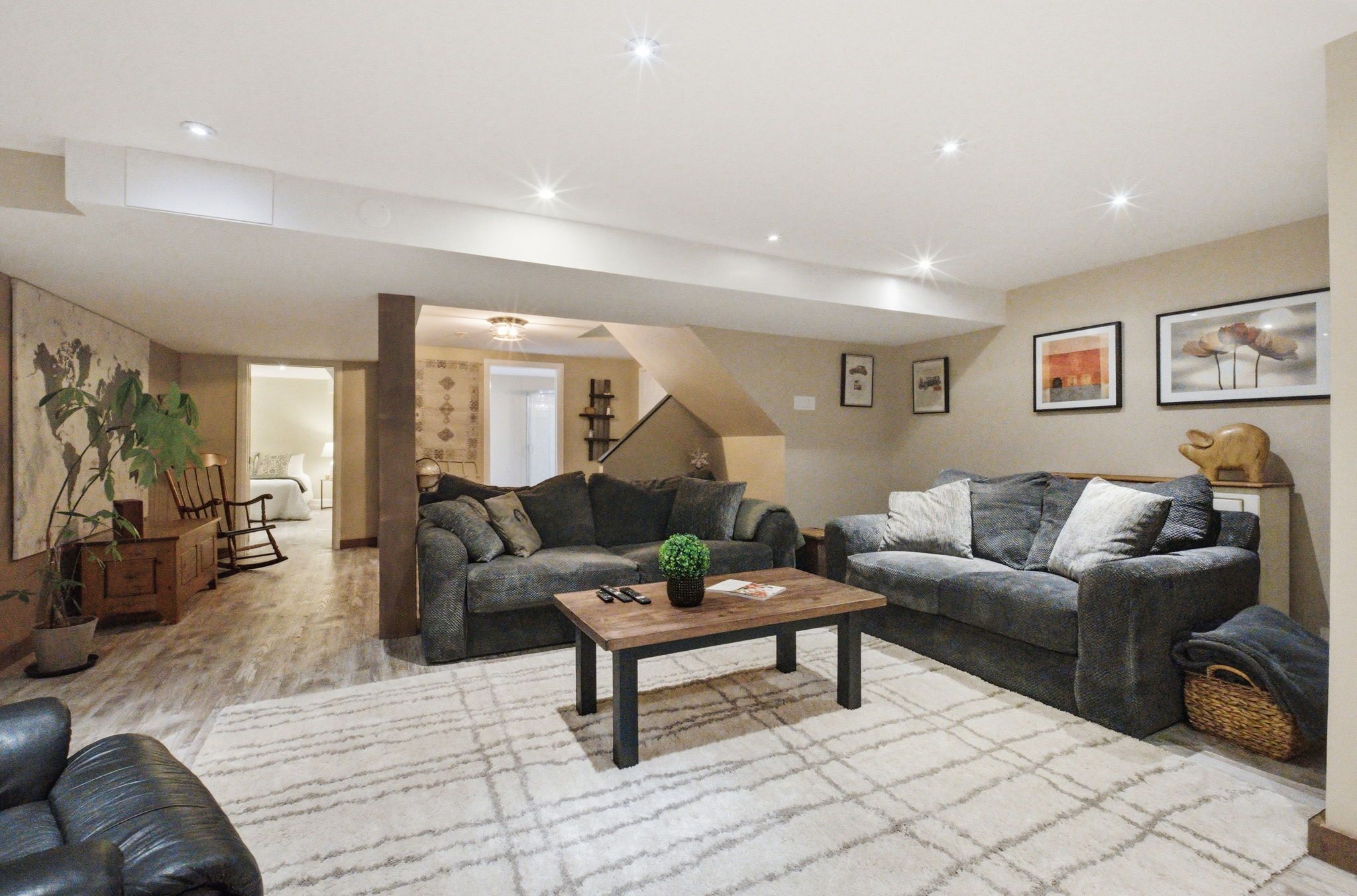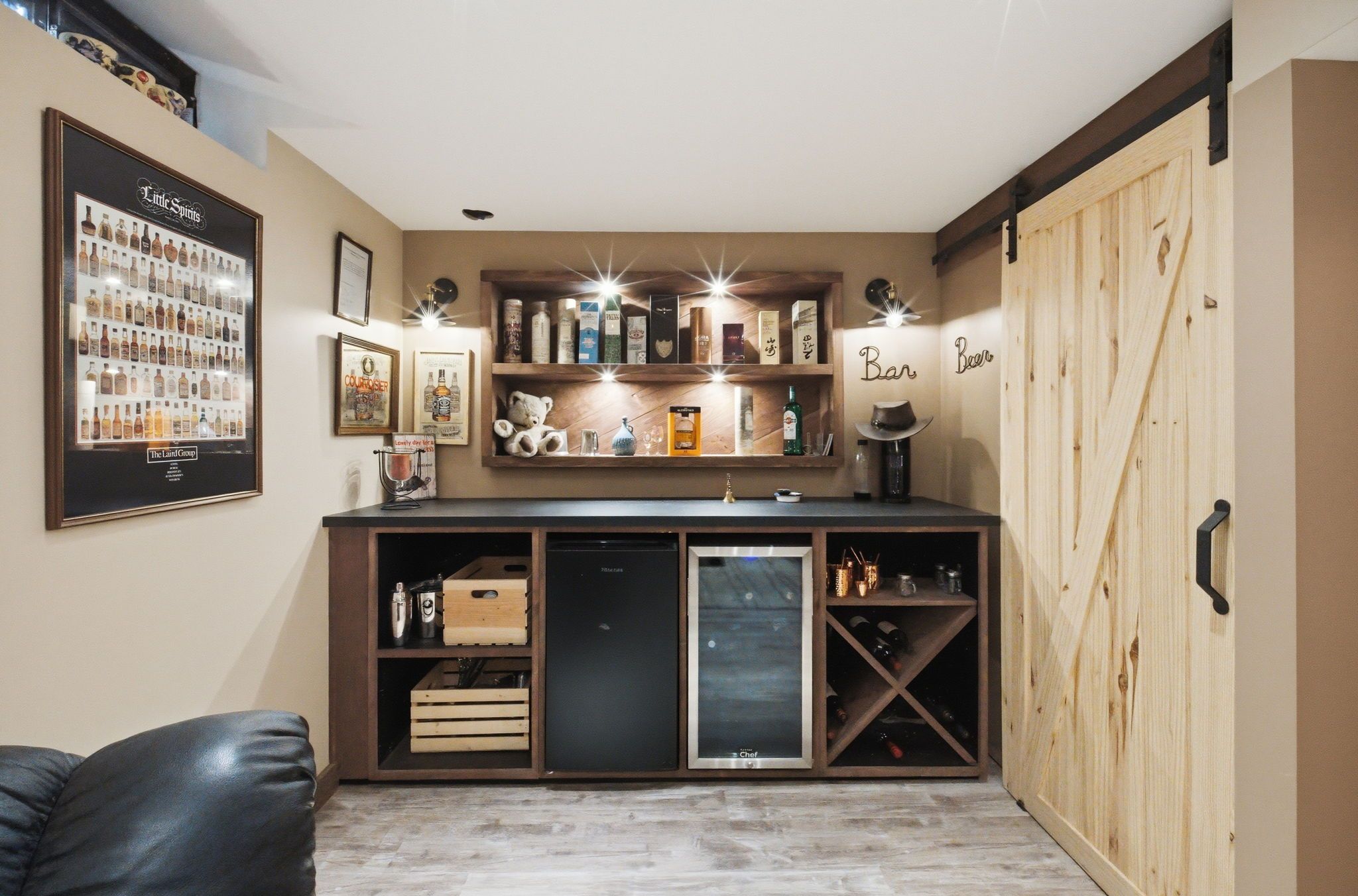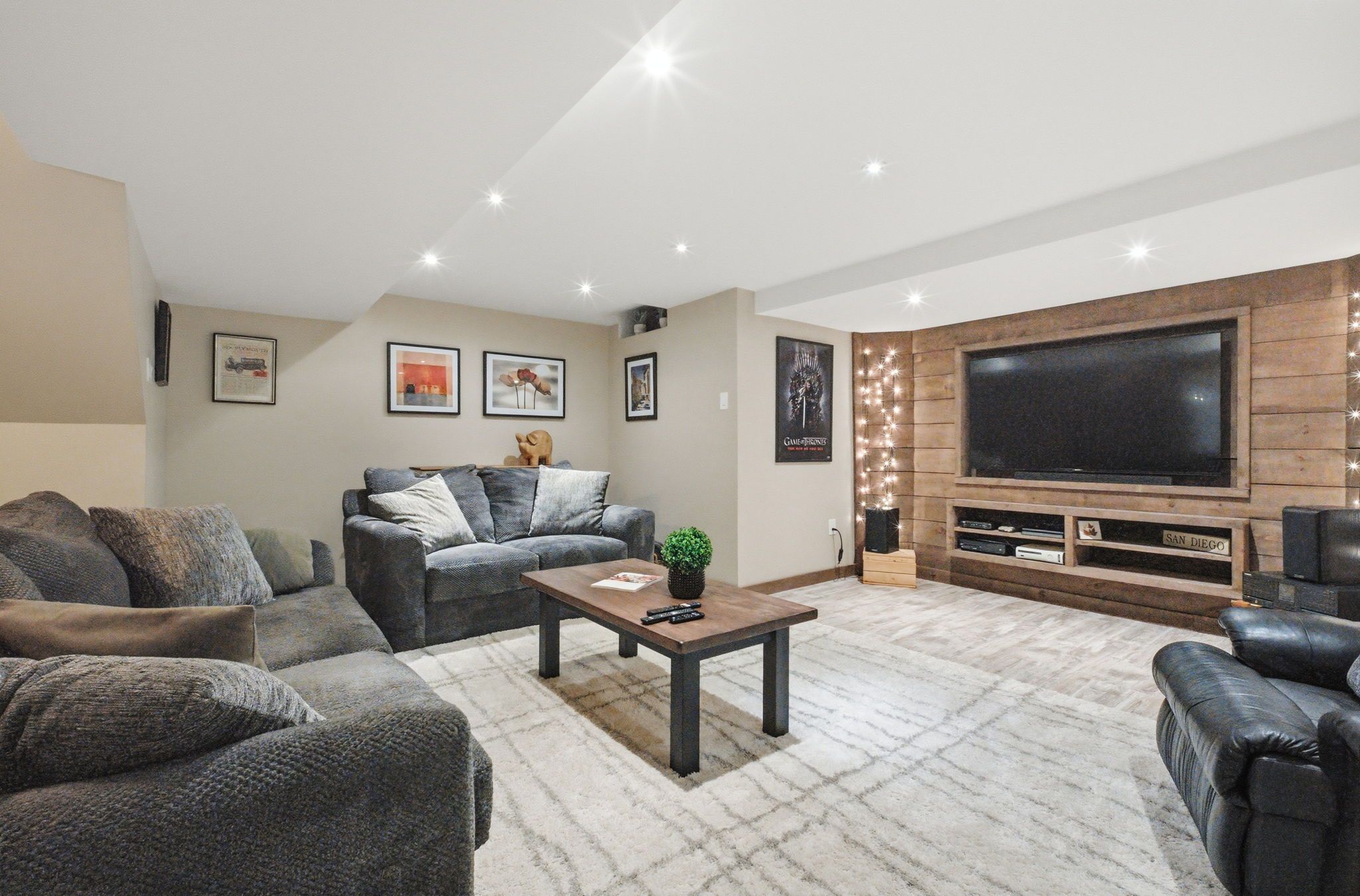 • Finished basement with a bar and private movie theatre ambiance.