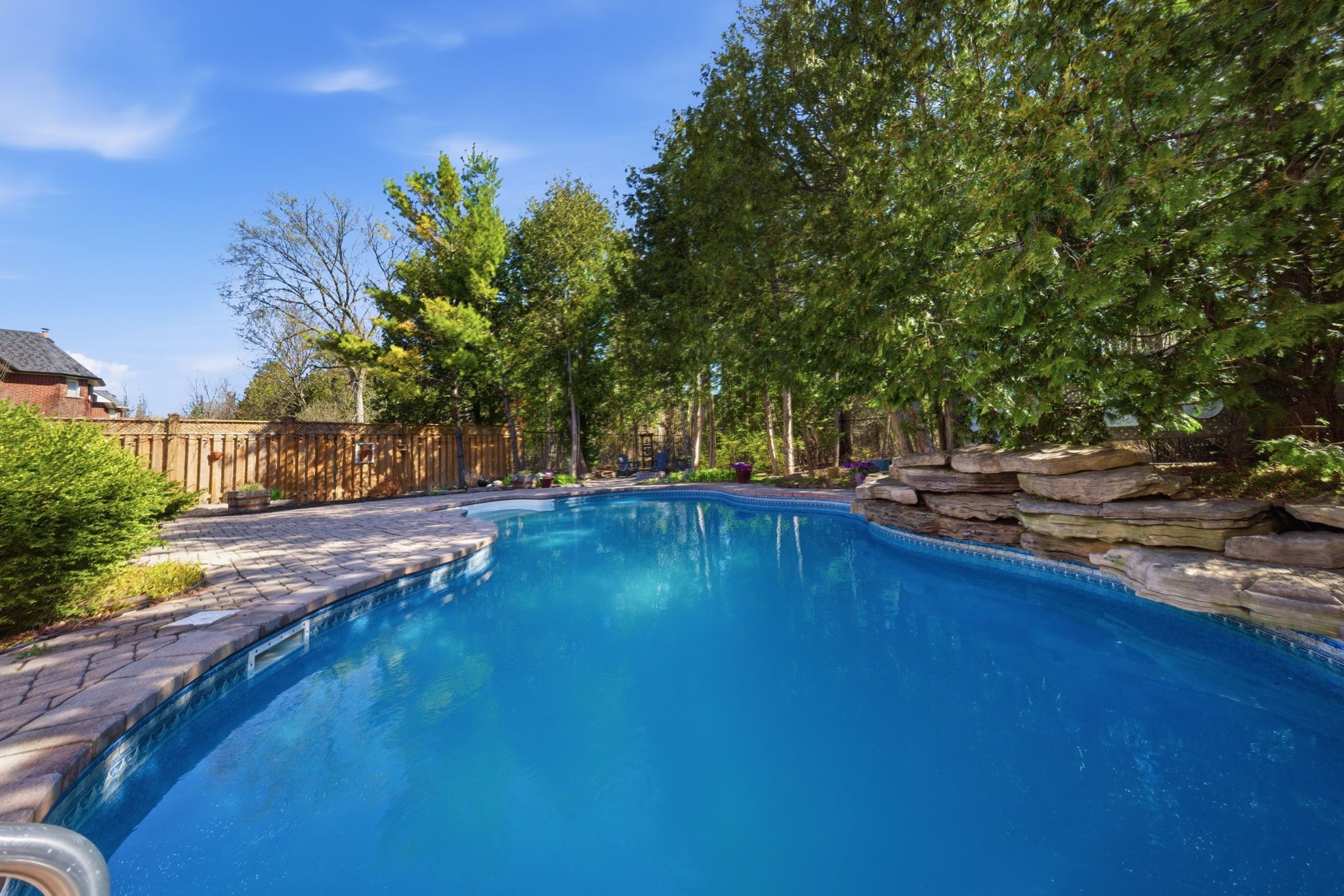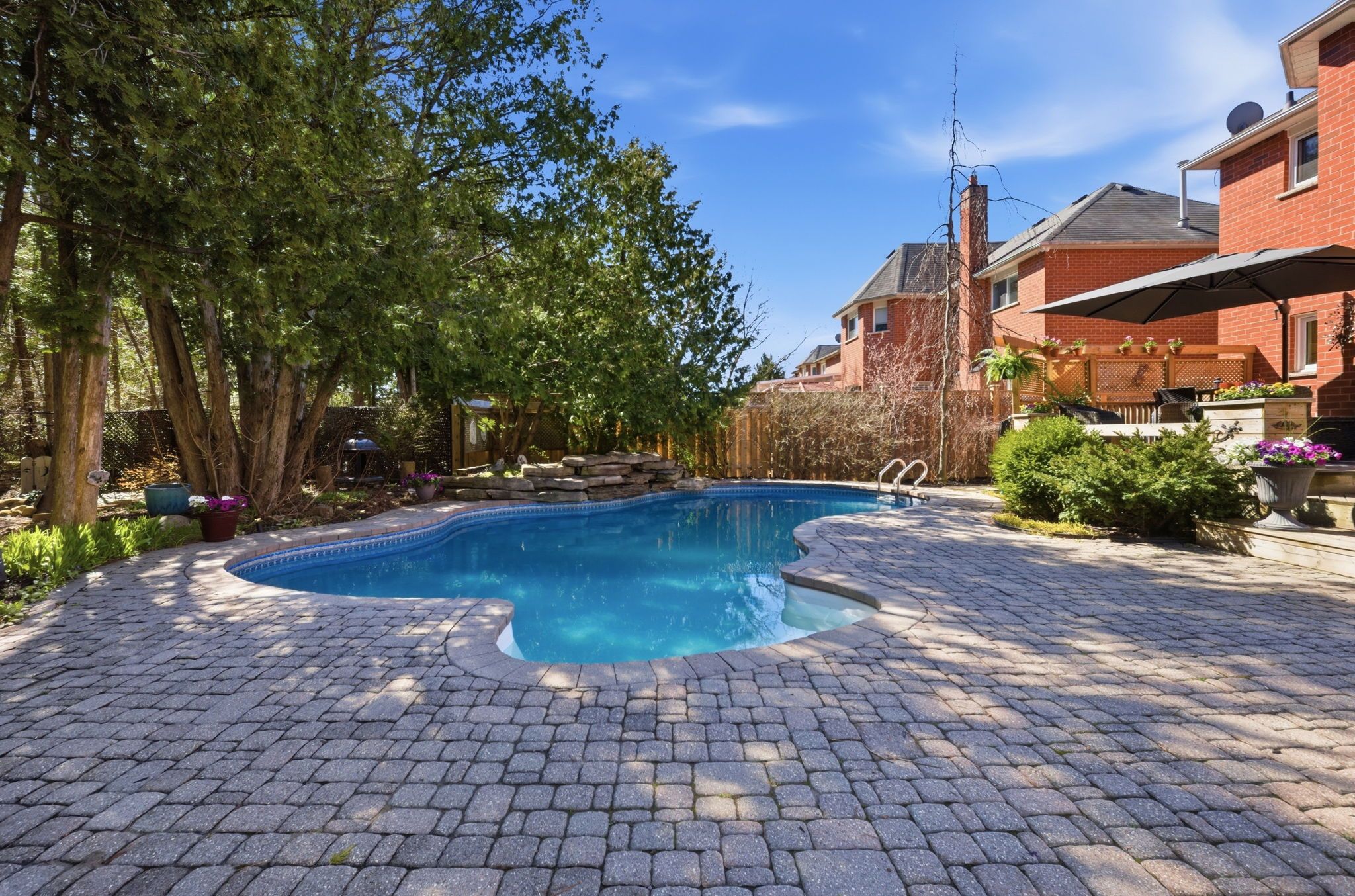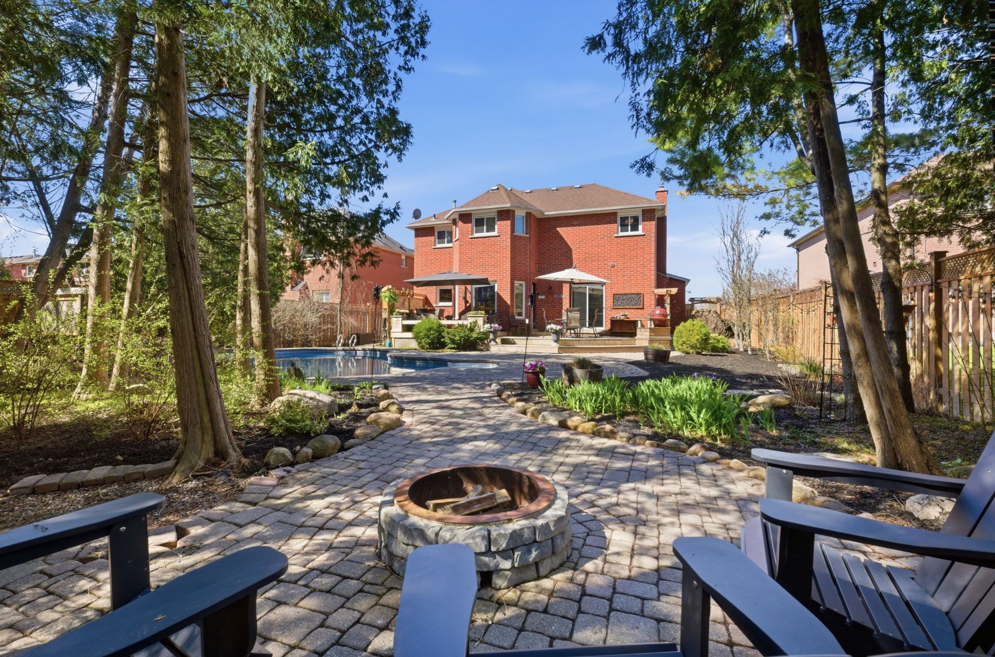 Move-in ready in the prestigious highbush enclave of pickering-this exceptional 4+1 bedroom, 4-bathroom residence sits on a rare 59 x 147 ft estate lot, offering the perfect blend of luxury, privacy, and resort-style living. Flooded with natural light, the home showcases seamless open-concept design, where the kitchen, dining, living, and family rooms flow effortlessly together-ideal for both elegant entertaining and comfortable everyday living. The chef-inspired kitchen is a true showpiece, featuring premium jenn air appliances, a wolf gas stove, and a stunning l-shaped granite island that anchors the space and brings every room together with sophistication. The finished basement elevates the home even further-designed to impress with a bar and a private movie theatre ambiance centered around a large screen. This level also includes a spacious 5th bedroom (or ideal home office), a brand-new 3-piece bathroom, a large storage room and a flexible layout that can easily be converted into a nanny or in-law suite, offering excellent potential for extended family or guests,. With its thoughtful design, the space can also be opened up to create an ensuite configuration if desired. A thoughtfully redesigned main floor laundry room (mudroom with access to the garage and side entrance adds everyday convenience, complete with new washer and dryer and stylish updated finishes. The backyard is the true showstopper. Set against a serene, ravine-like backdrop, this outdoor oasis is designed to impress at every turn. Whether hosting summer pool parties, intimate evening gatherings, or family celebrations, the space delivers an unmatched entertaining experience. Enjoy the in-ground heated pool and tranquil waterfall feature, an equipped custom outdoor cooking space featuring a napoleon bbq and kamado joe smoker, and an expansive deck that offers multiple areas for dining, lounging, and socializing.