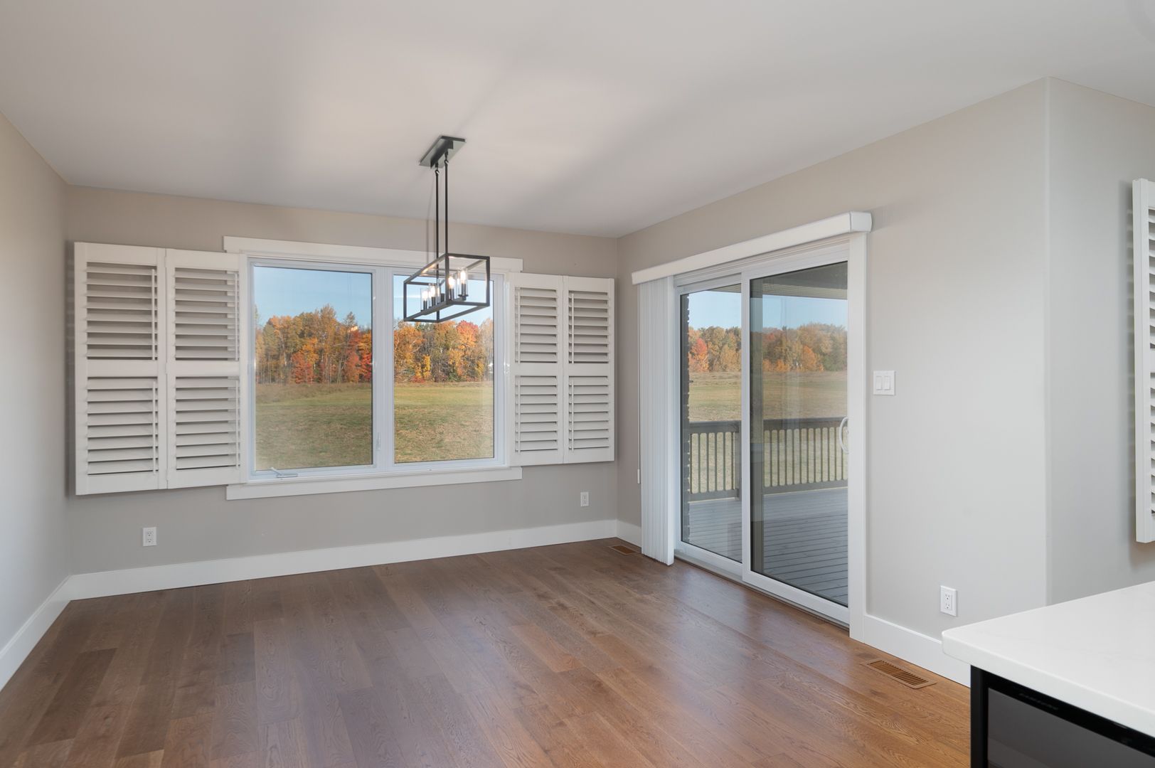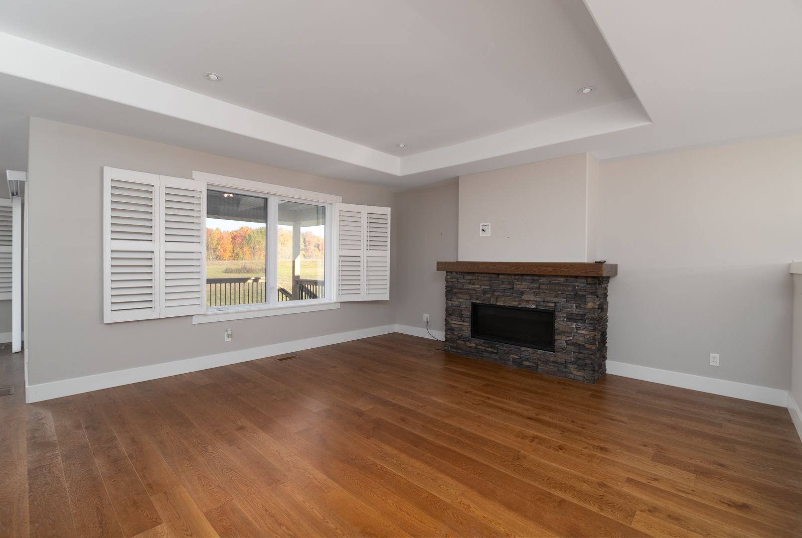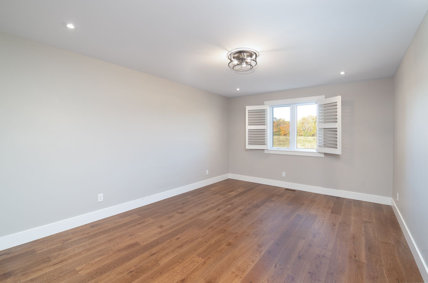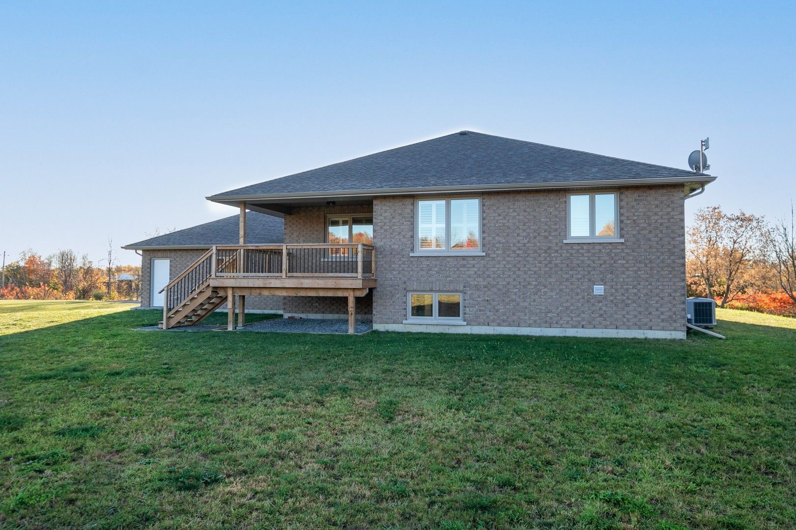 Set on a private and beautifully treed 1. 63-acre backdrop, this custom-built brick home offers a rare blend of refined design and peaceful country living. From the moment you step inside, the home feels bright, open, and intentionally designed - spaces that invite both everyday comfort and effortless entertaining. At the heart of the home, the kitchen makes a bold statement. Crisp black and white finishes, full-height cabinetry crowned with elegant moulding, quartz countertops, and a generous centre island come together in a space that's as functional as it is striking. Sleek black stainless-steel appliances complete the look-perfect for gatherings, celebrations, or quiet mornings with coffee and views of nature. Sunlight pours through oversized windows dressed with california shutters, framing ever-changing scenery outside-lush summer greens, vibrant autumn colours, and serene winter snowfall. Hardwood floors flow seamlessly through the main living areas, adding warmth and a sense of continuity to the open-concept design. Downstairs, the lower level is already framed and ready for your vision-whether that's a cozy family room, extra bedrooms, a home gym, or guest space. The hard work is done; the possibilities are yours. This is more than a home-it's a place to slow down, spread out, and settle into a lifestyle surrounded by beauty and calm. If you've been waiting for space, style, and serenity to come together, this is the one.
