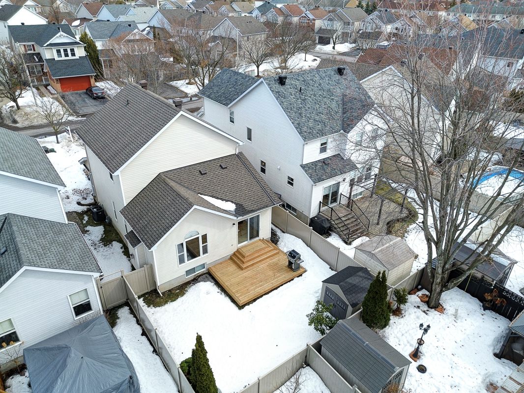 Wonderful three plus one bedroom, three and a half bath home in a quiet enclave in orleans with plenty of space and modern finishes. Bright main level features hardwood and tile floors, a laundry room, an open living and dining area, a spacious eat-in kitchen with stainless appliances, granite waterfall counters and loads of cabinet and counter space, next to the large family room with gas fireplace. The second level boasts a spacious primary bedroom with vaulted ceilings, a walk-in closet and a four piece ensuite with soaker tub and two large additional bedrooms. The finished lower level adds flexible living space with a rec room, private fourth bedroom and full bathroom-perfect for guests, in-laws, or a home office. Attached two-car garage, generous yard with new deck and convenient access to schools, restaurants parks, shopping and transit. Move-in ready and ideal for growing families or anyone seeking extra living space.