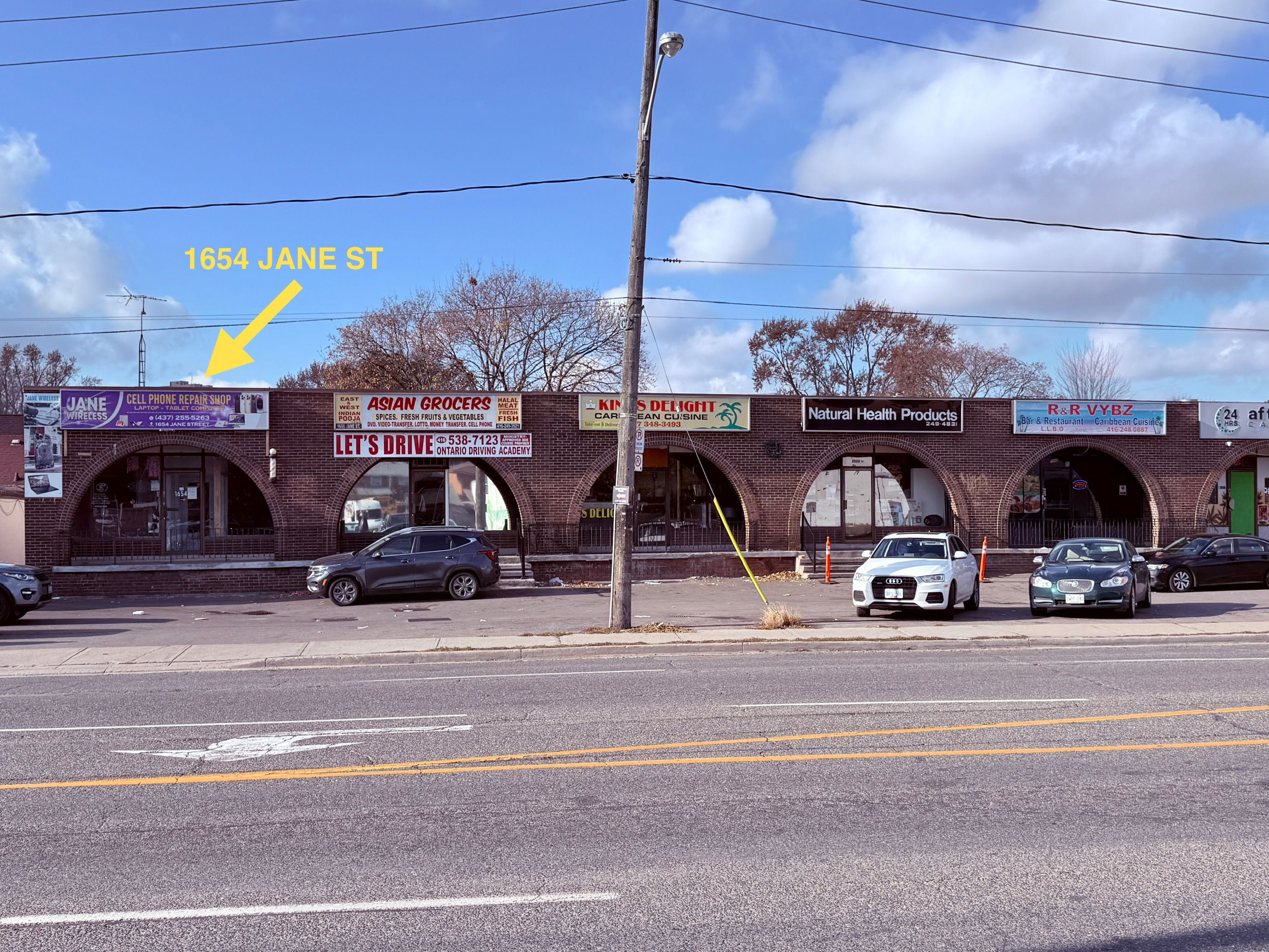Prime commercial retail opportunity on jane street 1654 jane st presents an exceptional opportunity for a wide variety of commercial retail uses in a high-visibility, traffic-busy corridor. This end unit property offers unique benefits, including convenient customer parking. The main floor is bright, versatile, and can be easily divisible to meet specific space requirements. The lease structure simplifies budgeting as the rent includes property taxes, and utilities are separately metered. This is a must-see location for any business seeking maximum exposure and accessibility. Adding significant value is the full-sized, open-concept basement featuring two washrooms and ample storage space. The basement boasts a dedicated separate entrance at the rear, offering potential for multi-functional use-such as administrative offices, additional retail space, or dedicated staff access-without disrupting main floor operations. Situated in a densely populated area with excellent street frontage, this unit is primed to capture significant foot and vehicle traffic. Public transit at your door step and convenient access to major highway. Great for professional and/or service providers.