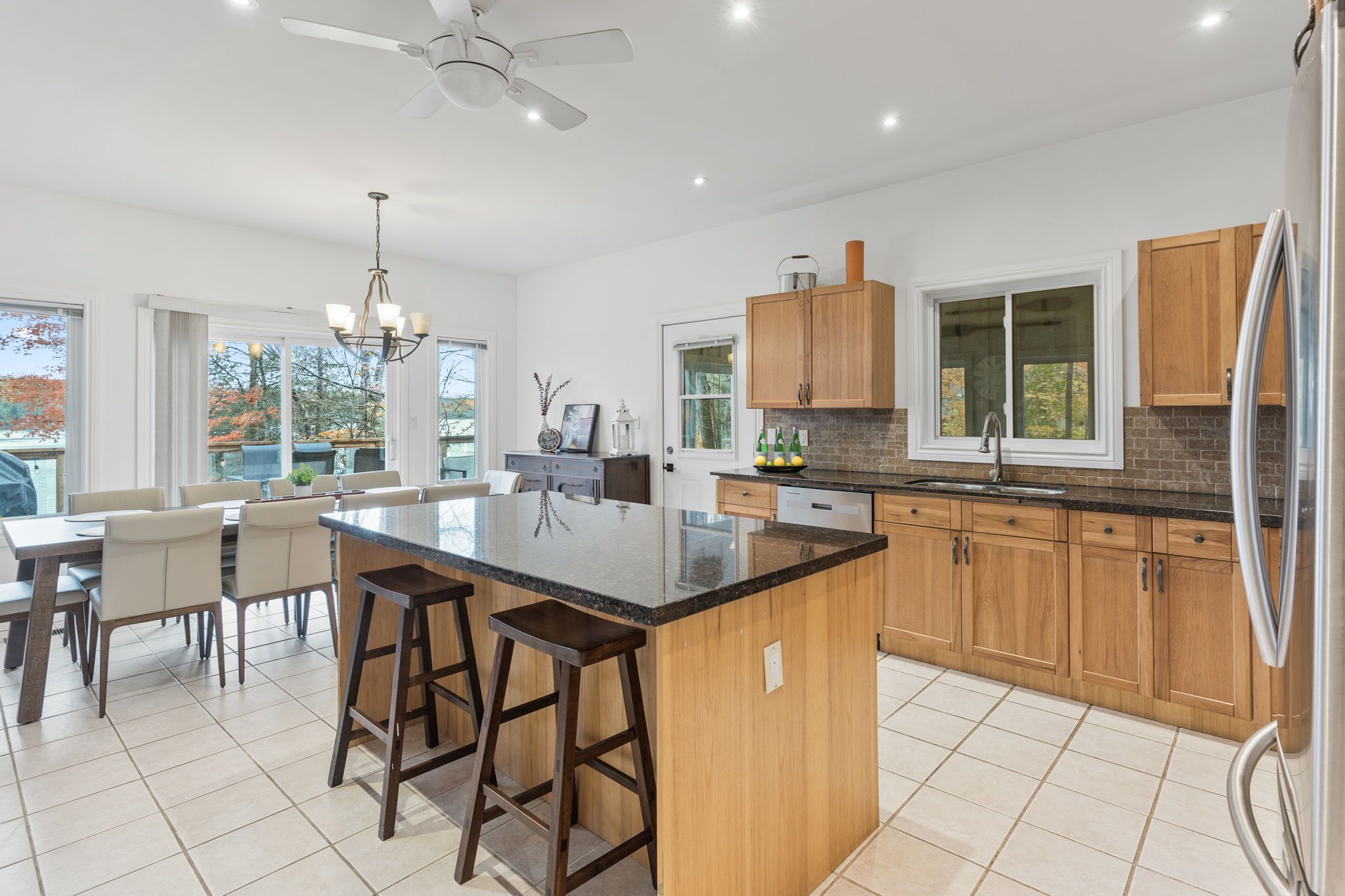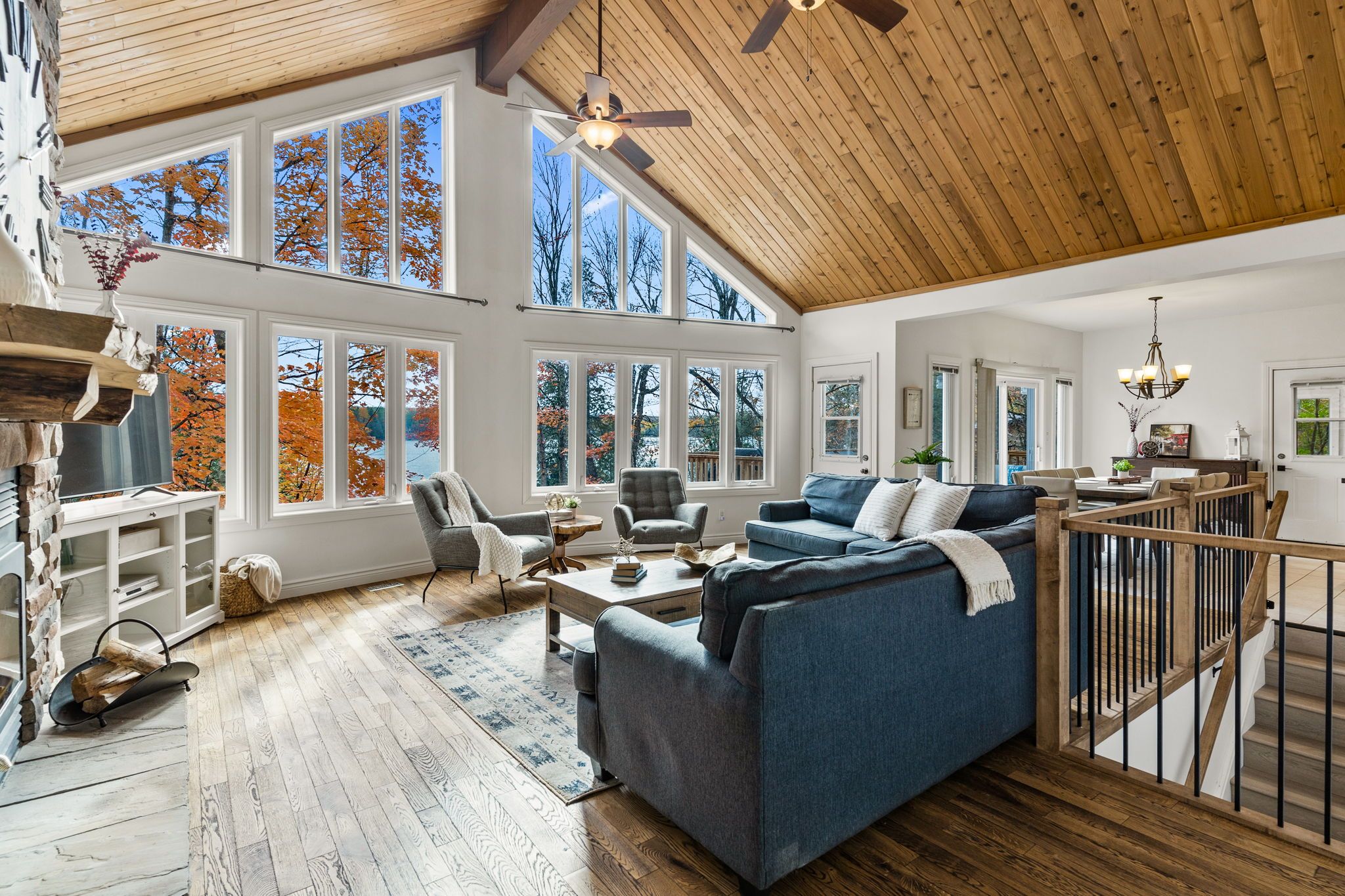 Don't miss this opportunity to own your own slice of paradise. Prime waterfront, gorgeous views. This inviting lakeside retreat offers 5 bedroom and 3 baths with uncompromised luxury minutes from the village of minden and 2 hours from the gta in the amazing haliburton highlands. Experience year-round comfort while hosting family, friends, or extended stay guests with over 3400 sqft of turnkey living space. (everything included*)as you walk in the front door your entranced by the stunning views, vaulted ceilings, an abundance of windows, stone fireplace, gourmet kitchen, walkouts, from both levels to further remind you of lakeside living at its finest. This home was made for gathering and entertaining whether around the oversized granite island, the expansive dining room table or in front of the fireplace in family room, memories are sure to be made. Gourmet kitchen boasts an abundance of cupboards, pantry, bar fridge, ss appliances and rich granite. A cozy haliburton room is off the kitchen to cuddle in with a good book or a quiet conversation over a glass of wine. Easy access to the large outdoor deck is available from family room, dining room or haliburton room, all with amazing views of south lake. Enjoy your morning coffee on the cozy private balcony off the master bedroom which also offers a walk-in closet and ensuite bath. Finishing this level is 2 additional spacious bedrooms and a main bathroom. Centre stairs take you to the "new" fully finished lower level we call the "family & friends fun zone" with spectacular views from the expansive windows boasting another 2 oversized bedrooms, bathroom, laundry, open concept games room with pool table and ping pong, family room and a walk out to your very private outdoor oasis. Inviting hot tub on a snowy winter night? Firepit to enjoy year-round, and a dock ready for some boating, swimming, canoe or kayaking. Don't miss this gem with year-round road access, close to town and everything isincluded*!