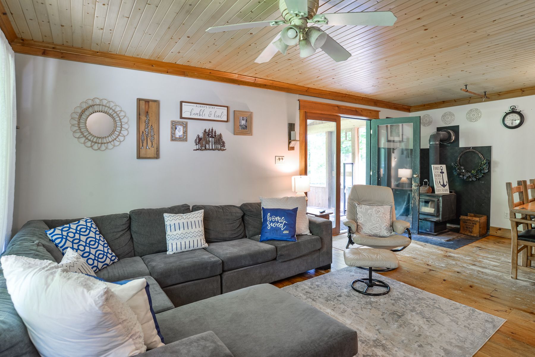 "a little piece of heaven" discover the charm of this country setting with its inviting 3+ bedrooms that showcase exquisite beauty." please take note of the following text: this home is located on one of the most desirable lots and is just minutes away from bass and kahshe lakes. The public beach on bass lake is also very close by. This property offers a great opportunity for first-time home buyers or as a cottage getaway. The picturesque country setting provides a peaceful backdrop for relaxation and leisure. Featuring over 3 bedrooms, the home has a spacious and inviting living space, perfect for accommodating family and friends. The traditional wood flooring is complemented by large picture windows allowing plenty of warm light. A wrap-around covered porch can be enjoyed during the late shoulder seasons and is connected to an inviting pool. The main shopping areas of gravenhurst and bracebridge are a 12 to 15-minute drive away. This property is a must-see and has all the features you could ask for. This is a must-see property that meets all the criteria.