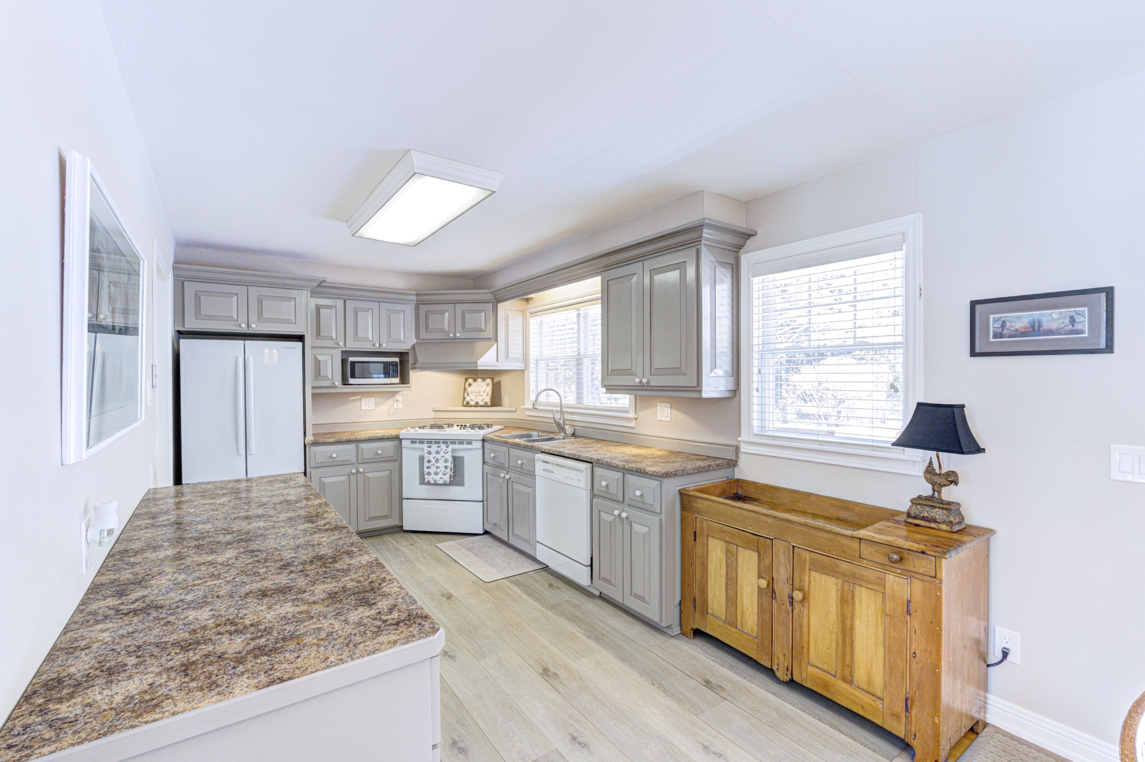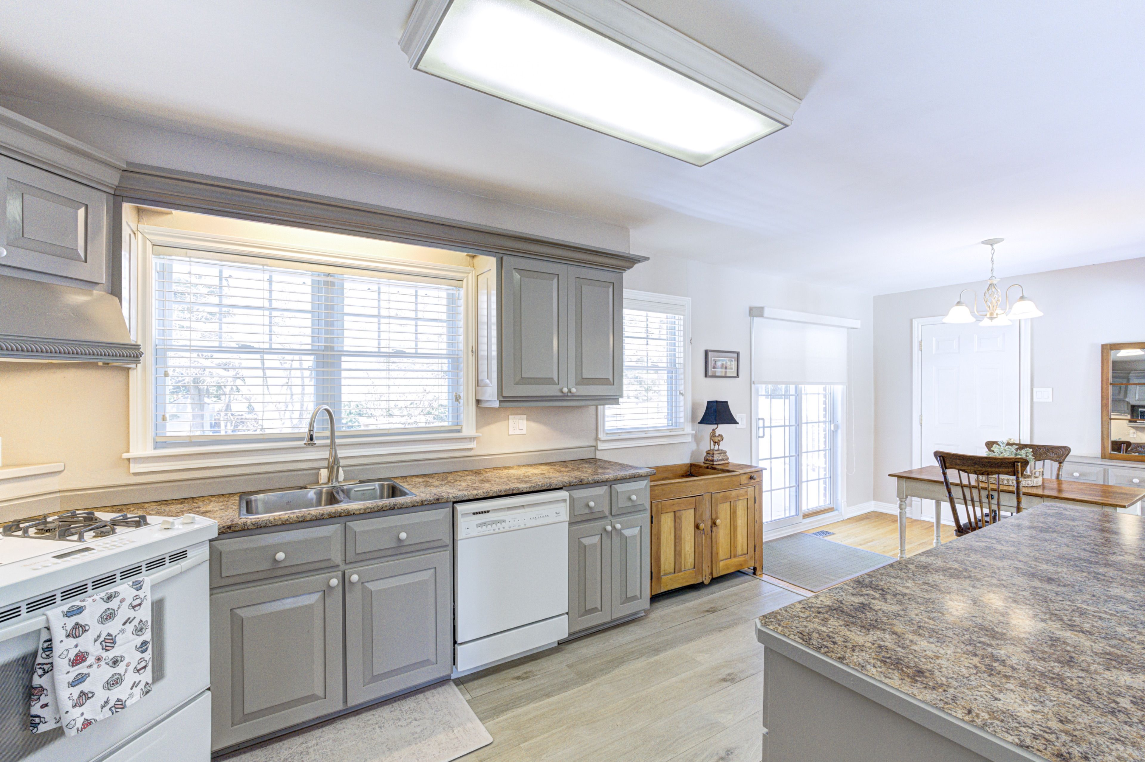 • Bright kitchen with ample cabinetry and access to a deck and garage.