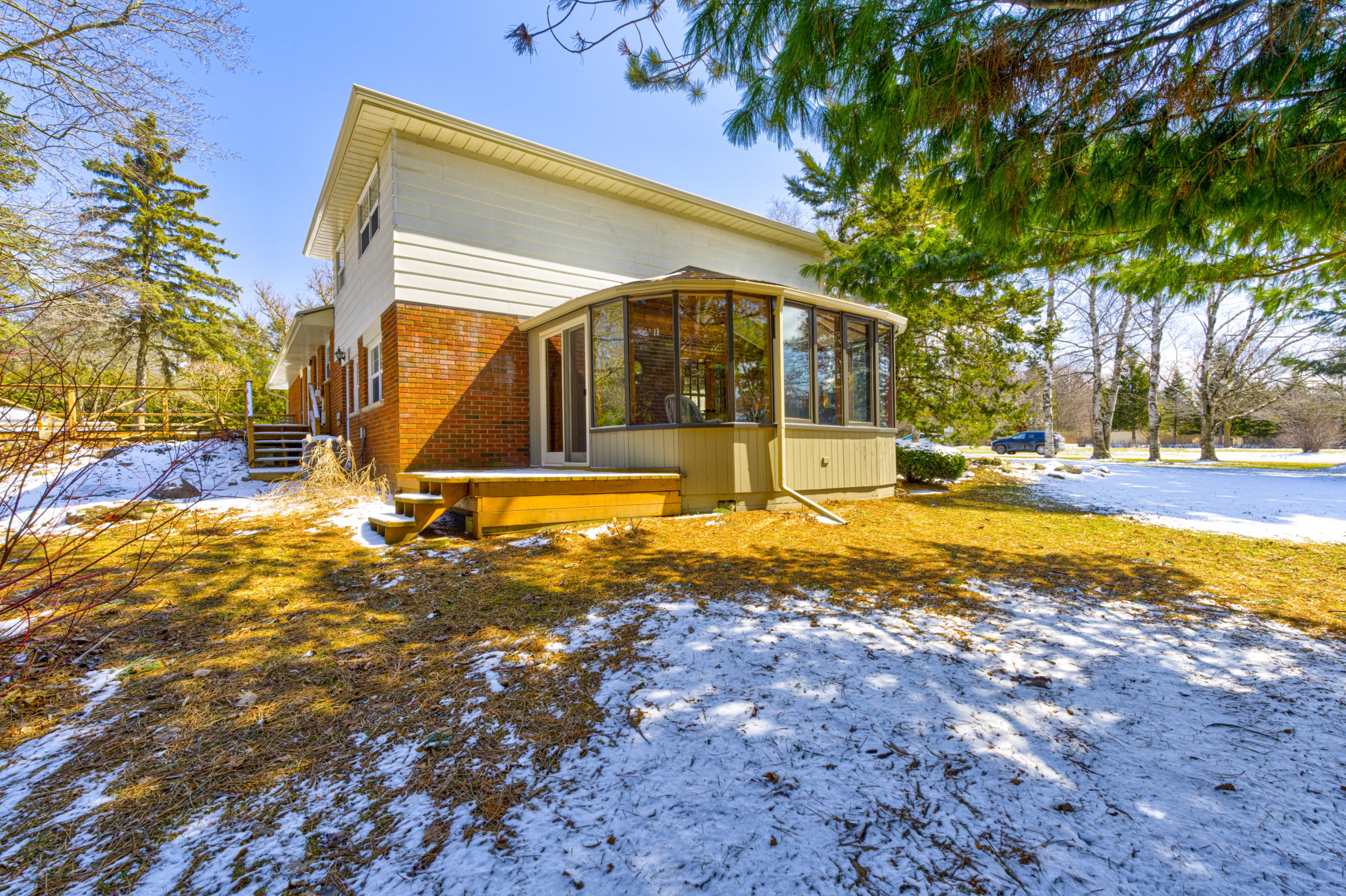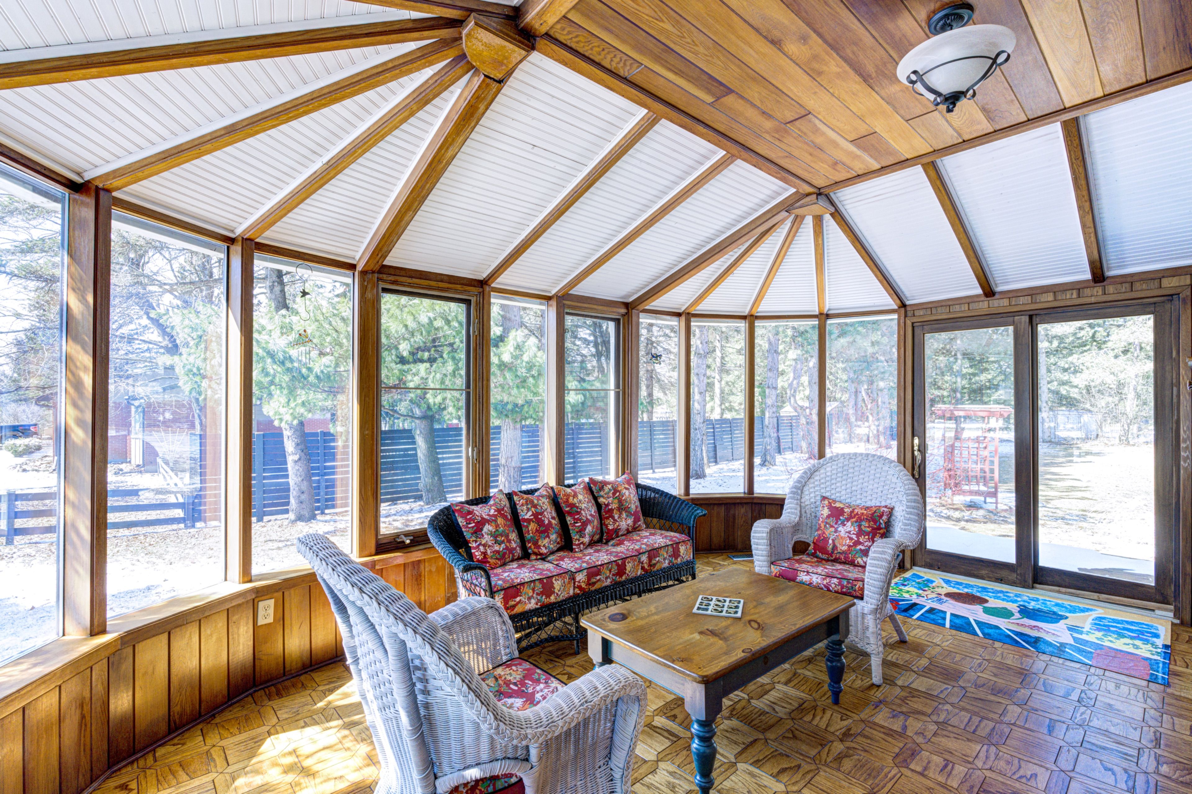 • Sunroom with wraparound windows, perfect for relaxing or entertaining.