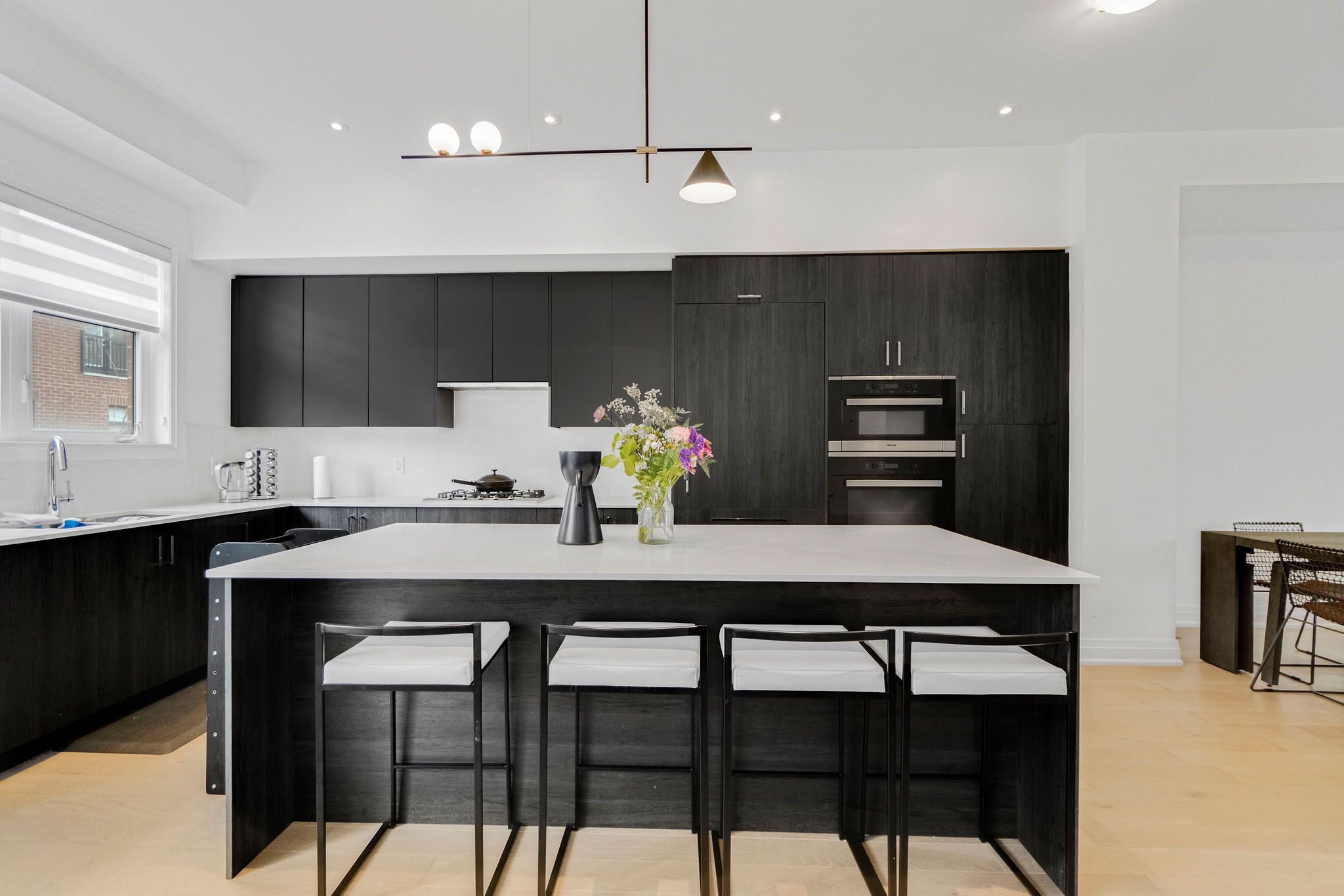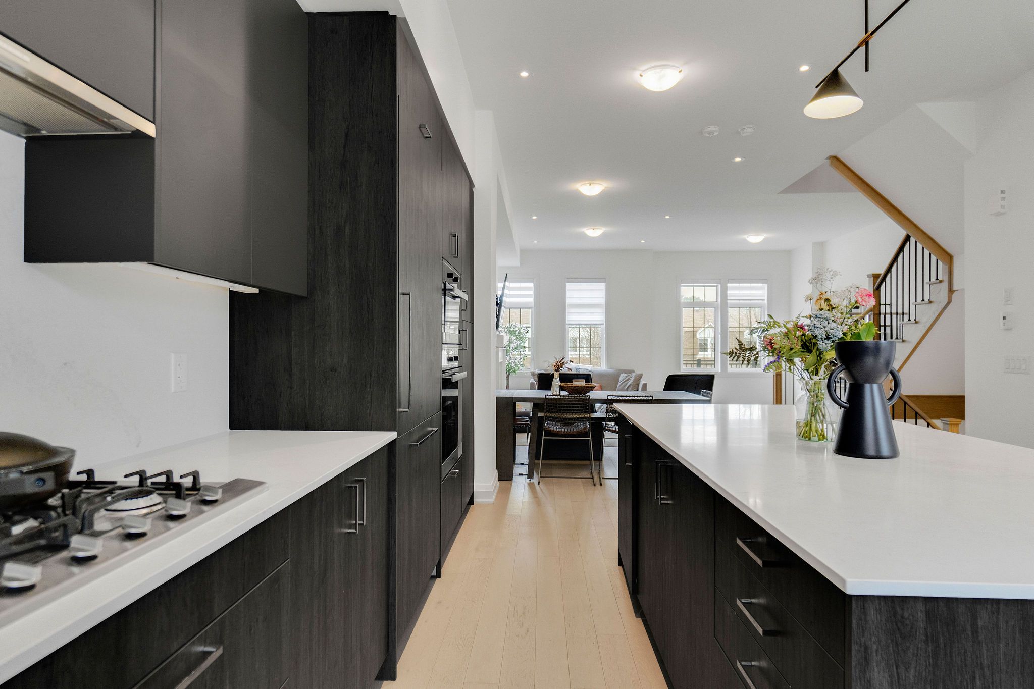 Step into sophistication at 1659 vellore crescent, the highly sought-after wagner model offering approximately 2,242 sq. Ft. Of thoughtfully designed living space. This beautifully upgraded residence blends contemporary elegance with functional luxury, creating the perfect home for modern living. From the moment you enter, you'll appreciate the high ceilings and engineered hardwood flooring that flow throughout the open-concept main level, creating a bright and airy ambiance. A custom shoe closet in the entryway adds both style and practical storage. The gourmet kitchen is a true showpiece, featuring sleek custom cabinetry, built-in miele appliances including microwave-oven, stove, and dishwasher, and a premium fisher & paykel fridge and freezer. The oversized kitchen island provides the ideal gathering space for entertaining, while the breakfast area offers a seamless walk-out to the expanded patio/deck (2024), perfect for outdoor dining and summer relaxation. The dining and living areas connect effortlessly, creating a functional layout suited for both everyday living and hosting guests. Upstairs, the luxurious primary suite serves as a private retreat, complete with a custom walk-in closet and spa-inspired ensuite. Three additional generously sized bedrooms each feature custom closets, ensuring ample storage throughout. The upper-level layout is completed with convenient laundry and thoughtfully designed family-friendly space. With premium built-in appliances, custom storage solutions, engineered hardwood flooring, high ceilings, and an expanded outdoor living area, 1659 vellore crescent delivers exceptional comfort, style, and functionality within a spacious wagner model layout. Rare opportunity in this tranquil mineola, yet mins away from schools, shops, restaurants, transit & port credit.