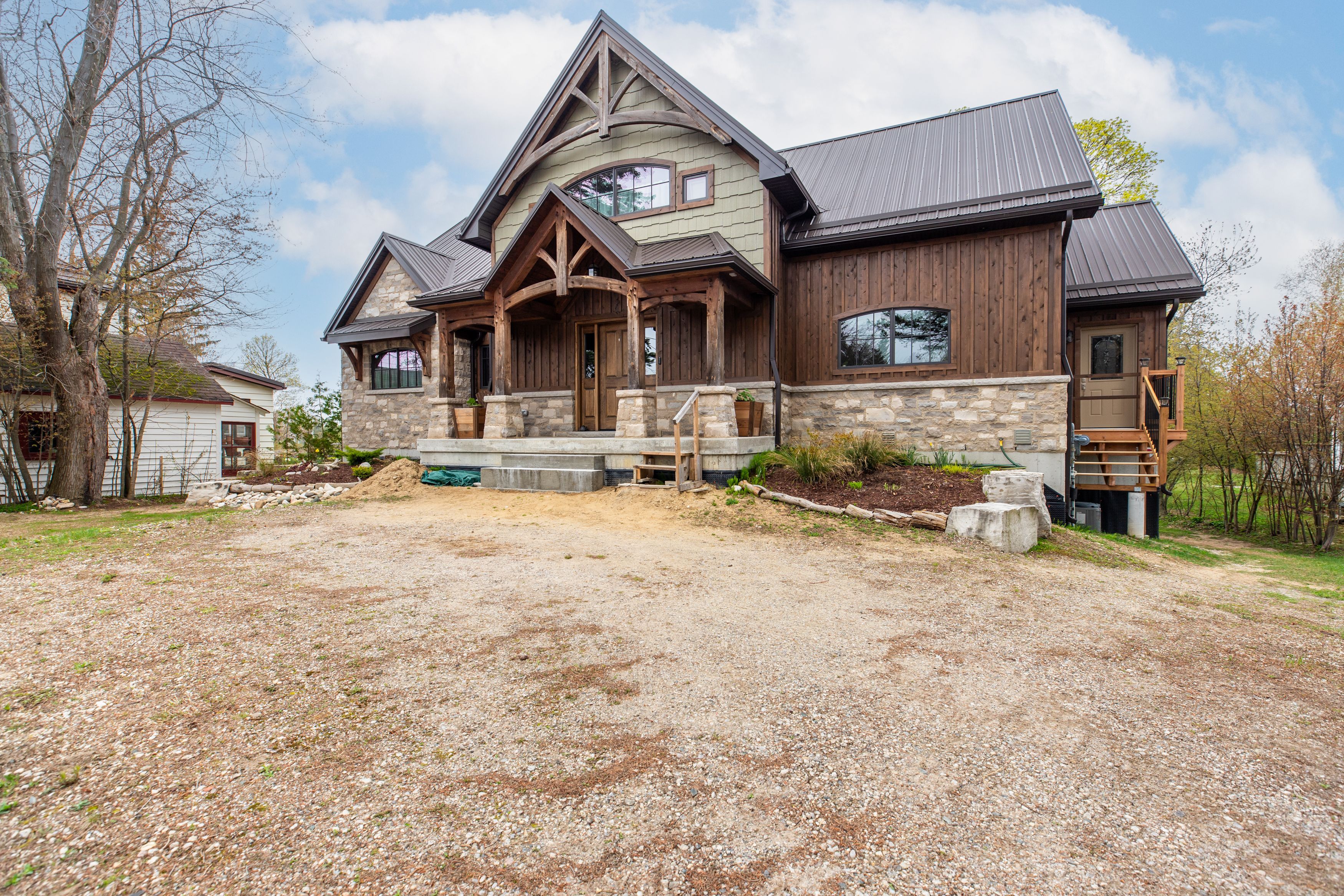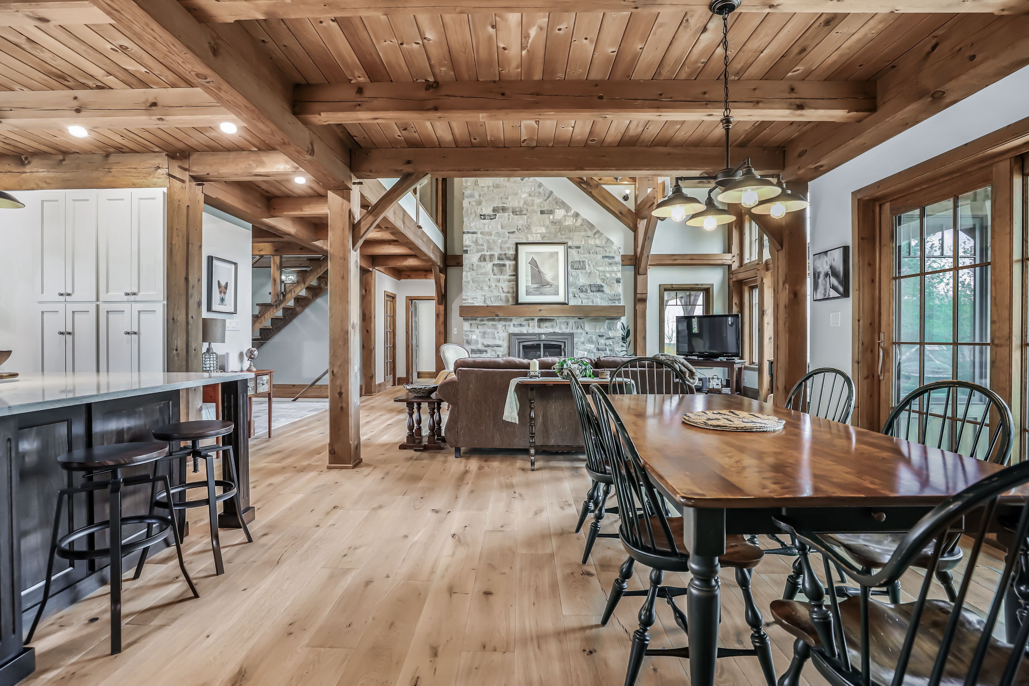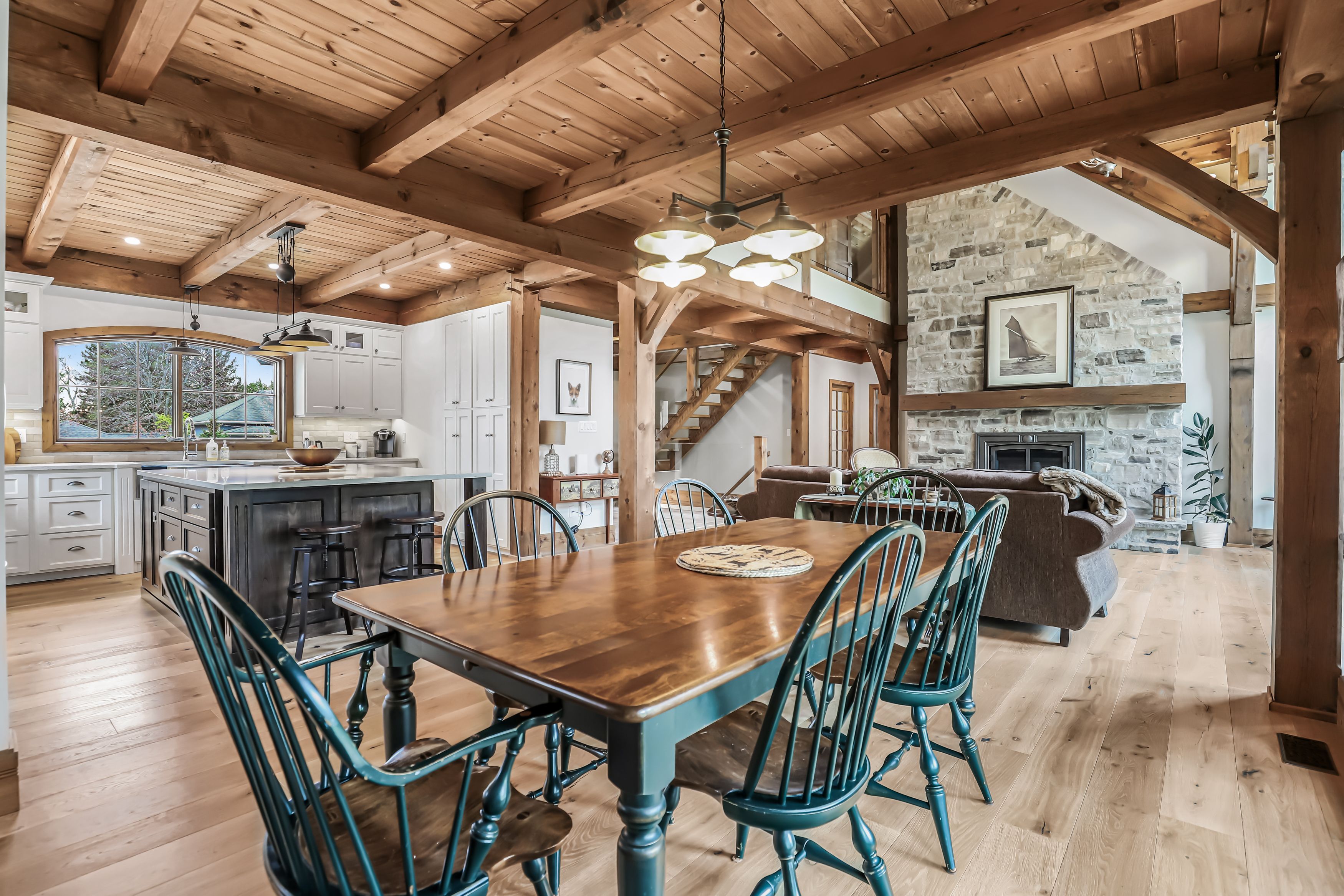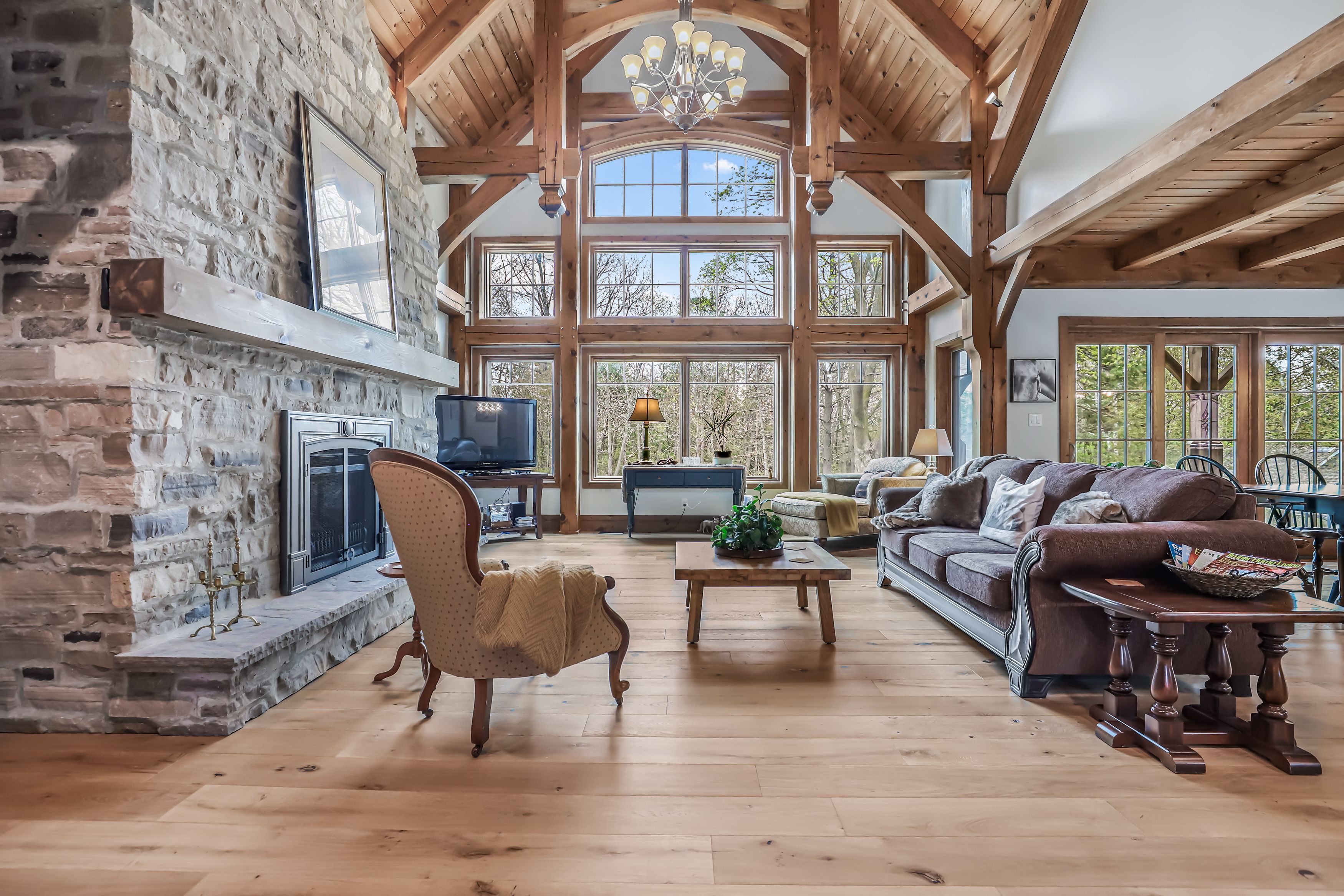 A rare riverfront retreat in southampton. Welcome to a one-of-a-kind timber frame masterpiece nestled on the banks of the saugeen river, just steps from the shores of lake huron. This extraordinary home blends artisan craftsmanship with refined luxury in one of ontario's most coveted locations. From the moment you step into the grand foyer, you're greeted by a stunning interplay of natural elements rich timber beams, elegant tile, and soaring glass. The dramatic living room is the heart of the home, where cathedral ceilings and exposed hammerbeam trusses frame a floor-to-ceiling stone fireplace. Sunlight floods the space through expansive windows, creating a warm and inviting ambiance. The chefs kitchen is an entertainers dream, with a generous central island that seats five, gleaming quartz countertops, and exquisite cabinetry with custom pot drawers and glazed uppers. Host elegant dinners in the dining room, or step onto the raised balcony to dine alfresco with views of your private, treed backyard. The main floor primary suite is a tranquil escape featuring its own secluded balcony, a lavish 5-piece spa-inspired ensuite with freestanding soaker tub, glass walk-in shower, double vanity, and a generous walk-in closet. Upstairs, a glass-railed loft overlooks the living room, flanked by two private bedrooms and a luxurious central bath. The fully finished lower level offers even more indulgence: a radiant-heated family room with stone hearth wood stove, wet bar, walk-out patio access, a spacious bedroom, full bath, exercise room, and a wine-lovers dream cold room. Just steps from pioneer park, the riverfront harbour, and southampton's charming downtown, this home offers an unparalleled lifestyle of beauty, privacy, and prestige.