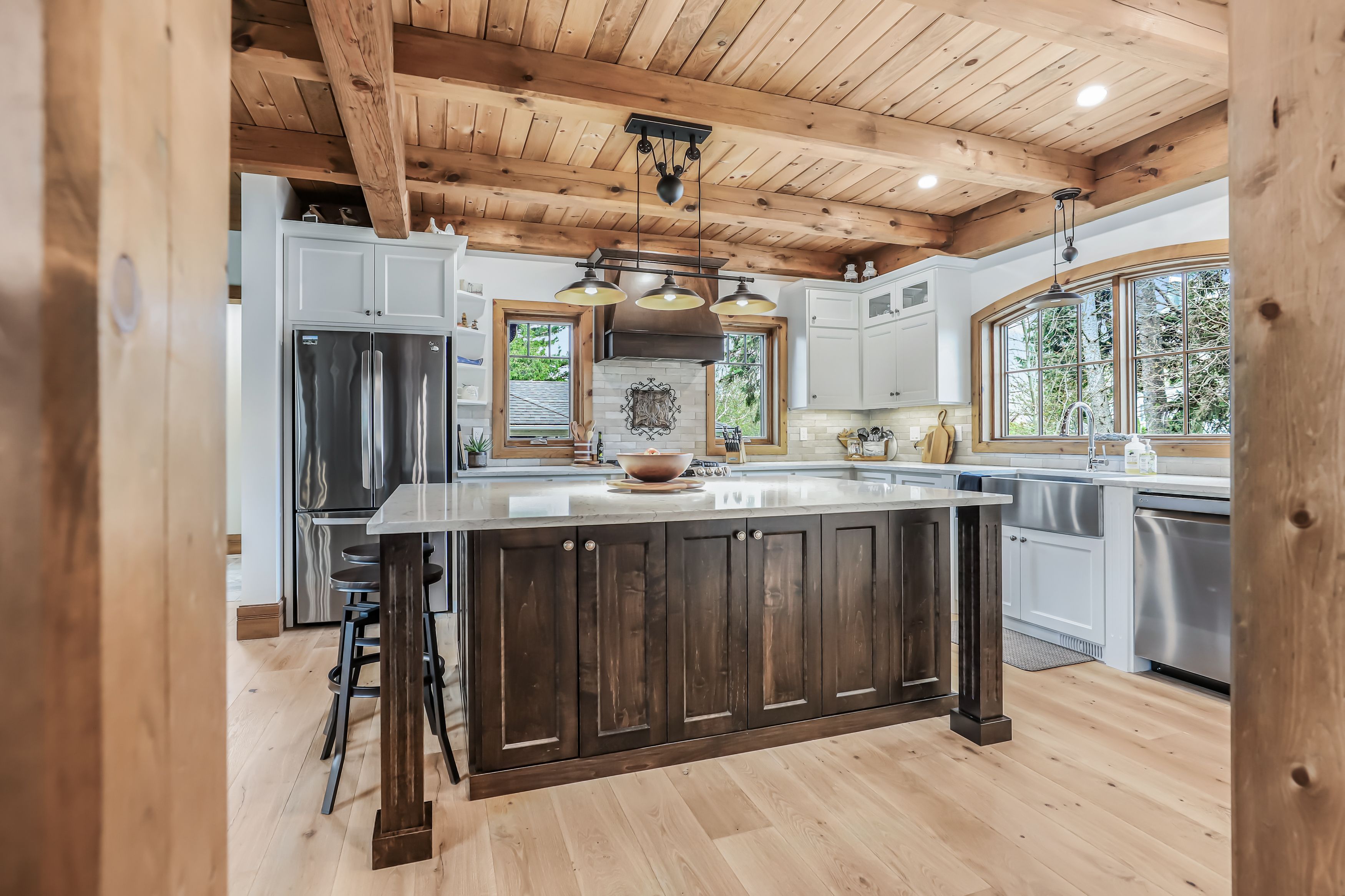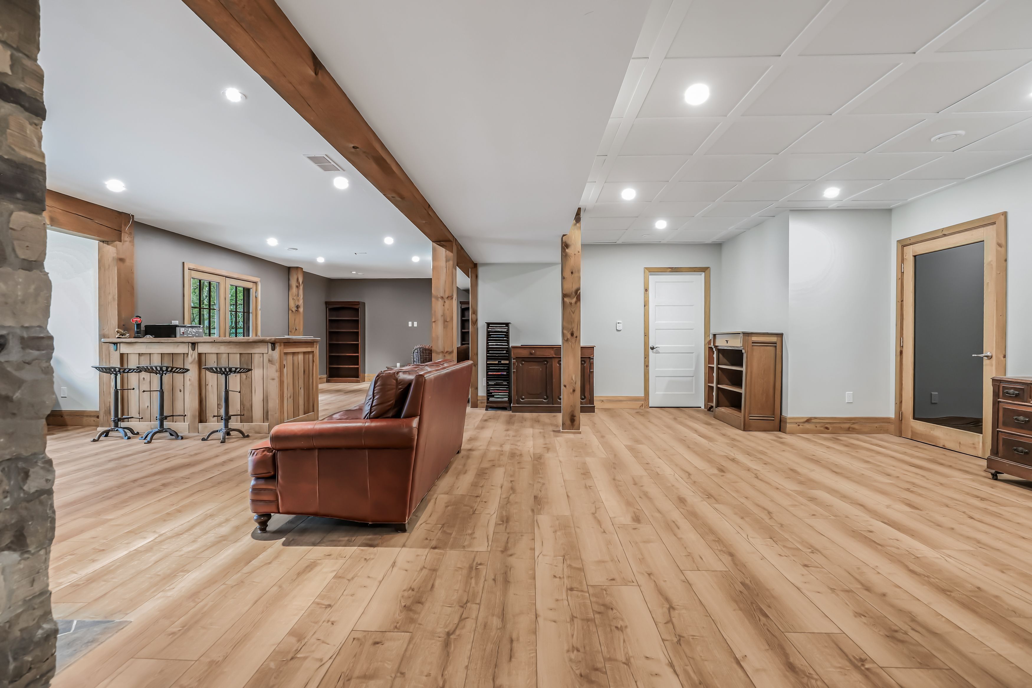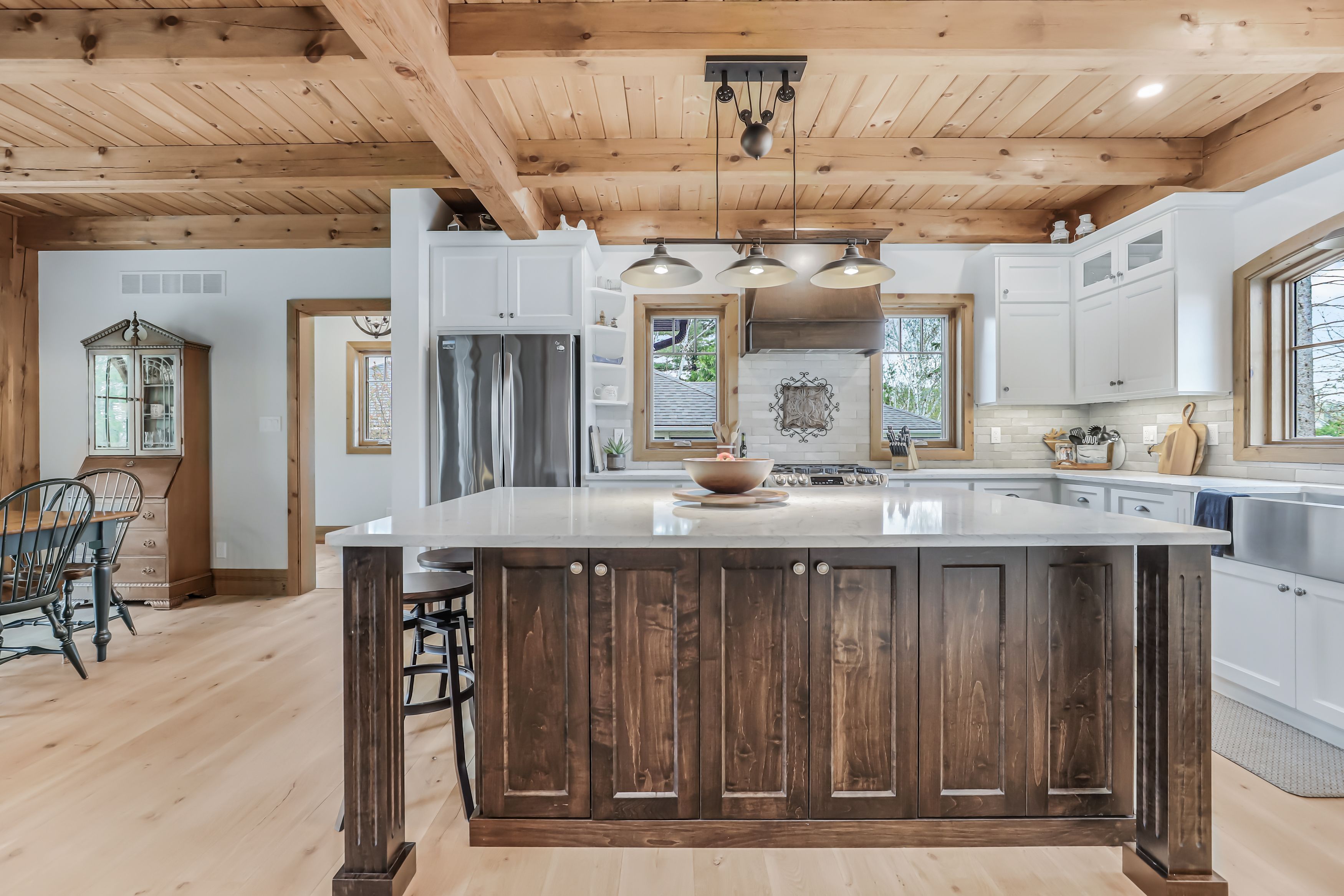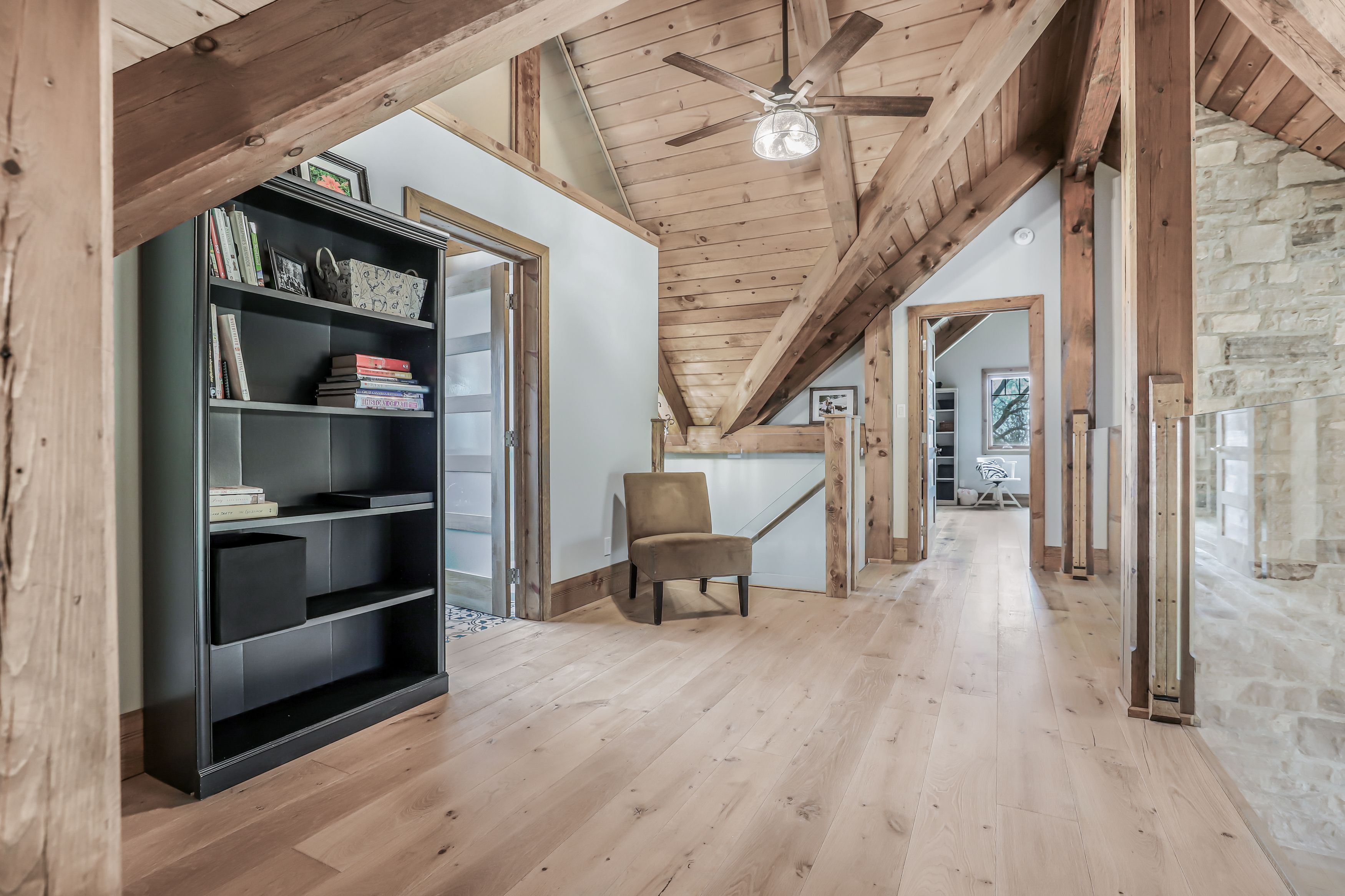 A rare riverfront retreat in southampton. Welcome to a one-of-a-kind timber frame masterpiece nestled on the banks of the saugeen river, just steps from the shores of lake huron. This extraordinary home blends artisan craftsmanship with refined luxury in one of ontario's most coveted locations. From the moment you step into the grand foyer, you're greeted by a stunning interplay of natural elements rich timber beams, elegant tile, and soaring glass. The dramatic living room is the heart of the home, where cathedral ceilings and exposed hammerbeam trusses frame a floor-to-ceiling stone fireplace. Sunlight floods the space through expansive windows, creating a warm and inviting ambiance. The chefs kitchen is an entertainers dream, with a generous central island that seats five, gleaming quartz countertops, and exquisite cabinetry with custom pot drawers and glazed uppers. Host elegant dinners in the dining room, or step onto the raised balcony to dine alfresco with views of your private, treed backyard. The main floor primary suite is a tranquil escape featuring its own secluded balcony, a lavish 5-piece spa-inspired ensuite with freestanding soaker tub, glass walk-in shower, double vanity, and a generous walk-in closet. Upstairs, a glass-railed loft overlooks the living room, flanked by two private bedrooms and a luxurious central bath. The fully finished lower level offers even more indulgence: a radiant-heated family room with stone hearth wood stove, wet bar, walk-out patio access, a spacious bedroom, full bath, exercise room, and a wine-lovers dream cold room. Just steps from pioneer park, the riverfront harbour, and southampton's charming downtown, this home offers an unparalleled lifestyle of beauty, privacy, and prestige.