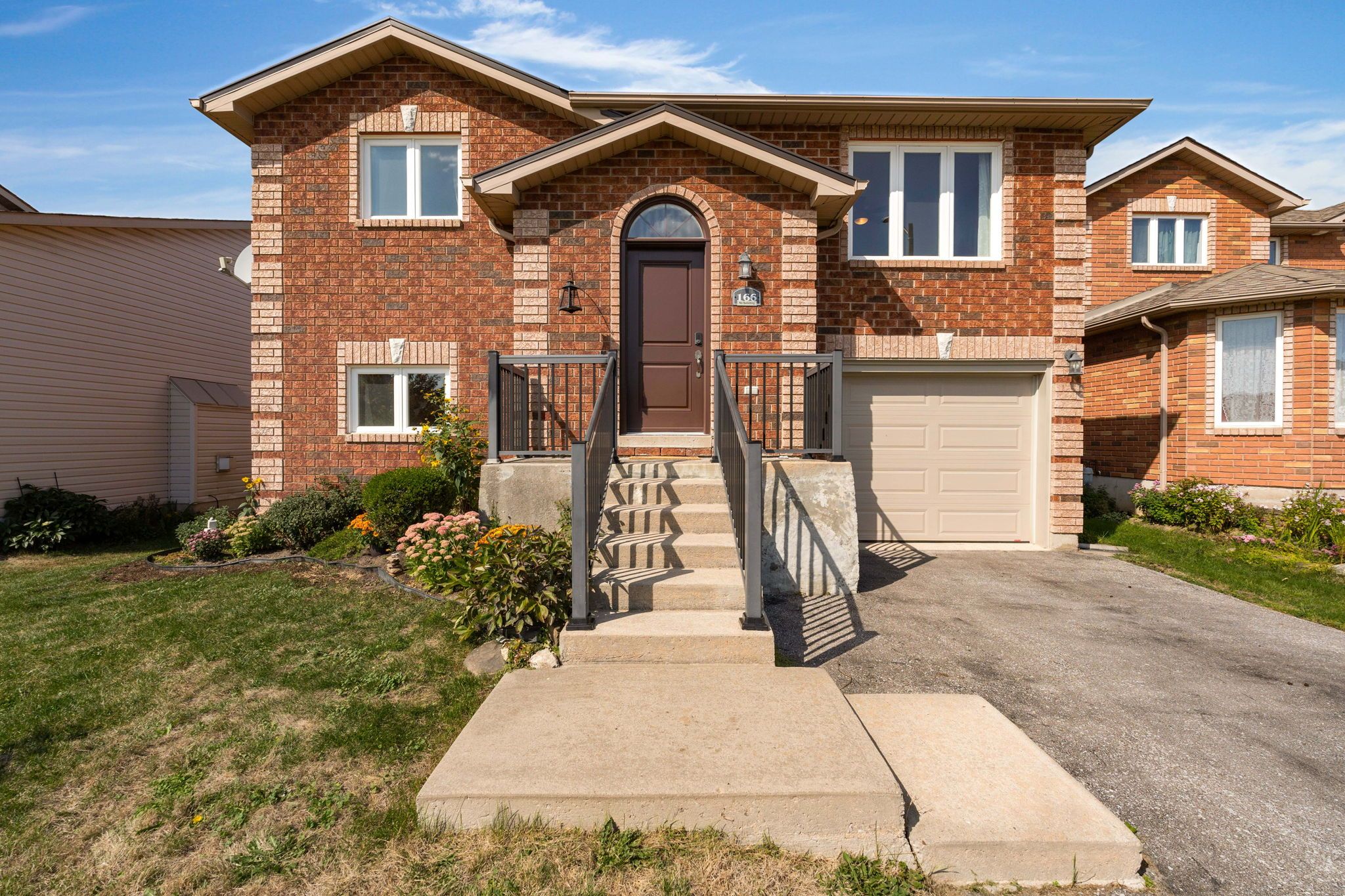 Presenting 166 country lane in barrie's family centric painswick south community - surrounded by green space and parks - where everything a busy household might need is steps away - minutes away - or just a short drive from home! * schools, parks, plenty of shopping options, casual & fine dining, public transit, go train/bus service, recreation, entertainment. * key commuter routes north to cottage country or south to the gta. * easy access to the four season recreation simcoe county is known for - golf, trails, resorts, water fun, skiing, and more! This exceptionally well-cared for all brick detached raised bungalow - one-owner home - offers a surprising amount of functional living space on the main level, that is extended to the full, finished lower level with ground level walk out. The principle level of this detached raised bungalow presents a phenomenal open floor plan with easy flow for both daily family life and for entertaining - living room, dining room, eat-in kitchen with walk out to upper deck for easy access to your bbq - with the private zone being primary bedroom + additional 2 comfortable bedrooms, main bath. The lower level of this home is a walk-out and is entirely above grade and features a bright living space with large above grade windows bathing the lower level with natural light - large rec room, two additional bedrooms, full bath, laundry/utility room, and access to the attached single car garage, large family? Multi-generational living? Frequent guests? Income potential? Simply add a kitchen to convert the lower level to a secondary suite. The whole property is landscaped with excellent curb appeal and the fully fenced rear yard offers mature gardens, decks, patio with gazebo and summer fun with an above-ground pool. The large projects have been completed - updated garage doors, windows and metal roof - so you can take these large ticket items off your list! This home offers endless possibilities!