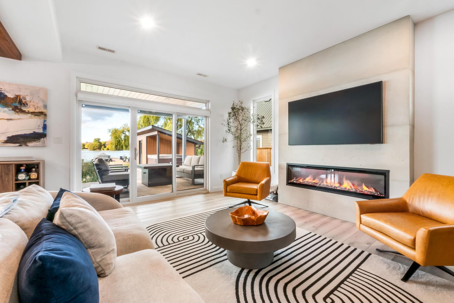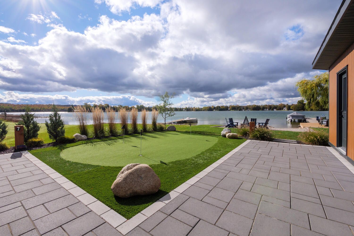 • South facing patios offering stunning lake views and natural light.