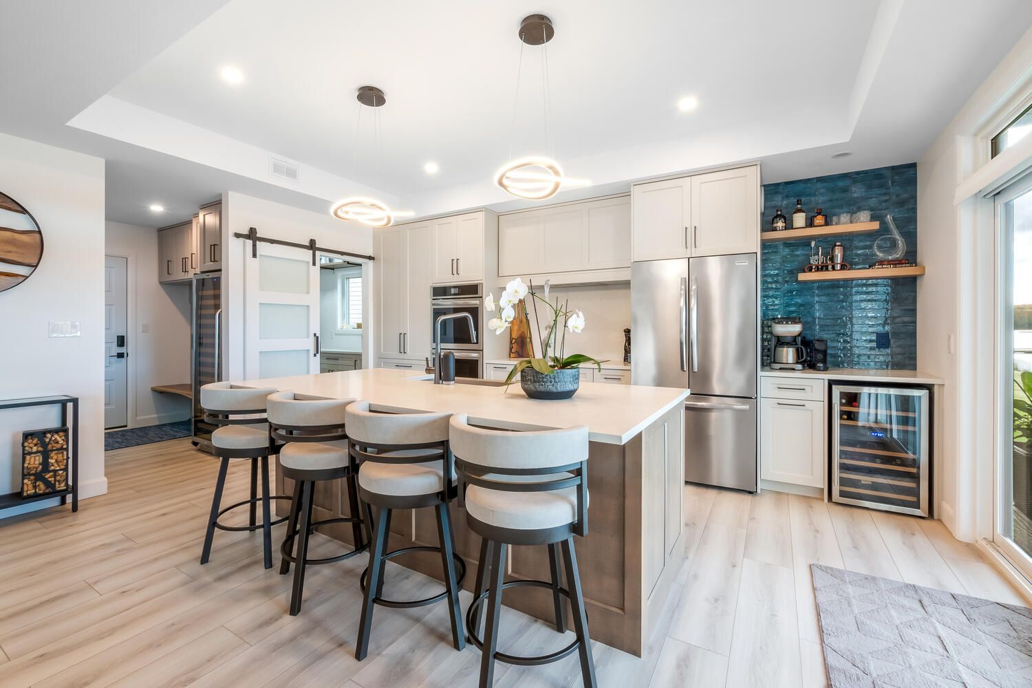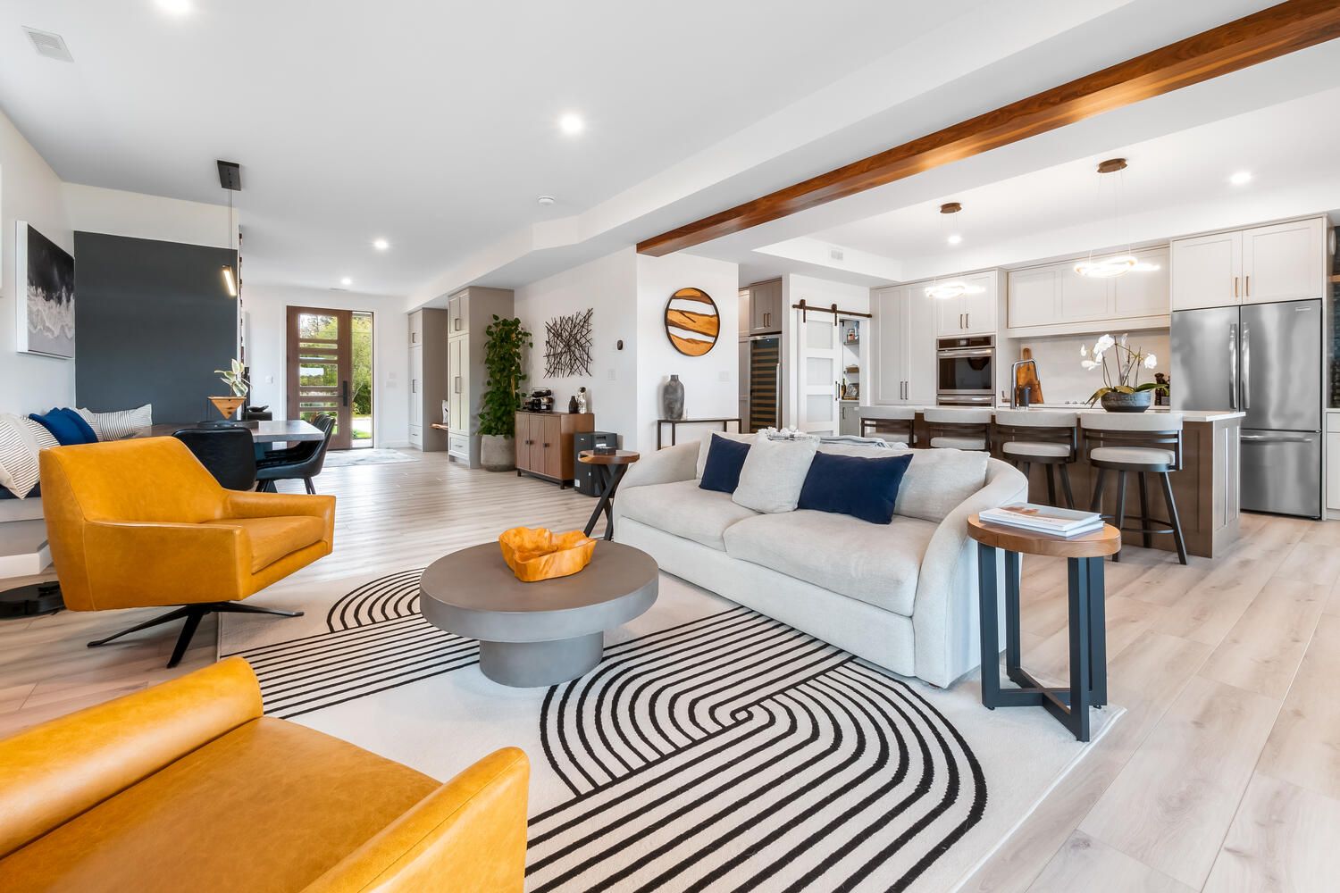 • Chef's kitchen featuring top-tier appliances and quartz countertops.