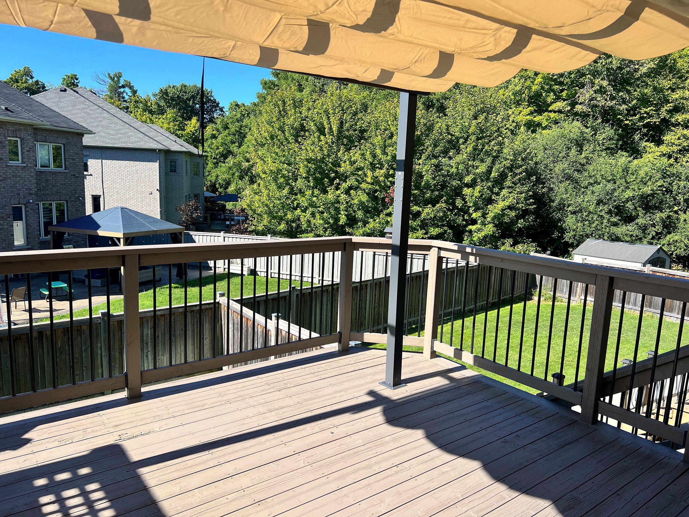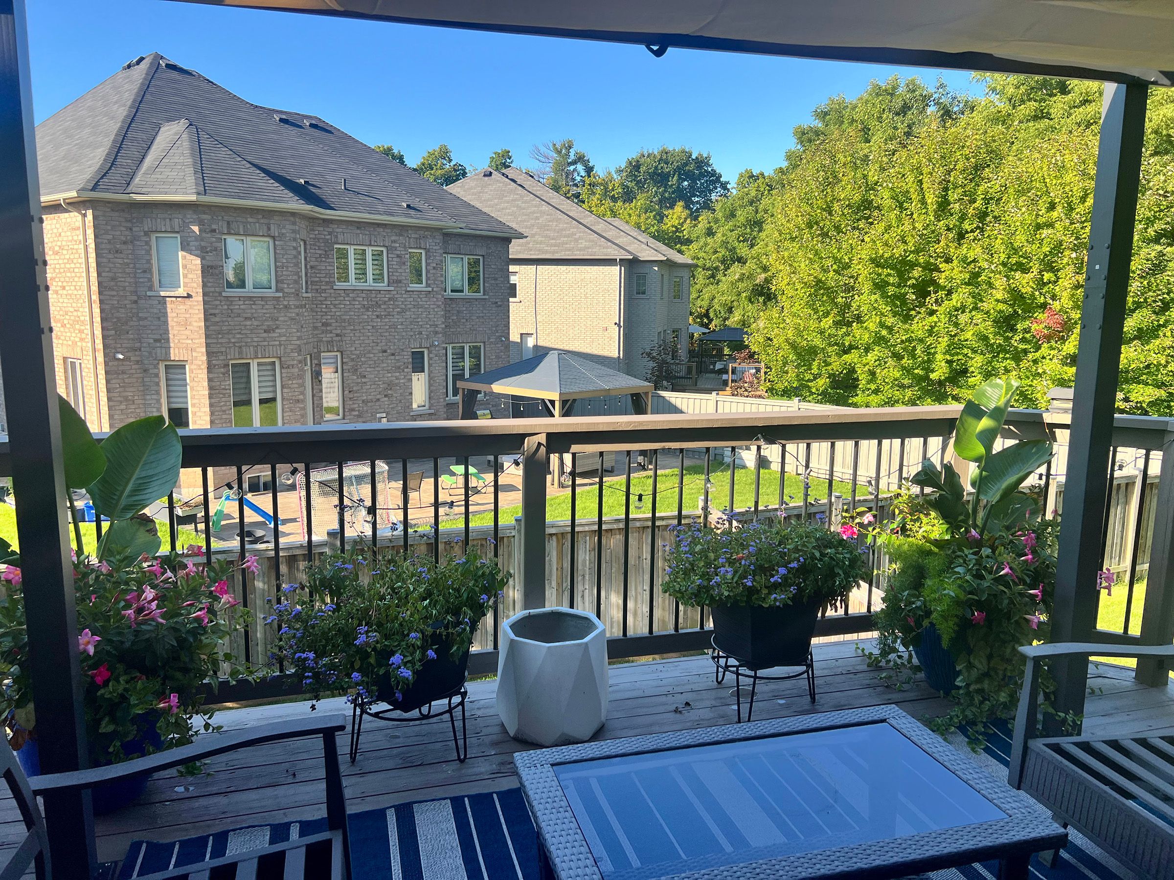 • Beautiful backyard deck with peaceful ravine views, close to schools.