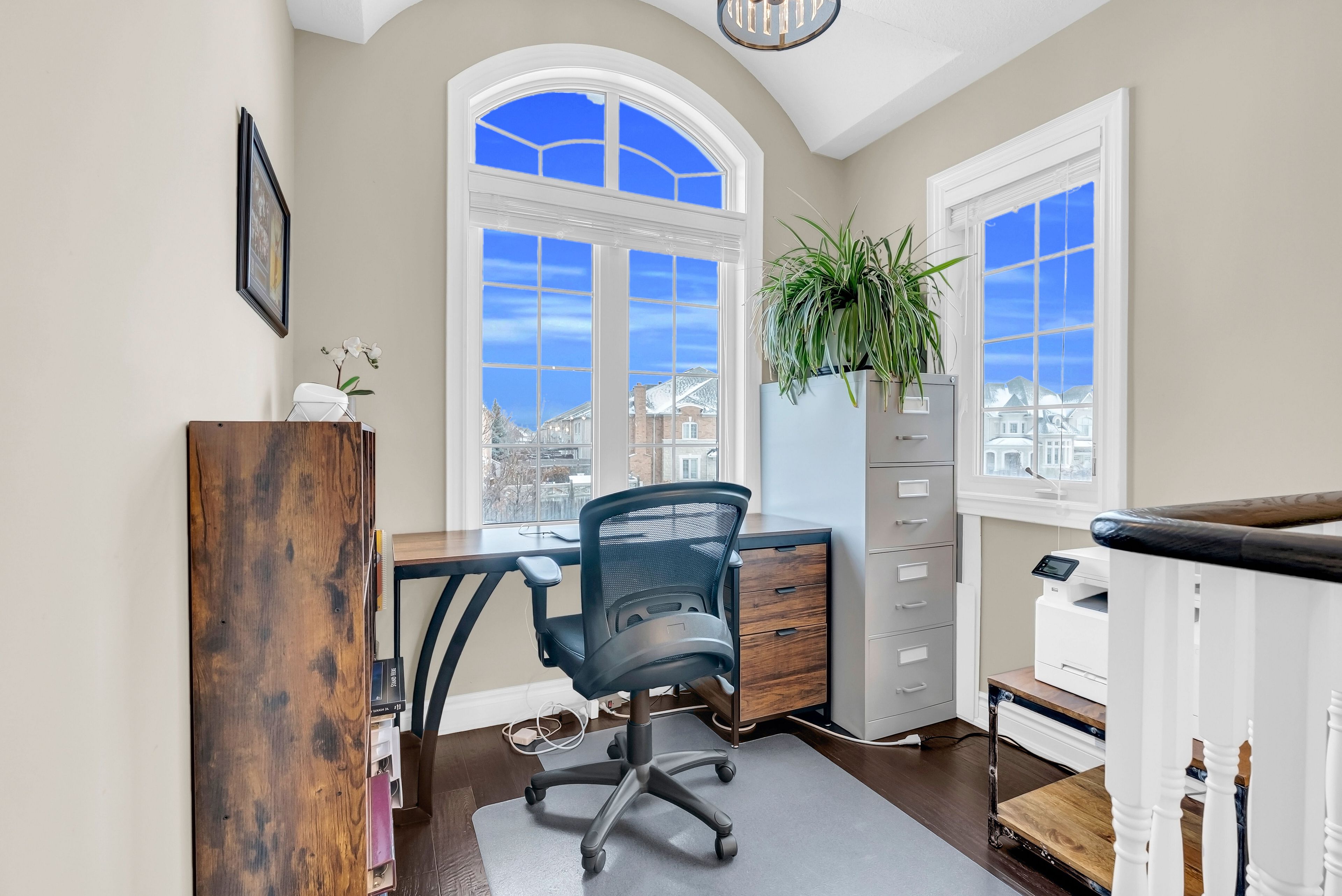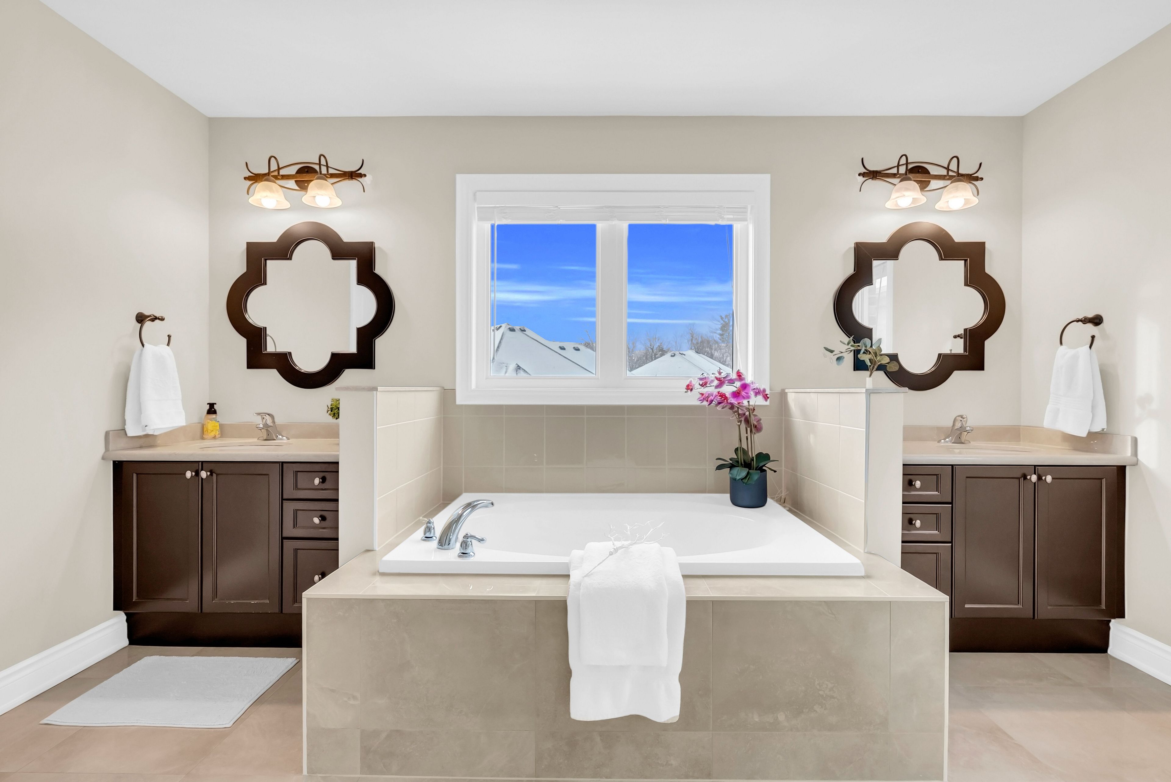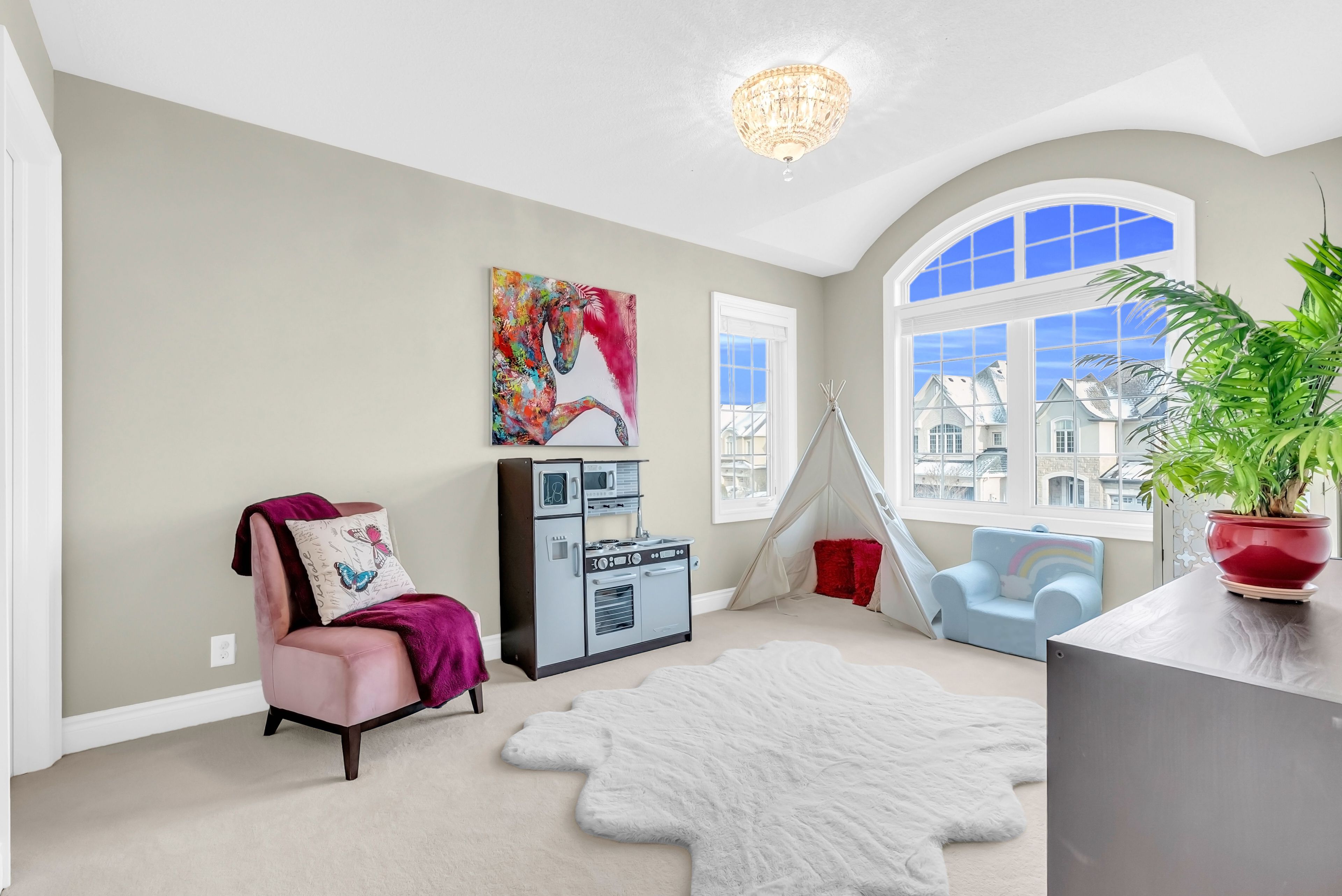 Welcome to this bright, sun-filled home radiating with warmth and positive energy! Lovingly maintained and located in a highly sought-after neighbourhood, this property offers an ideal blend of style, space, and comfort. The main floor features hardwood floors, 9-foot ceilings, and upgraded high-end light fixtures throughout. Enjoy a family-sized kitchen and a spacious family room complete with pot lights and a cozy two-way gas fireplace. Upstairs, you'll find 4 generous bedrooms, 3 full bathrooms, and a versatile loft area - perfect for a home office or study space. The primary suite is impressive with two walk-in closets and a luxurious 5-piece ensuite. Bedrooms 2 and 3 share a convenient jack-and-jill washroom. This incredibly bright home also features a walkout finished basement, bringing the total living space to approximately 4,000 sq ft. The basement includes a kitchenette/bar, ample storage, and a walkout to a private interlocking patio - perfect for entertaining or relaxing. Interlocking continues along the front and side of the home for added curb appeal. Enjoy a beautiful backyard deck with ravine views, and walk to excellent nearby schools in just minutes.