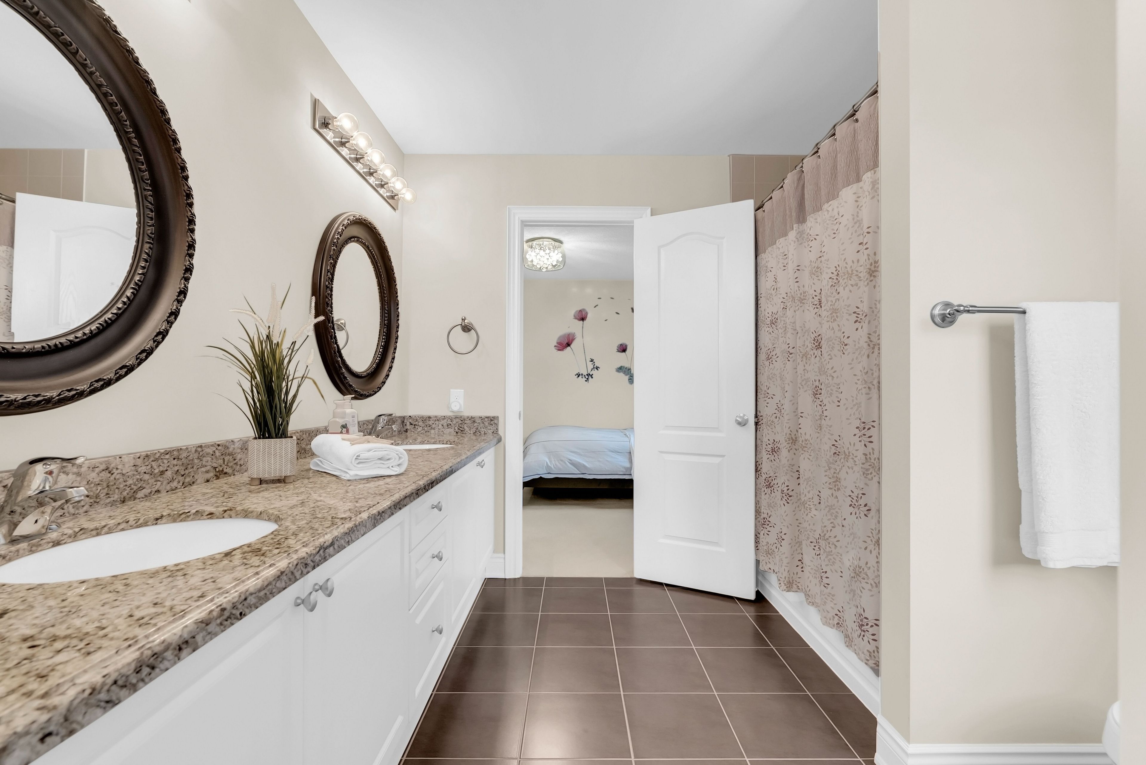 • Four spacious bedrooms with three full bathrooms for convenience.
