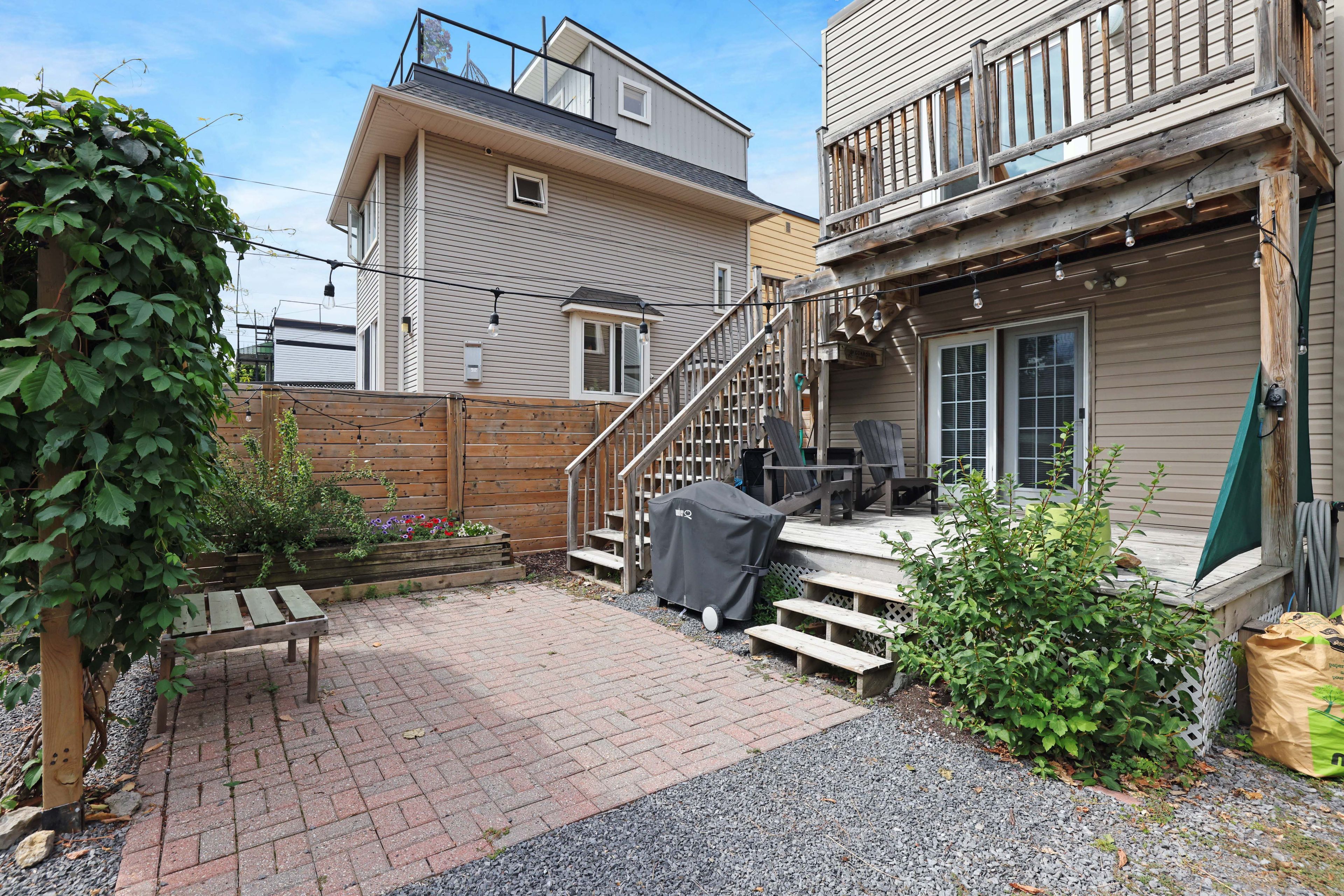 A smart duplex choice here for buyer live-in, investment or to join forces with a friend to buy together, live separately. Located off cumberland where guigues is blocked off from dalhousie you can enjoy a quiet traffic-free location with many similar well-cared for homes on the street. Enjoy the convenience of walking to global affairs, to the national art gallery, to boutique specialty delicatessen food and lifestyle shops, and cafes and restaurants while maintaining a comfortable distance from the tourist traffic! A handsome brick fronted exterior speaks to the continued exterior and interior maintenance of this building, with a single owner over the past 30+ years. The building was duplexed in 1982. Upstairs, second floor, the bright owner-occupied apartment awaits with a well appointed kitchen, a dining and living room and two bedrooms. The 2-piece bathroom includes the vanity sink and toilet. The 1-piece bathroom includes the shower together with the washer and dryer. Good closet space throughout. Tenants of 11 years (month to month) are on the main floor which has 2 bedrooms (one used as an office), kitchen, dining and living room and a 4-piece bath. There is an additional hall/walk-through space that could be useful for a desk or as a utility area. (not included in main floor measurements, see floor plan). Lots of closets in this apartment. Washer and dryer are in the basement. Basement is lowish, dry and good for storage. There is a poured concrete foundation on the perimeter of the basement along the stone foundation walls. Both apartments enjoy outdoor living space; a large deck at the back of the main floor and front and back verandahs on the upper level. Parking is at the back of the building. List of improvements and rental unit expenses attached. Parking: definitely 3 cars, maybe 4.