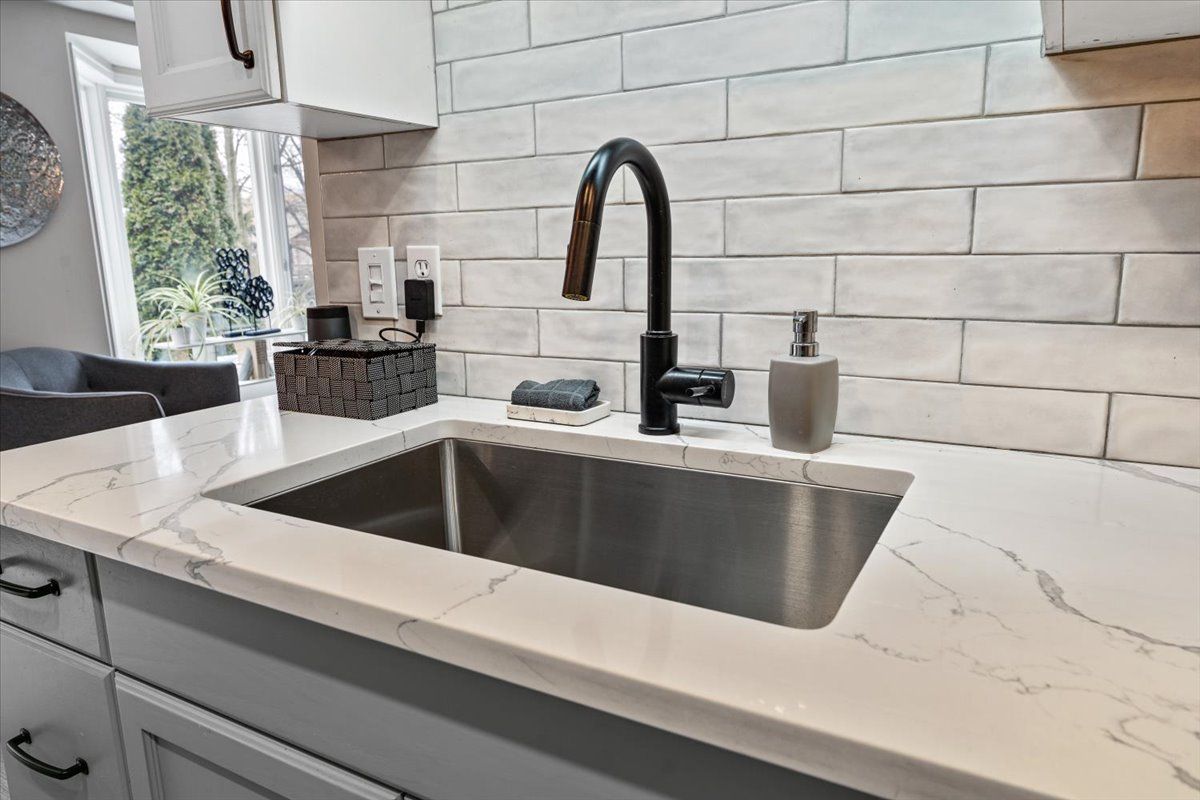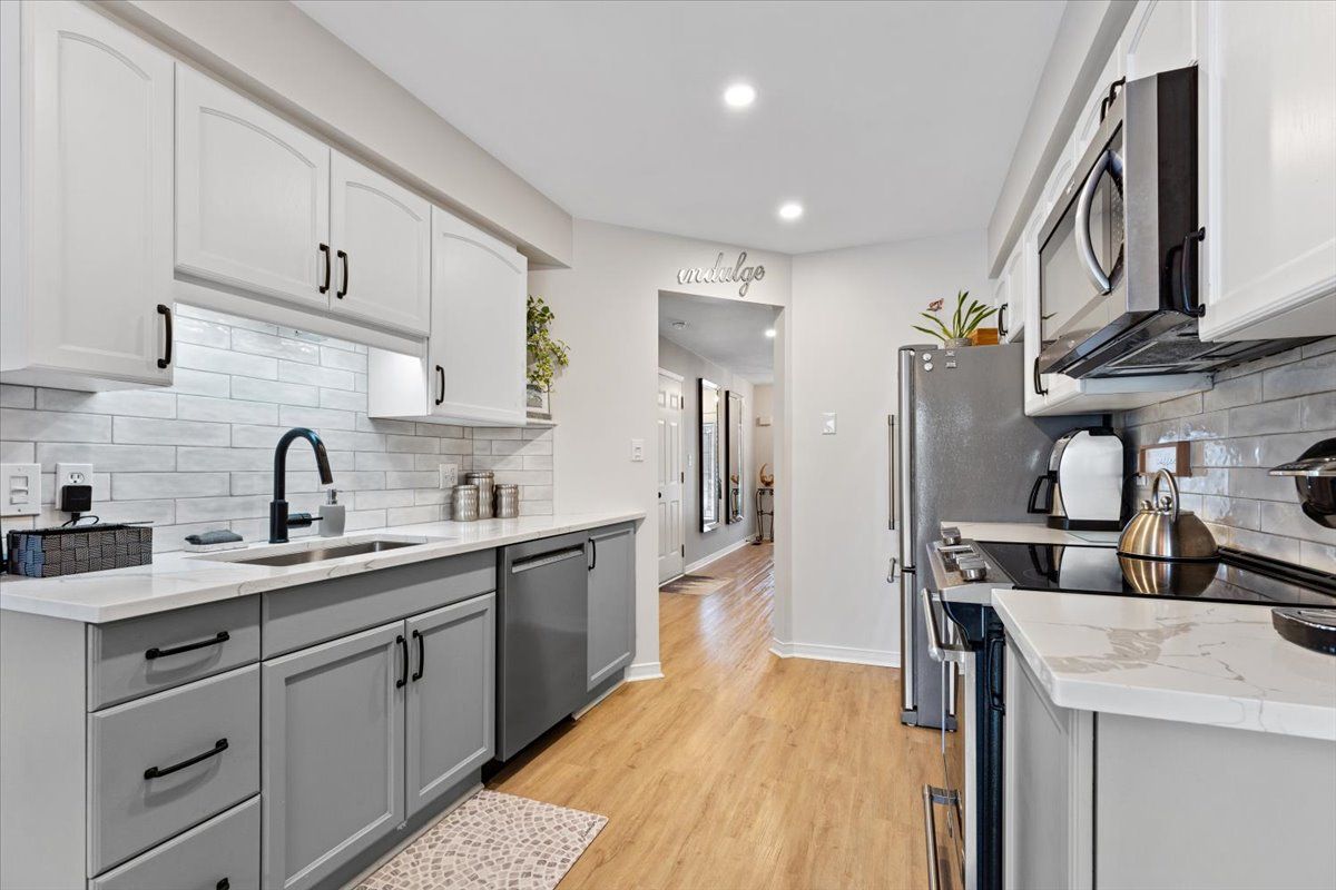 • Updated kitchen features quartz countertops and overlooks a private deck.