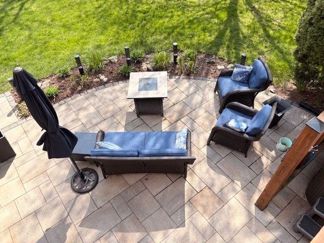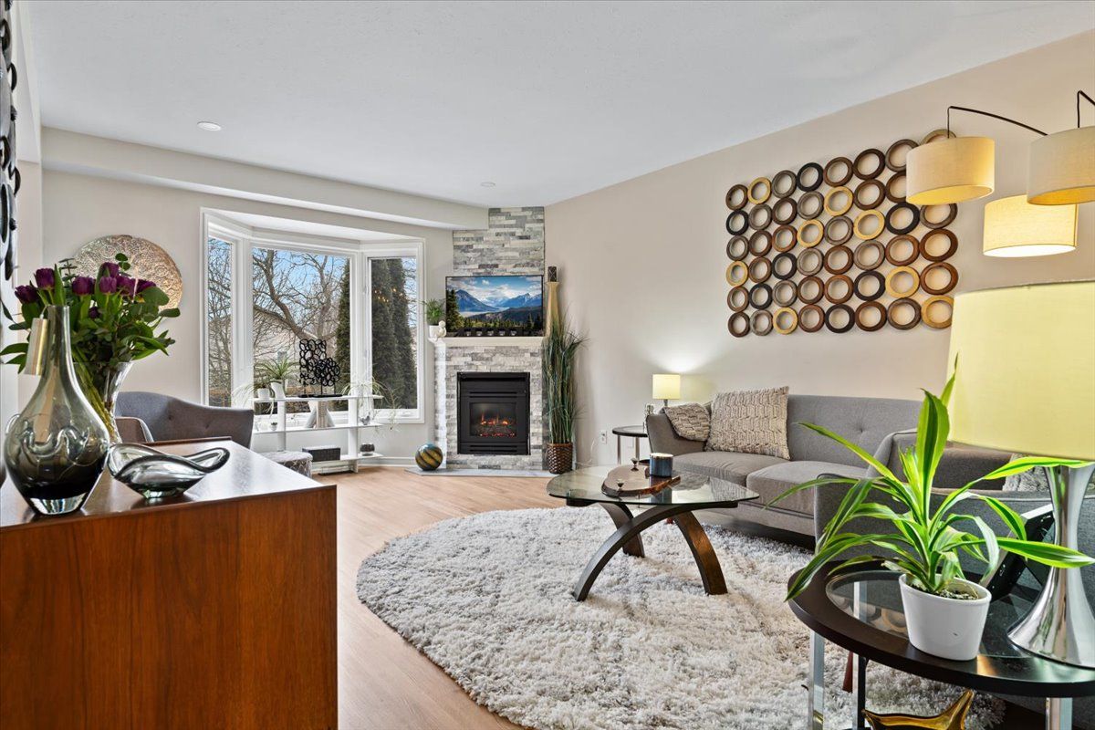 • Bright living room with a cozy stone gas fireplace for relaxing nights.