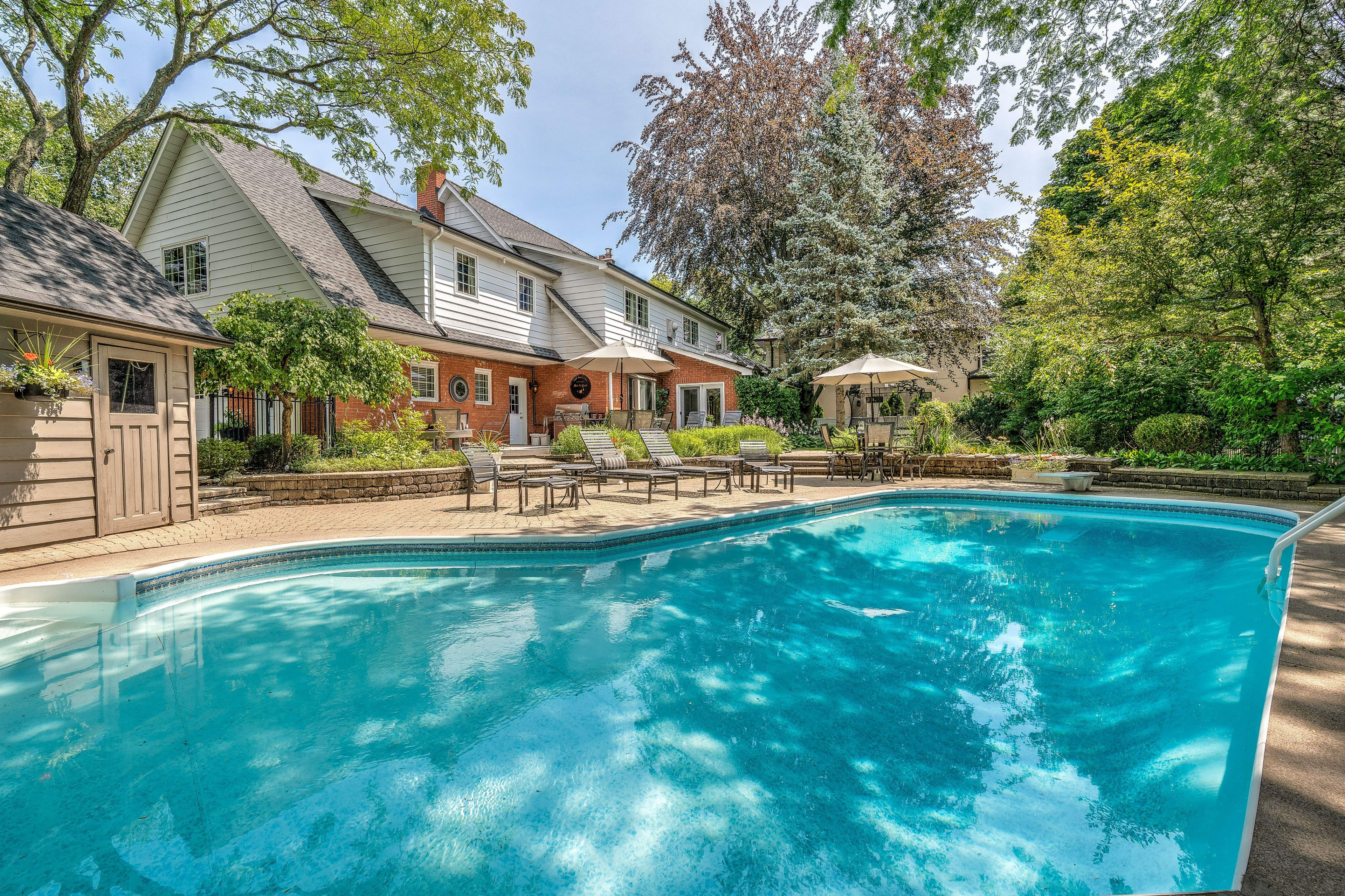 Nestled in the heart of prestigious southeast oakville, 166 maple grove drive presents a rare opportunity to own a classic cape cod residence on a private, mature 1/3 acre lot. Proudly owned by the same family since its original build, this cherished home exudes timeless character and refined charm. The property showcases an impressive 112 x 128- foot lot, surrounded by lush landscaping and enhanced by landscape lighting that creates a warm evening ambiance. The backyard oasis features a sparkling in-ground pool, multi-level deck and patio area, and dedicated pool shed perfect for summer entertaining or quiet relaxation in complete privacy. Inside, this spacious family home offers five bedrooms and five bathrooms, including a thoughtfully finished lower level for additional living and recreation space. The expansive bedroom suite over the double -car garage, complete with a separate staircase offers flexibility for an in-law, nanny, or private guest suite. With elegant principal rooms, a bright kitchen overlooking the gardens, and classic architectural details throughout, this residence combines the grace of traditional design with the comfort and functionality demanded by today's lifestyle. Perfectly situated among oakville's most distinguished addresses. Minutes from top-rated schools, the lakefront and downtown oakville this property delivers both prestige and peaceful family living.