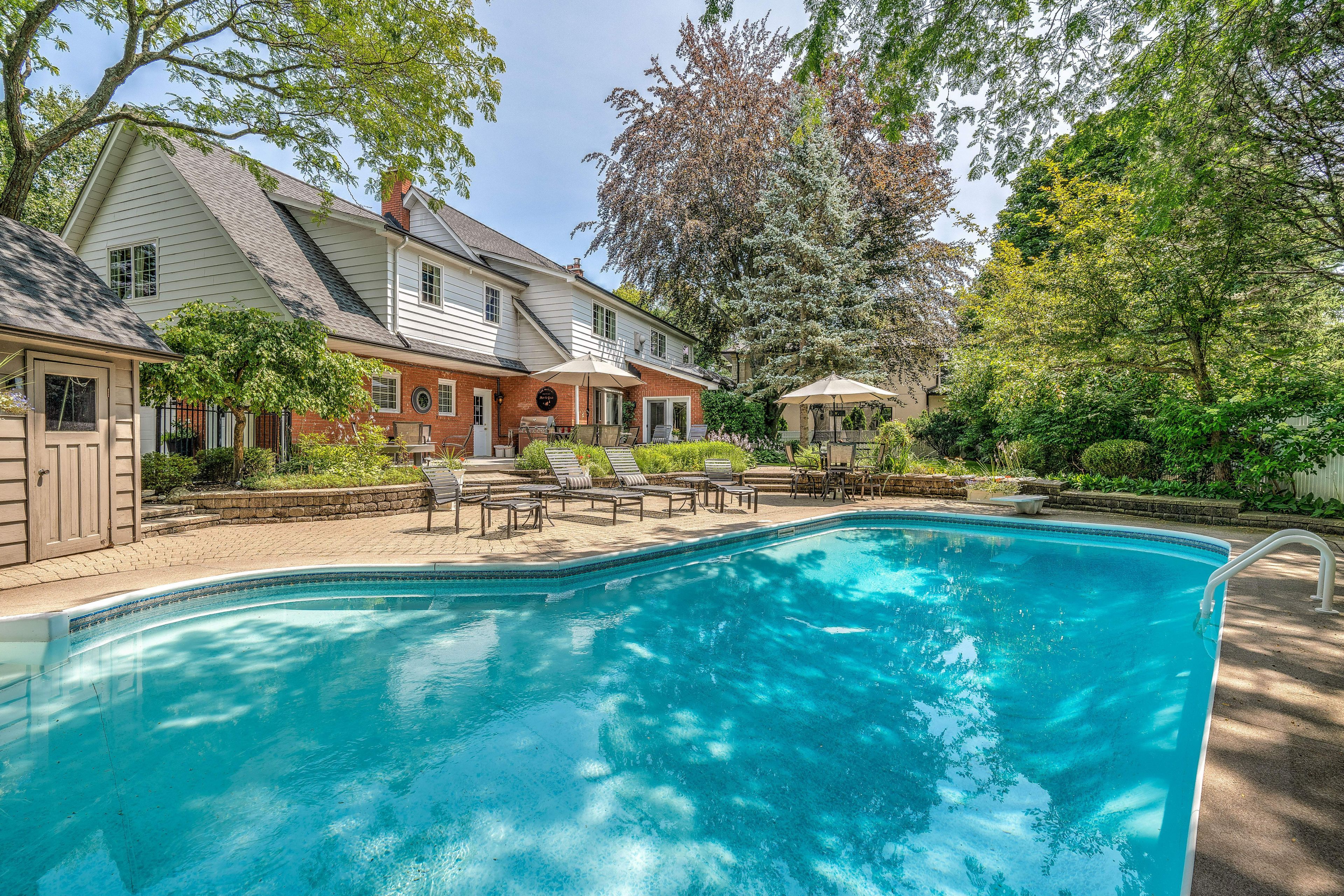 Nestled in the heart of prestigious southeast oakville, 166 maple grove drive presents a rare opportunity to own a classic cape cod residence on a private, mature 1/3 acre lot. Proudly owned by the same family since its original build, this cherished home exudes timeless character and refined charm. The property showcases an impressive 112 x 128 ft lot, surrounded by lush landscaping and enhanced by landscape lighting that creates a warm evening ambiance. The backyard oasis features a sparkling in-ground pool,multi-level deck and patio area, and dedicated pool shed perfect for summer entertaining or quiet relaxation in complete privacy. Inside, this spacious family home offers five large bedrooms and five bathrooms, including a thoughtfully finished lower level for additional living and recreation space. The expansive bedroom suite over the double car garage, complete with a separate staircase offers flexibility for an in-law, nanny, or private guest suite. With elegant principal rooms, a bright kitchen overlooking the gardens, and classic architectural details throughout, this residence combines the grace of traditional design with the comfort and functionality demanded by today's lifestyle. Perfectly situated among oakville's most distinguished addresses. Minutes from top-rated schools, the lakefront and downtown oakville, this property delivers both prestige and peaceful family living.