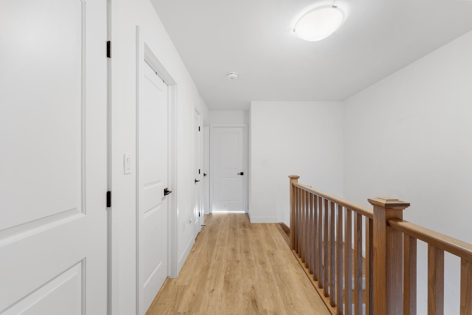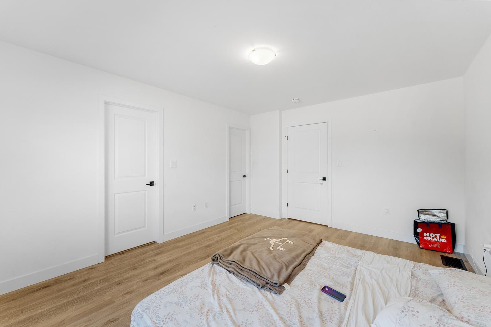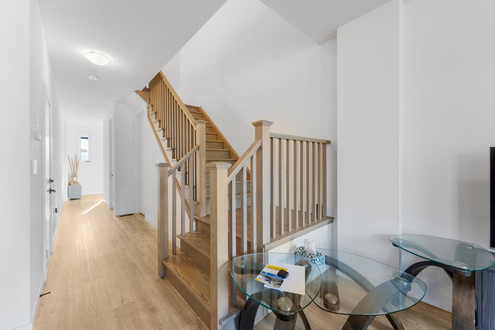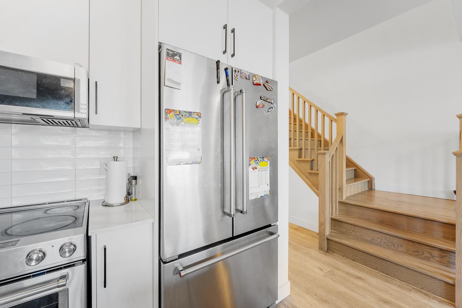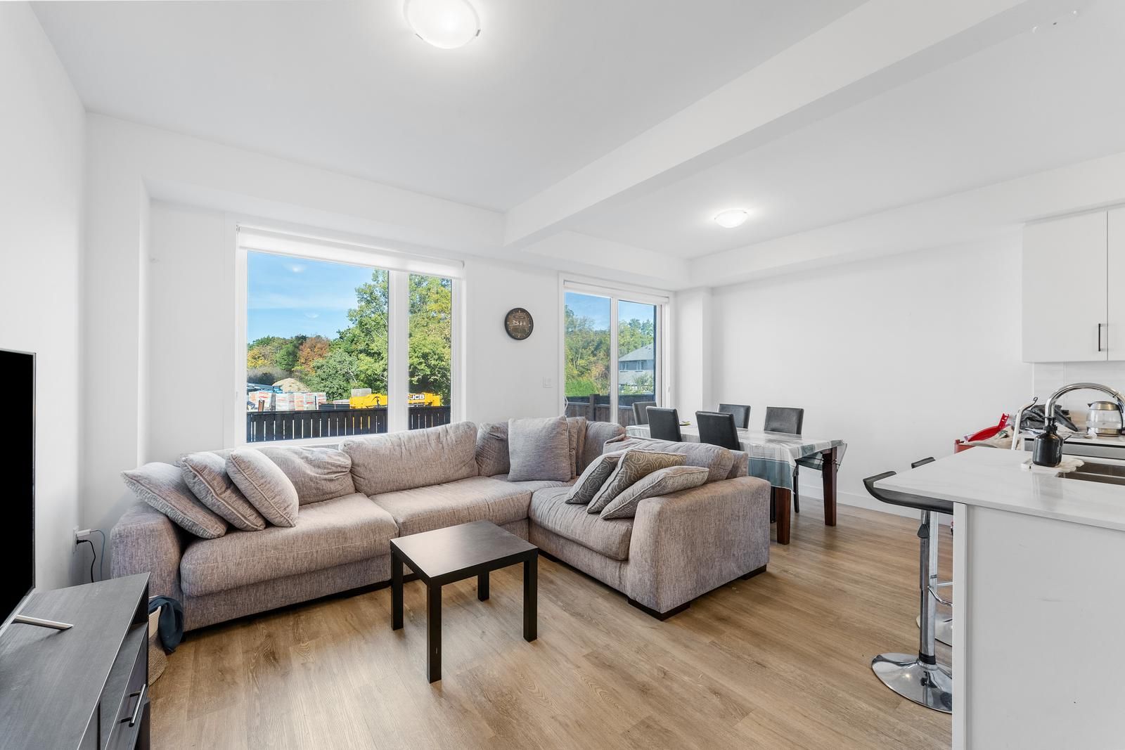 Priced to sell!!! Welcome to your dream home! This stunning 3-bedroom, 2. 5-bathroom townhouse boasts an exceptional two-storey layout designed for modern living. Step inside and be captivated by the soaring 9-foot ceilings and expansive foot doors that create an open, airy atmosphere. The luxurious vinyl hardwood flooring flows seamlessly throughout the main level, enhancing the stylish open-concept living and dining areas. The contemporary kitchen features sleek white cabinetry, stainless steel appliances, and a convenient wine fridge, all complemented by elegant quartz countertops. Retreat to the master suite, where you'll find a spacious 4-piece ensuite complete with a relaxing soaker tub, a unique shower, and a generous walk-in closet. The two additional bedrooms are equally spacious, offering ample closet space and comfort. Convenience meets practicality with upper-level laundry, making chores a breeze. The unfinished basement presents endless possibilities for customization to fit your lifestyle. Dont miss the opportunity to make this exquisite townhouse your new home!