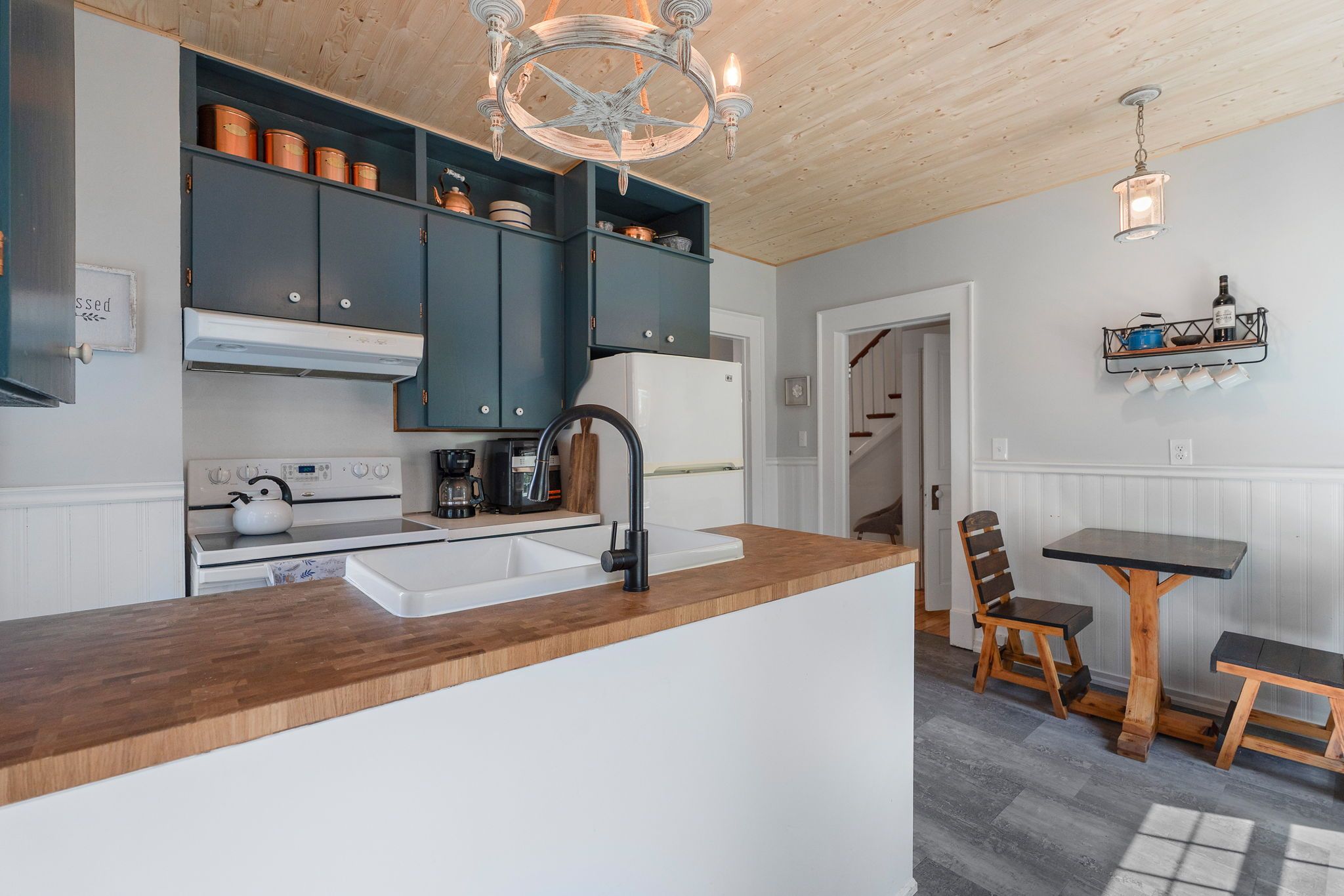 • Chef-inspired kitchen with custom island and charming details.