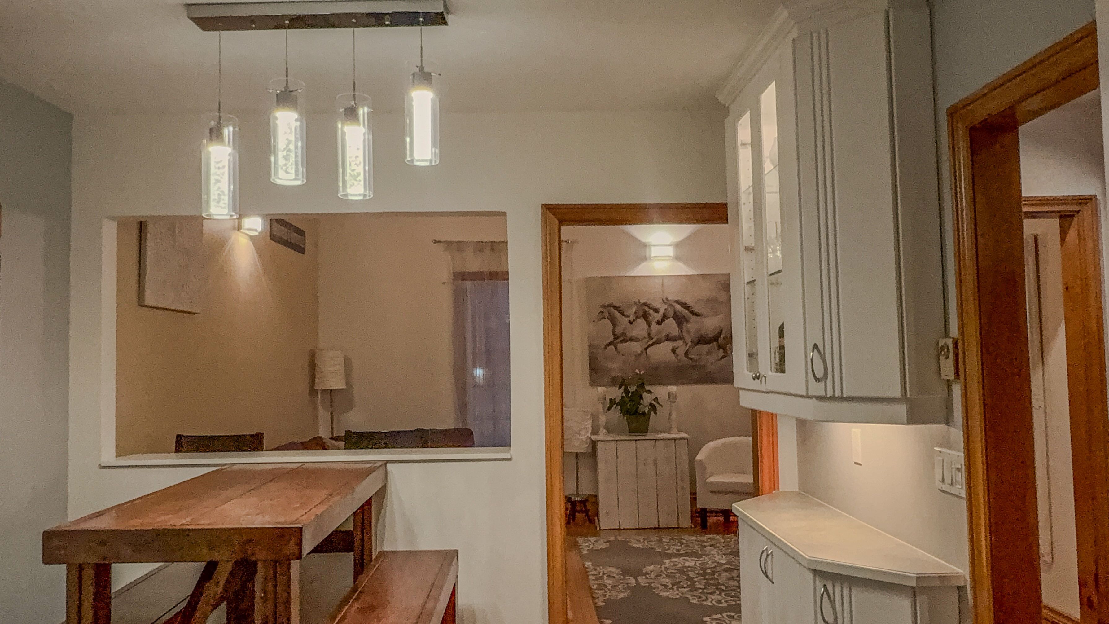 • Open concept living area features high ceilings and a kitchen perfect for entertaining.