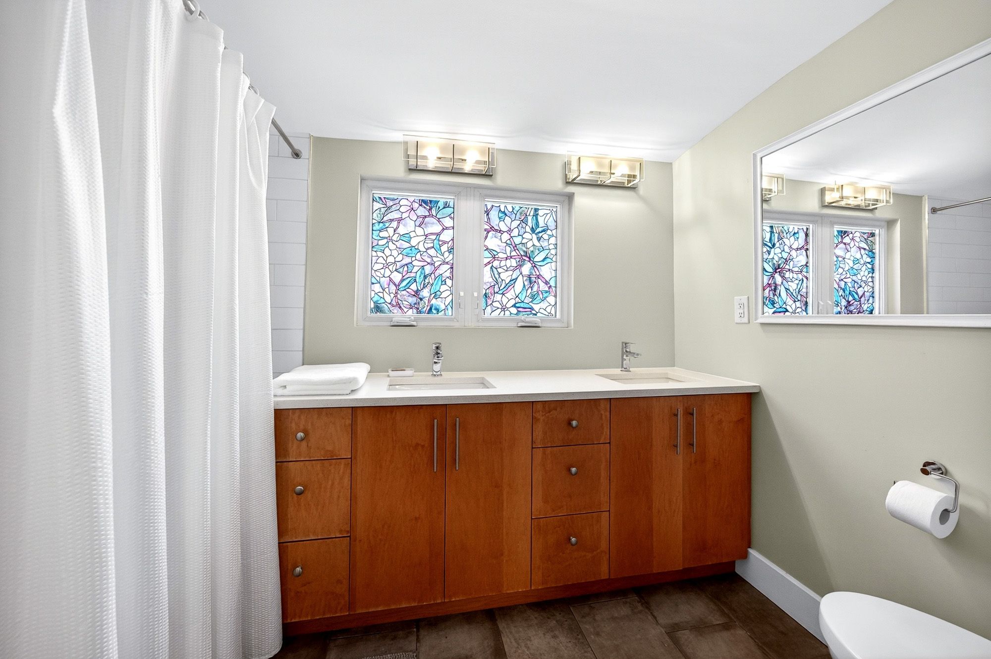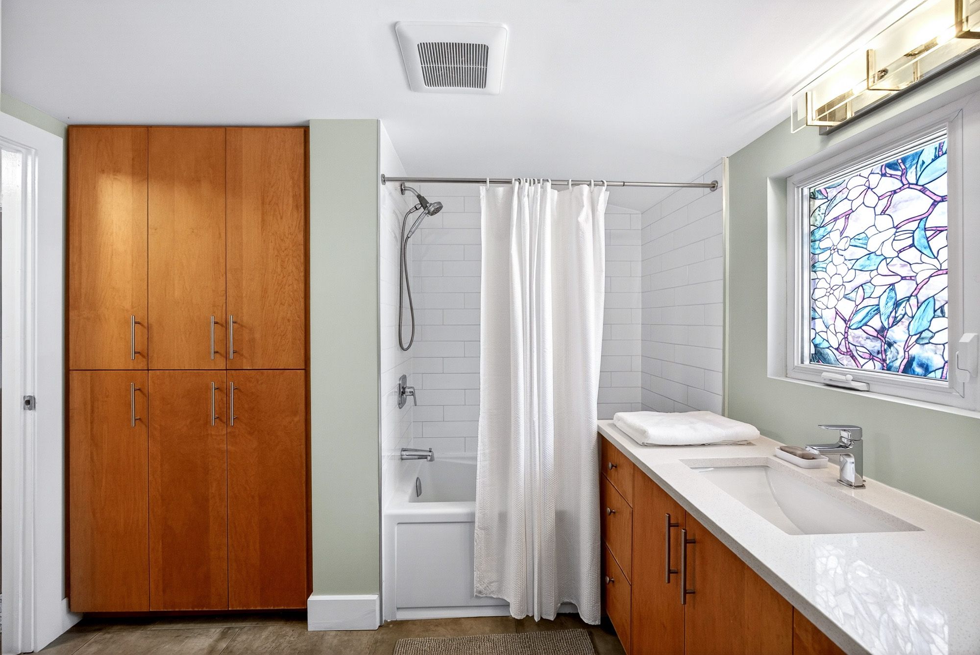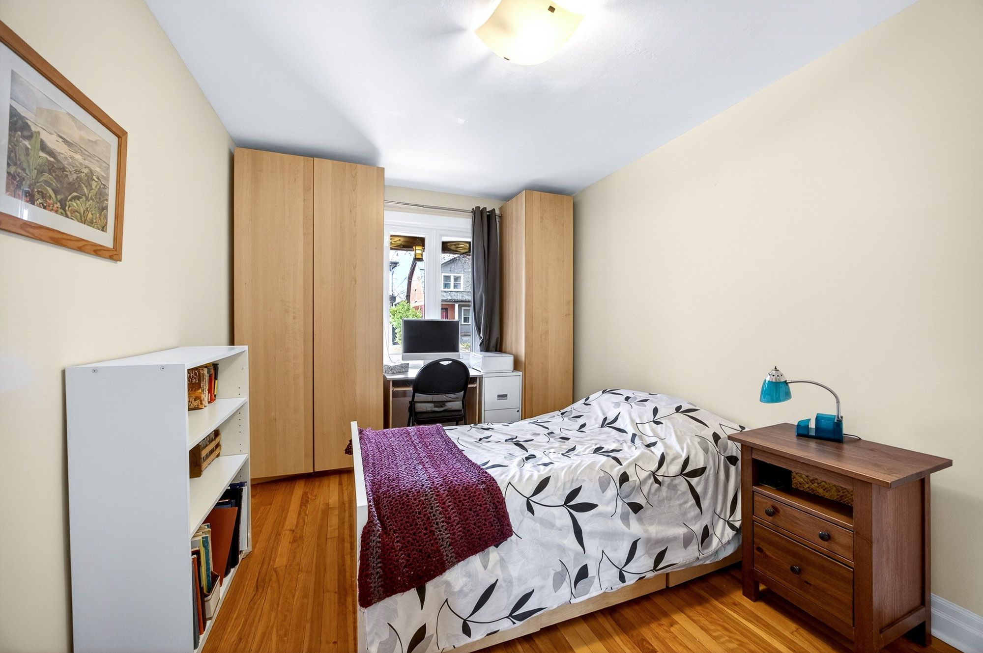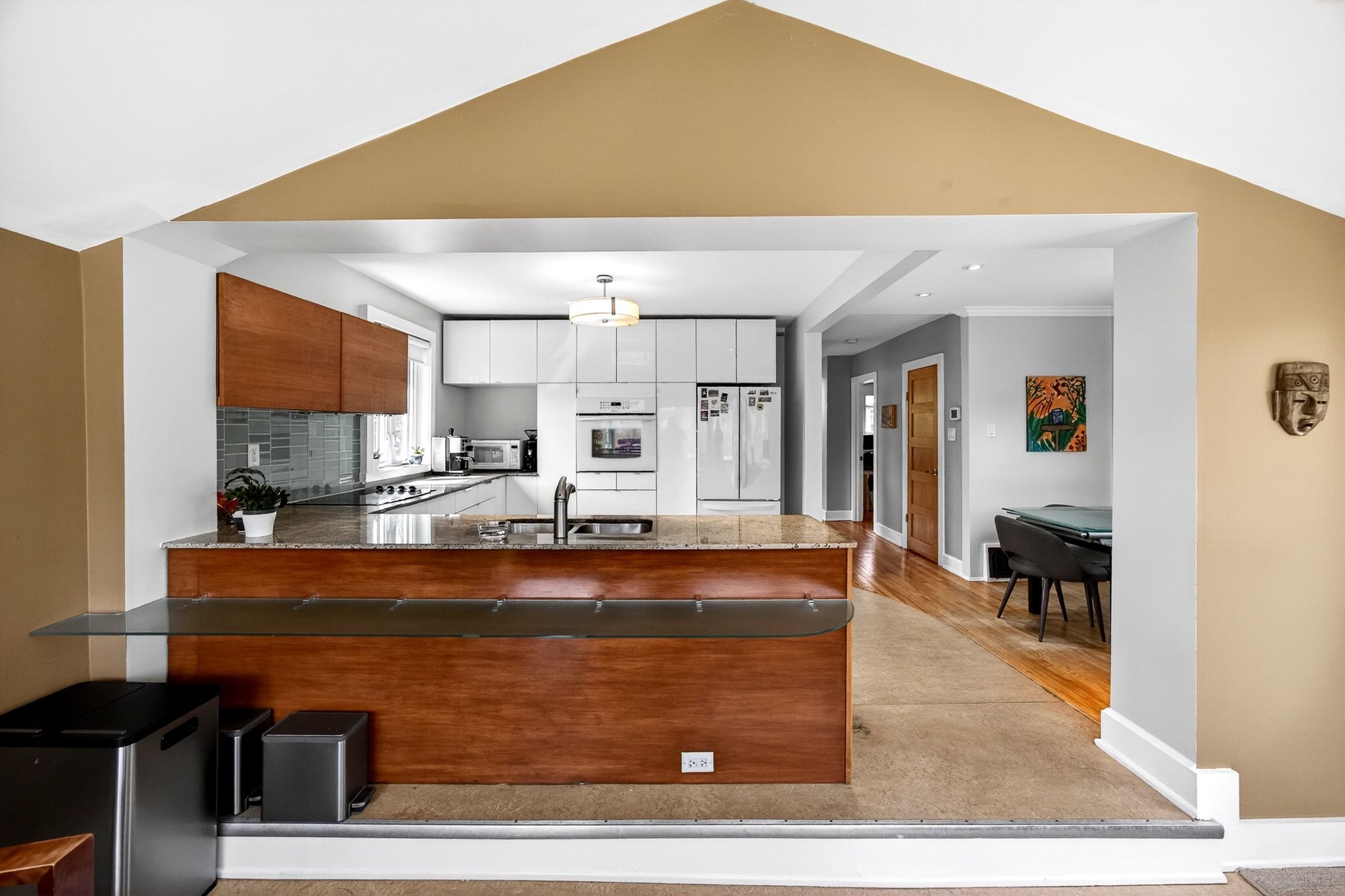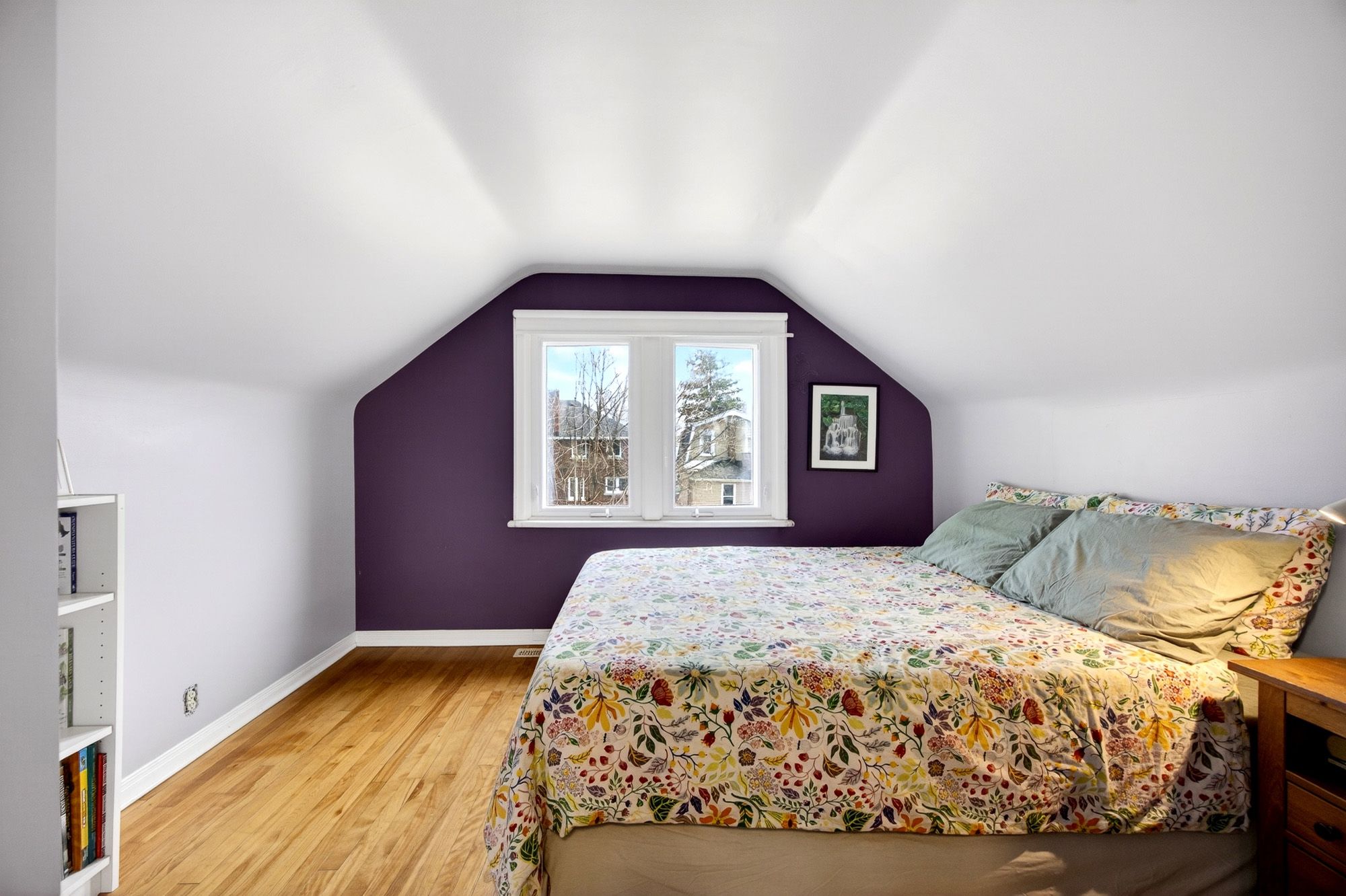 • Bright sunroom overlooks private backyard with mature gardens.
