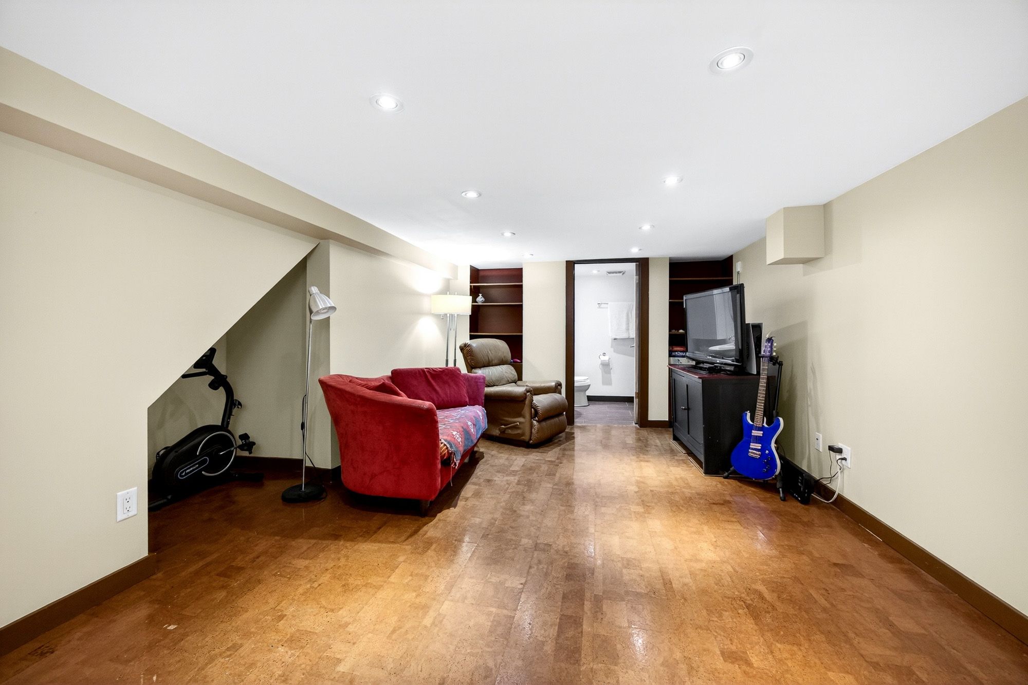 • Finished basement includes recreation room and extra bedroom.