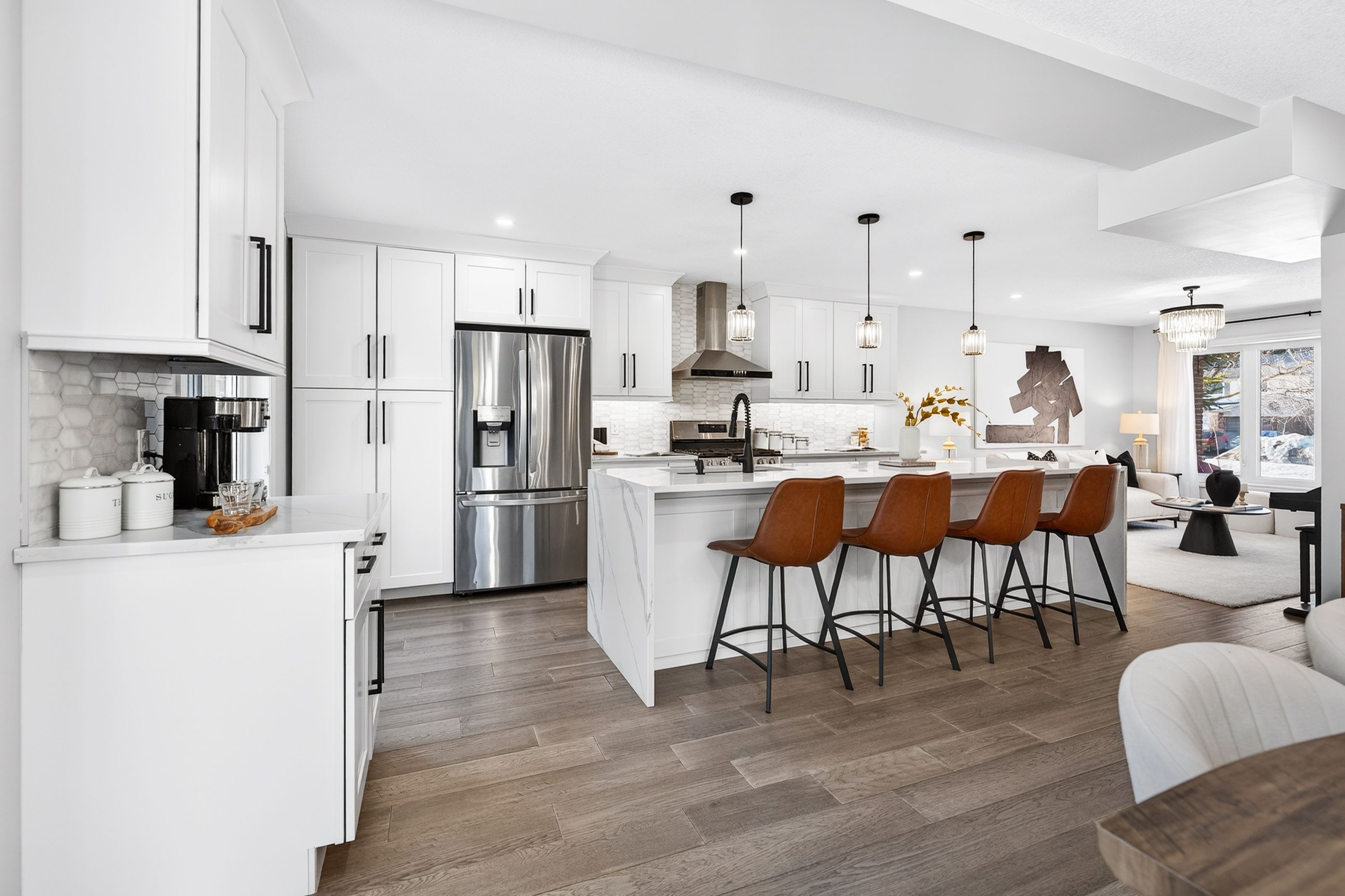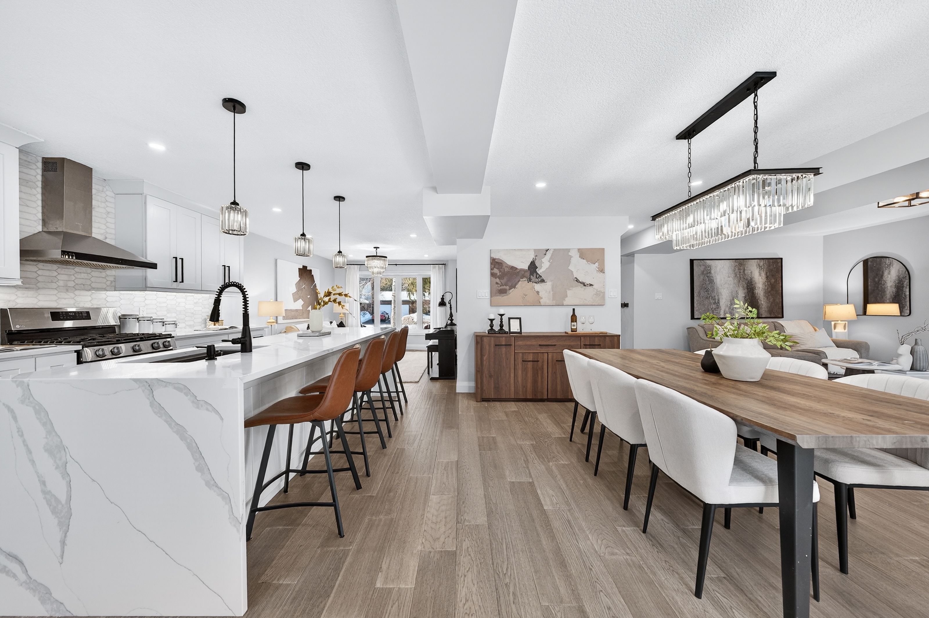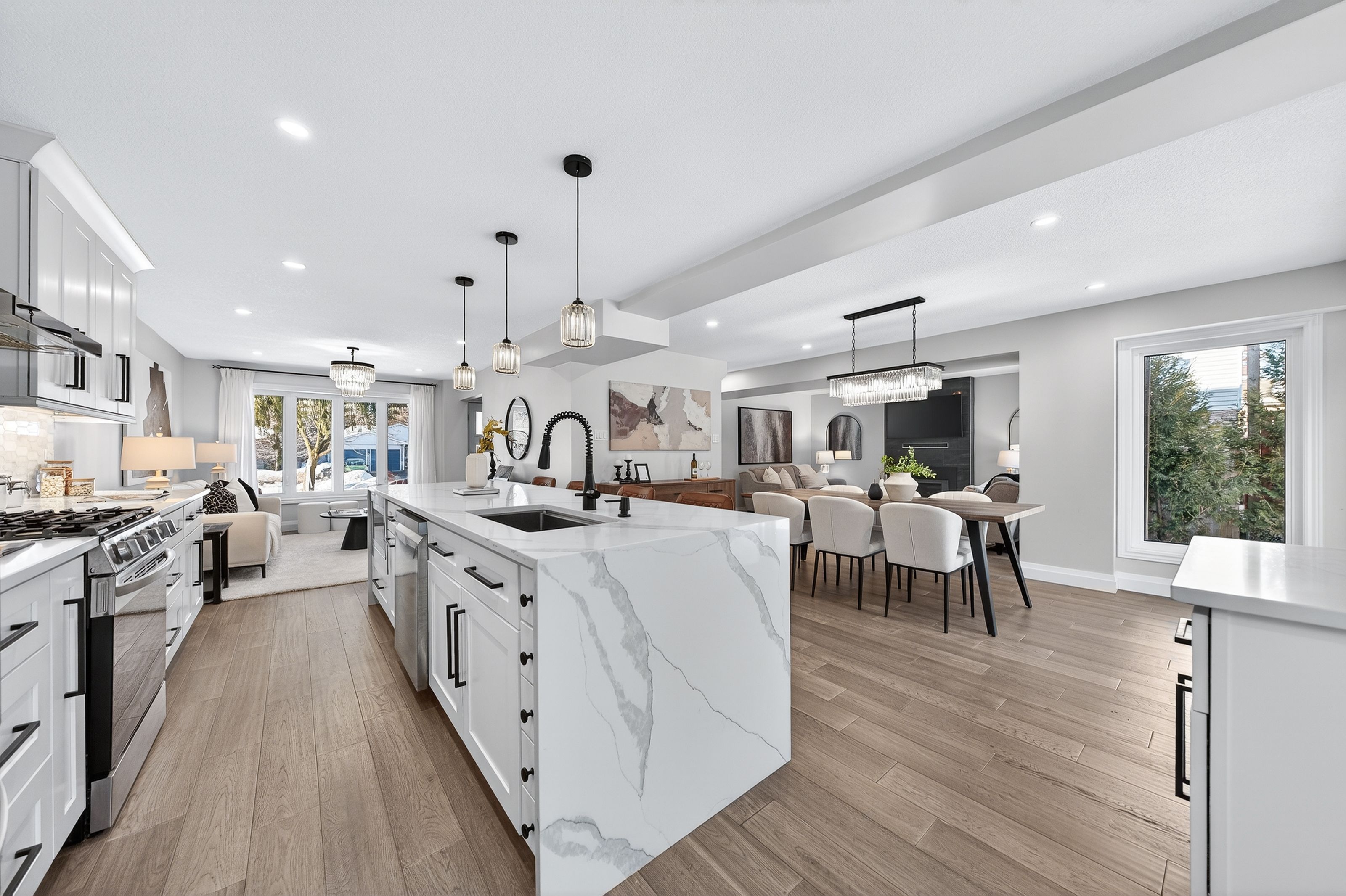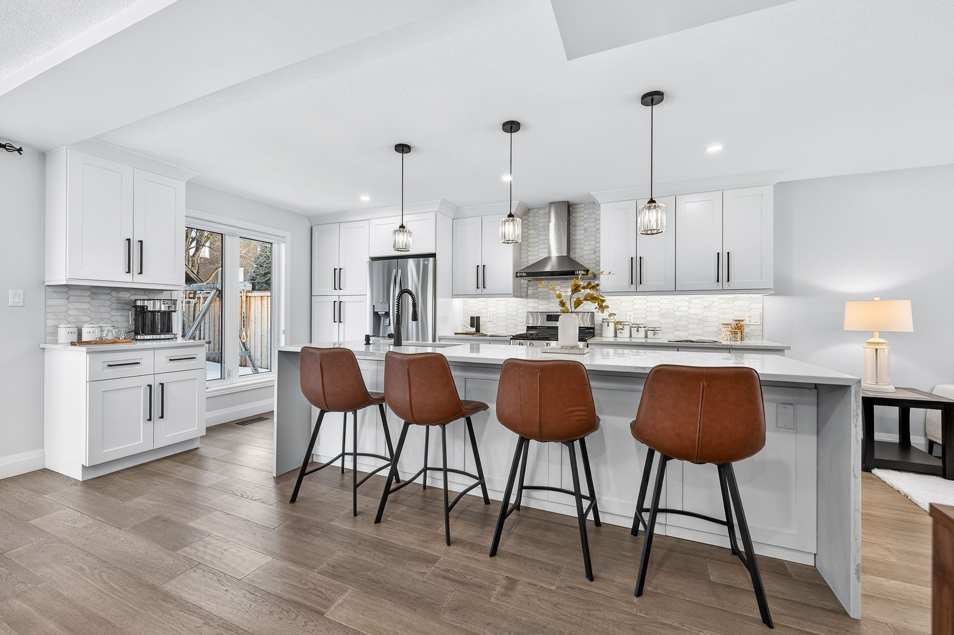 This is the westvale home you've been waiting for. Stunning & fully transformed through $300,000+ in professional renovations (2022-engineered & permitted) & thoughtfully enhanced since, 166 westvale drive offers 3,300+ sf of refined, move-in ready living space in one of waterloo's most established & family-oriented neighbourhoods. Designed for modern family living, the bright open-concept main level balances sophistication & everyday function. A grand 2-storey foyer creates a strong first impression, while a formal living rm overlooking the mature streetscape adds elegant front-of-home presence. The heart of the home is a stunning chef's kitchen featuring a dramatic 10' quartz waterfall island, dedicated coffee bar, marble backsplash, under-cabinet lighting & premium appliances, seamlessly connected to the integrated dining area & great rm with gas fireplace & dual backyard access. A spacious mudrm/laundry with garage/side-yard access & a 2-pc bath complete the main level. Upstairs offers 4 generous bedrms, including a spacious primary retreat with walk-in closet & spa-like 4-pc ensuite with dual sinks & tiled glass shower. A 4-pc updated main bath serves the additional bedrms, while a bonus upper-level family rm with vaulted ceilings adds flexibility for a 5th bedrm, office, gym, or playroom/teen lounge. The finished basement extends the home's versatility with a lrg rec rm, kitchenette, office/den & full bath-ideal for multi-gen living/long-term flexibility. Beyond the cosmetic transformation, major systems were updated, including electrical (esa certified), plumbing, ductwork, a/c, windows & doors. Set on a mature, tree-lined street with timeless curb appeal, covered front porch & private backyard with deck, this home blends executive presence & established neighbourhood charm. Prime location: walk to parks & schools, mins to shopping at the beechwood centre, the boardwalk shops & amenities, costco, universities, uptown waterloo, & westmount golf & country club.