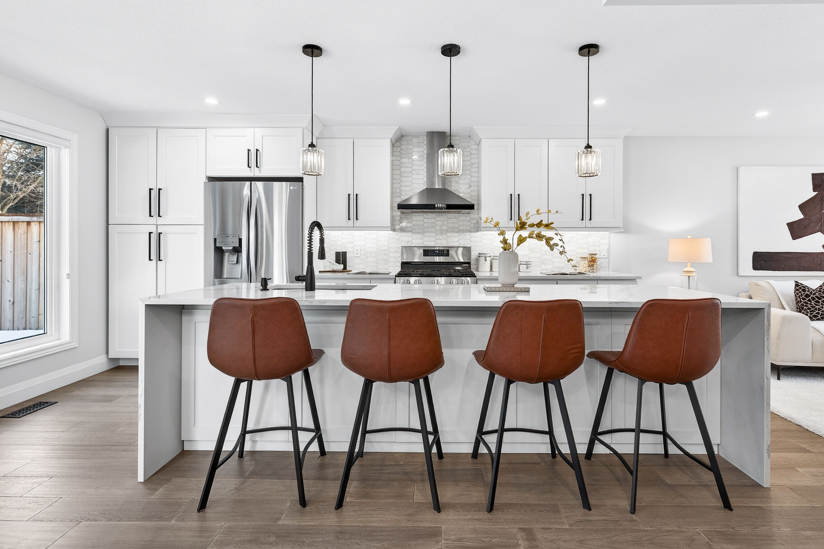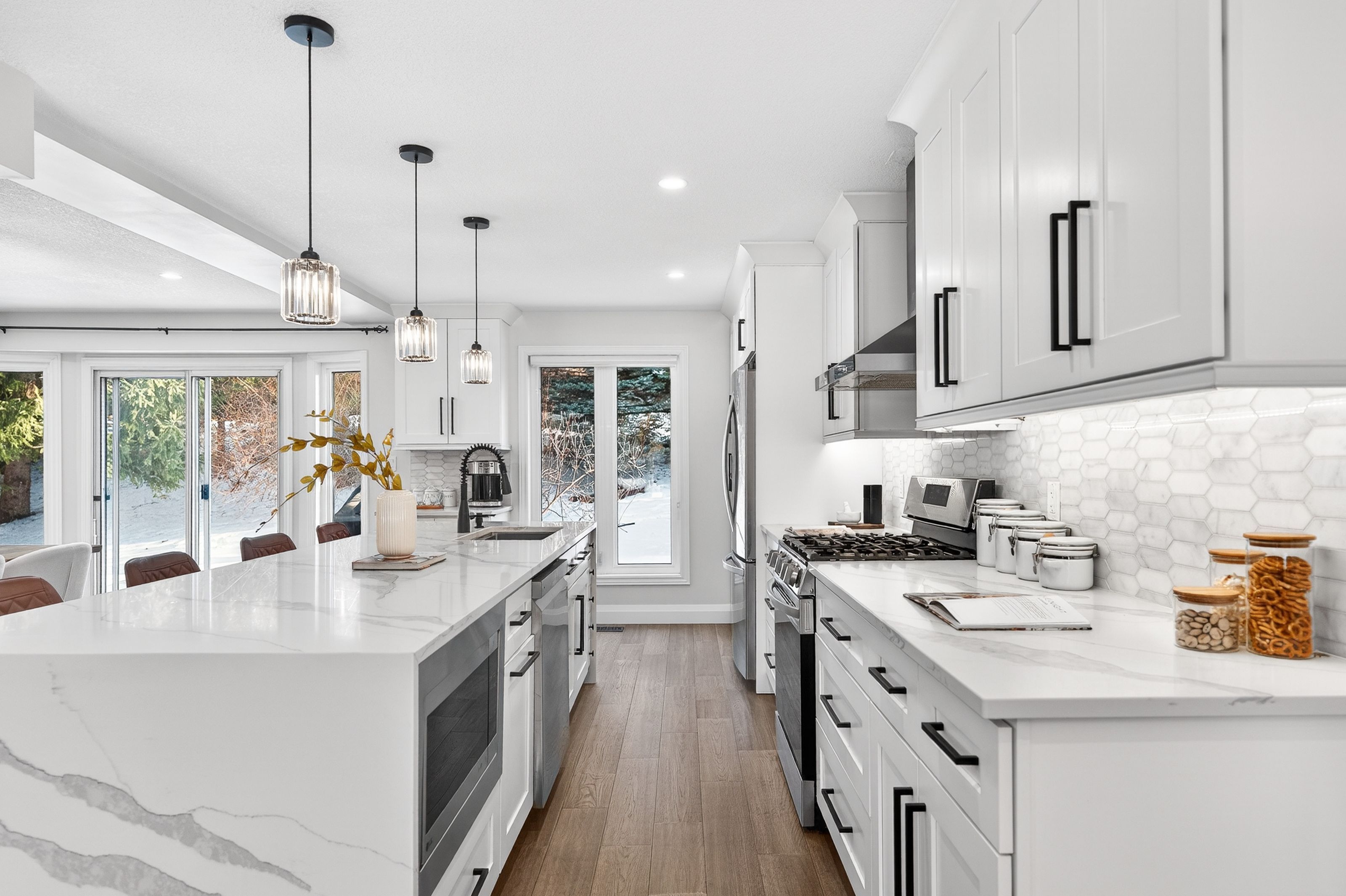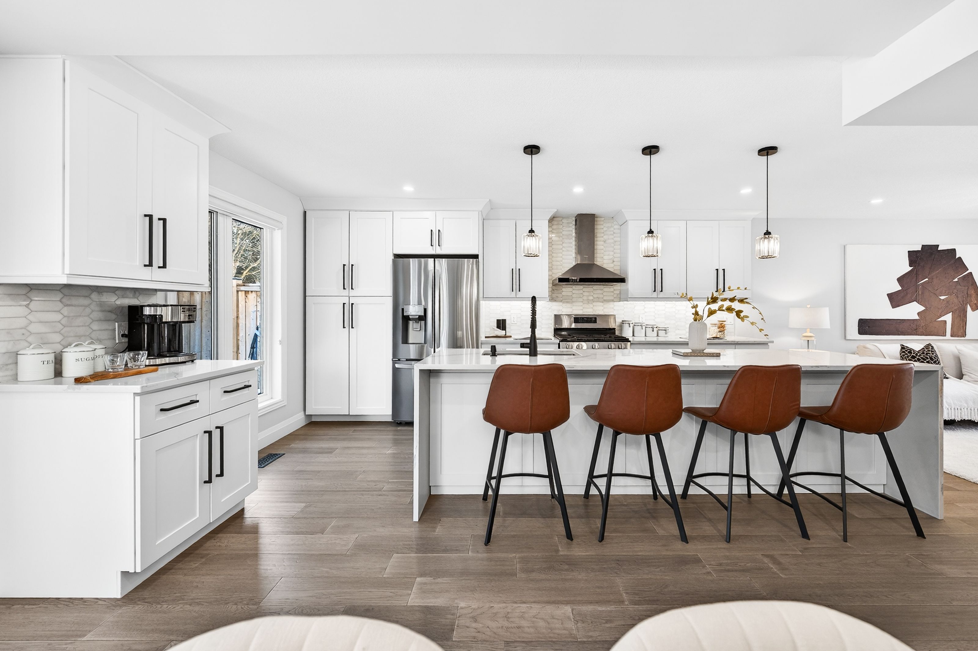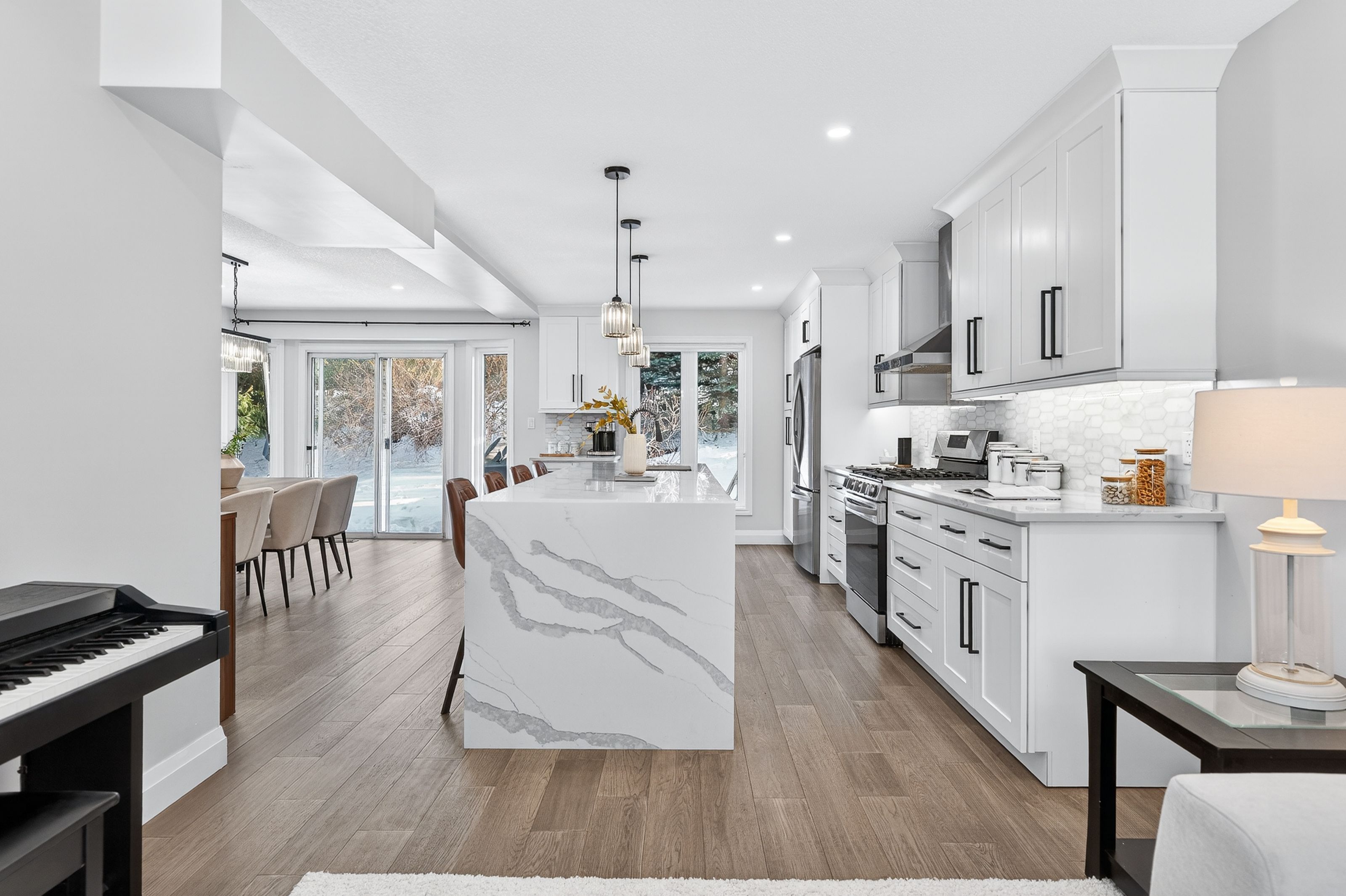This is the westvale home you've been waiting for. Stunning & fully transformed through $300,000+ in professional renovations (2022-engineered & permitted) & thoughtfully enhanced since, 166 westvale drive offers 3,300+ sf of refined, move-in ready living space in one of waterloo's most established & family-oriented neighbourhoods. Designed for modern family living, the bright open-concept main level balances sophistication & everyday function. A grand 2-storey foyer creates a strong first impression, while a formal living rm overlooking the mature streetscape adds elegant front-of-home presence. The heart of the home is a stunning chef's kitchen featuring a dramatic 10' quartz waterfall island, dedicated coffee bar, marble backsplash, under-cabinet lighting & premium appliances, seamlessly connected to the integrated dining area & great rm with gas fireplace & dual backyard access. A spacious mudrm/laundry with garage/side-yard access & a 2-pc bath complete the main level. Upstairs offers 4 generous bedrms, including a spacious primary retreat with walk-in closet & spa-like 4-pc ensuite with dual sinks & tiled glass shower. A 4-pc updated main bath serves the additional bedrms, while a bonus upper-level family rm with vaulted ceilings adds flexibility for a 5th bedrm, office, gym, or playroom/teen lounge. The finished basement extends the home's versatility with a lrg rec rm, kitchenette, office/den & full bath-ideal for multi-gen living/long-term flexibility. Beyond the cosmetic transformation, major systems were updated, including electrical (esa certified), plumbing, ductwork, a/c, windows & doors. Set on a mature, tree-lined street with timeless curb appeal, covered front porch & private backyard with deck, this home blends executive presence & established neighbourhood charm. Prime location: walk to parks & schools, mins to shopping at the beechwood centre, the boardwalk shops & amenities, costco, universities, uptown waterloo, & westmount golf & country club.