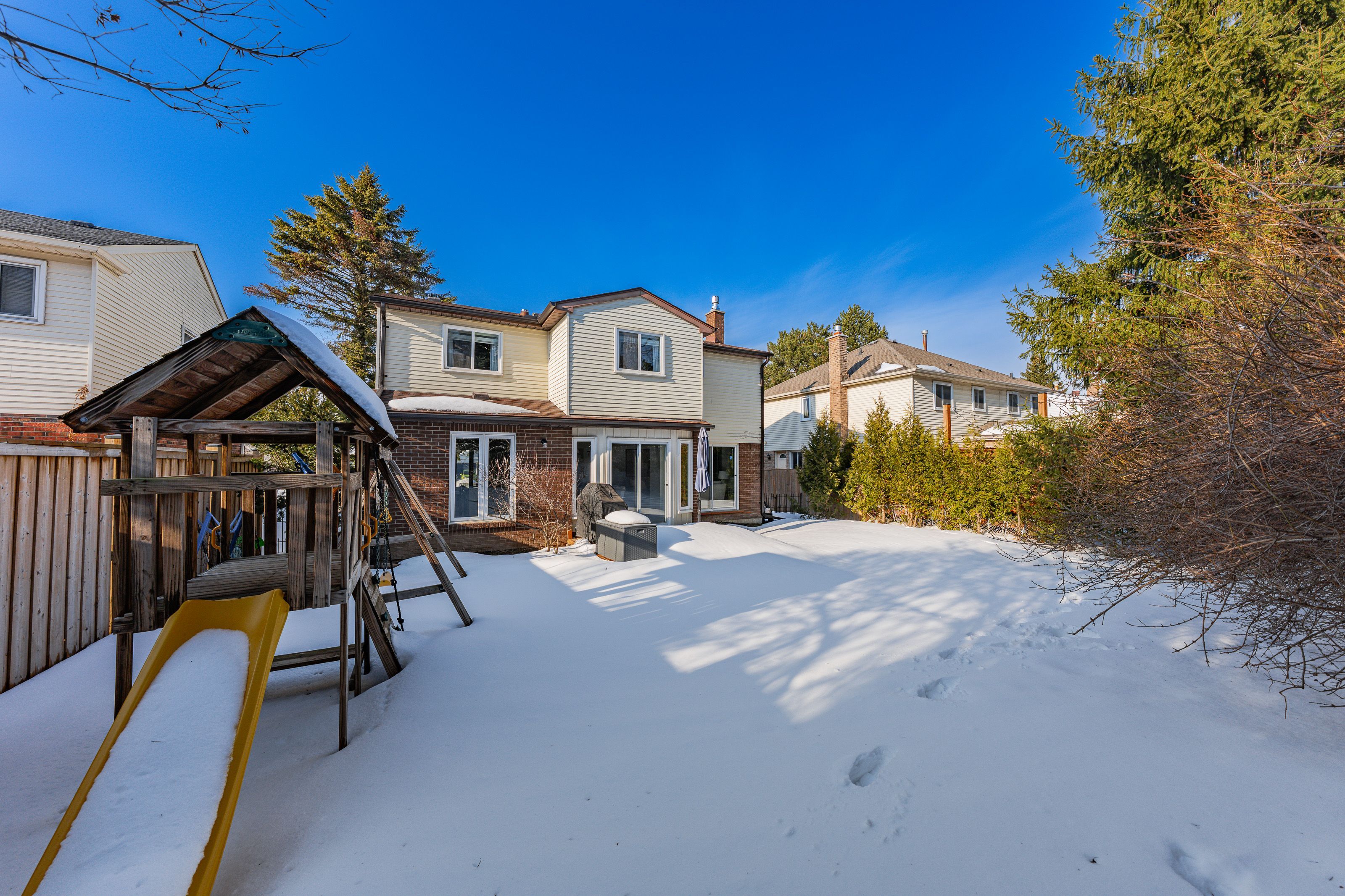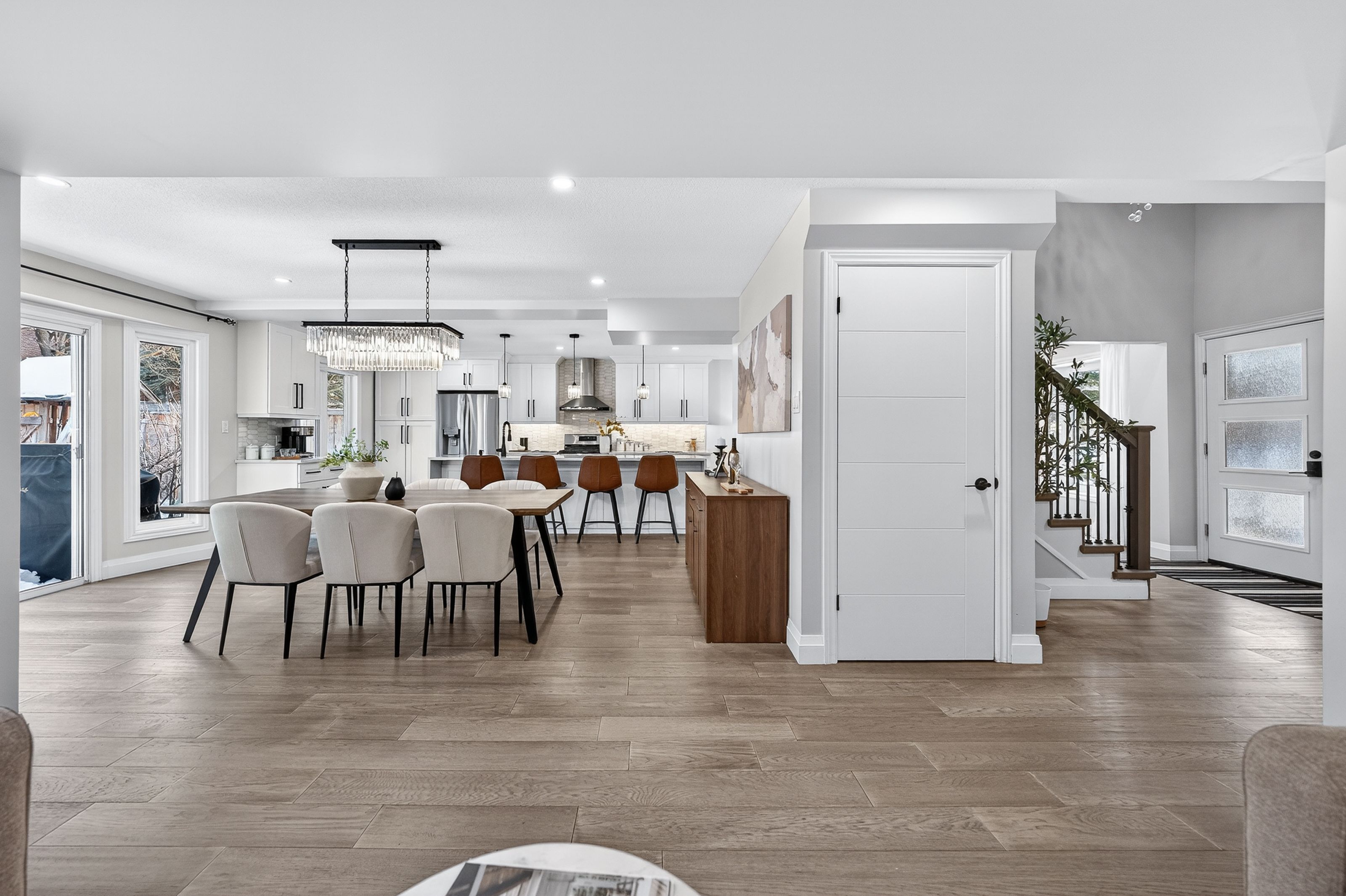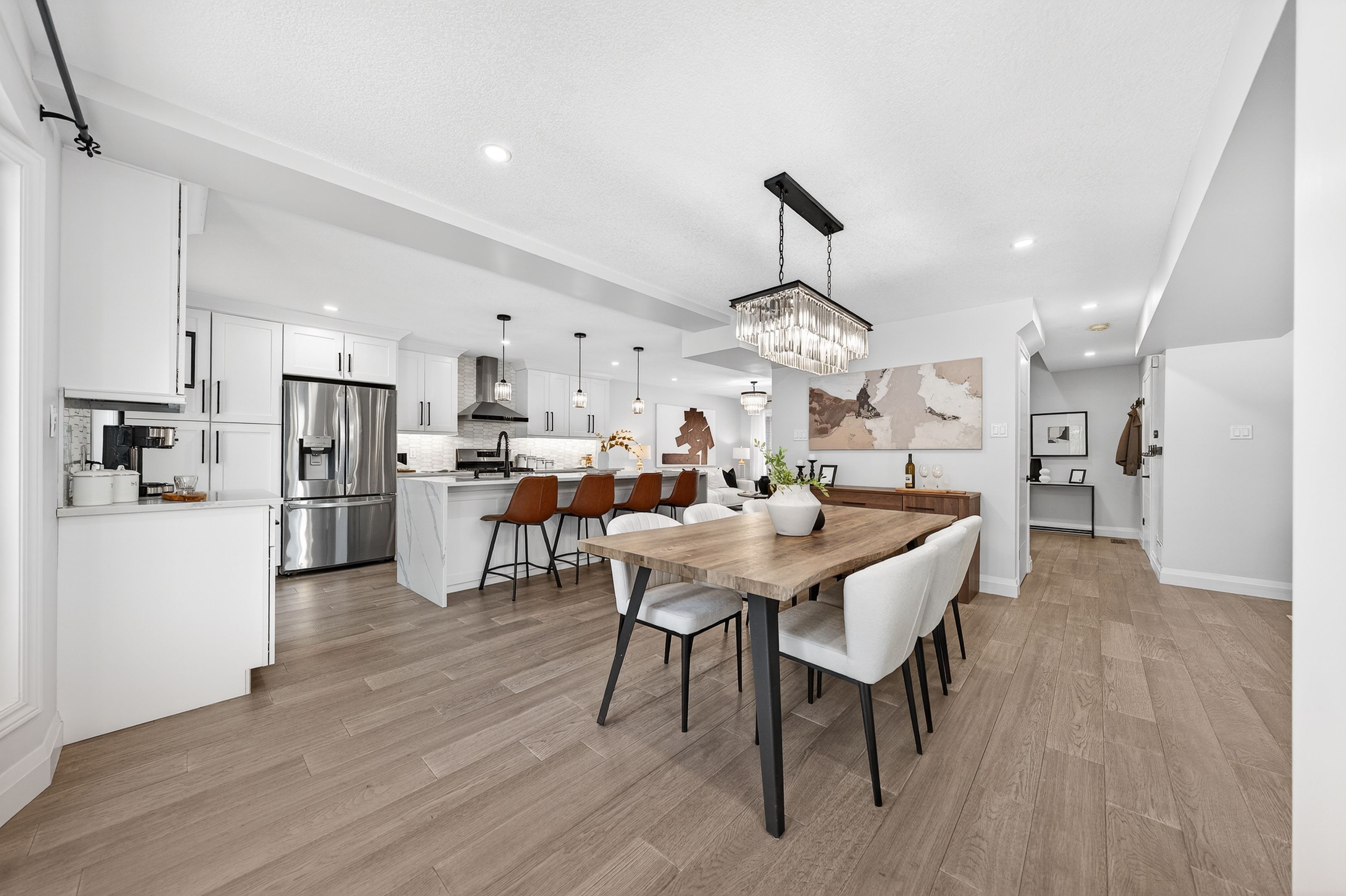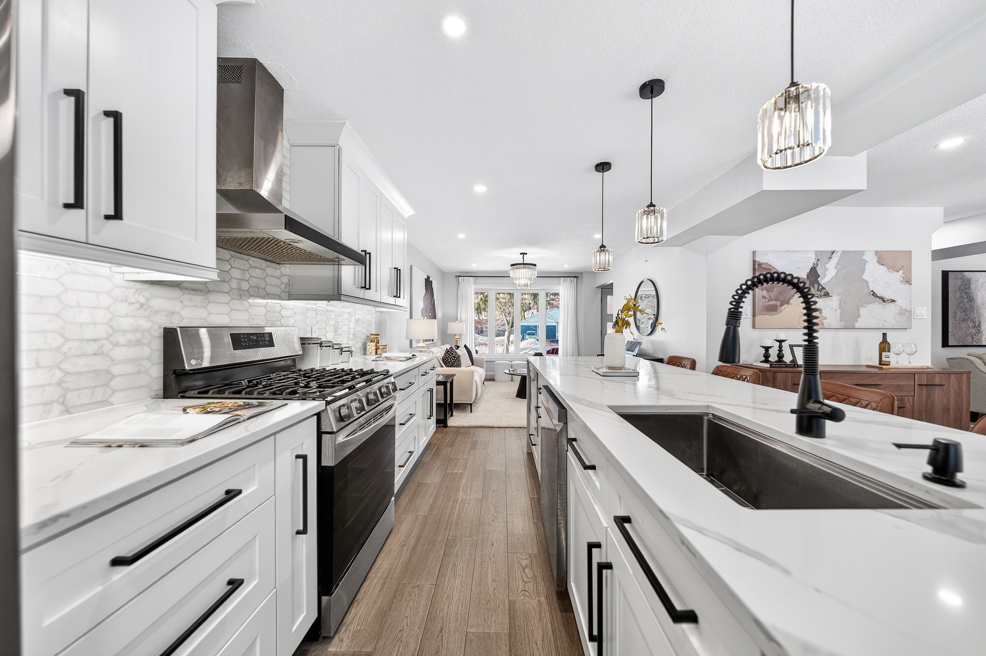 This is the westvale home you've been waiting for. Stunning & fully transformed through $300,000+ in professional renovations (2022-engineered & permitted) & thoughtfully enhanced since, 166 westvale drive offers 3,300+ sf of refined, move-in ready living space in one of waterloo's most established & family-oriented neighbourhoods. Designed for modern family living, the bright open-concept main level balances sophistication & everyday function. A grand 2-storey foyer creates a strong first impression, while a formal living rm overlooking the mature streetscape adds elegant front-of-home presence. The heart of the home is a stunning chef's kitchen featuring a dramatic 10' quartz waterfall island, dedicated coffee bar, marble backsplash, under-cabinet lighting & premium appliances, seamlessly connected to the integrated dining area & great rm with gas fireplace & dual backyard access. A spacious mudrm/laundry with garage/side-yard access & a 2-pc bath complete the main level. Upstairs offers 4 generous bedrms, including a spacious primary retreat with walk-in closet & spa-like 4-pc ensuite with dual sinks & tiled glass shower. A 4-pc updated main bath serves the additional bedrms, while a bonus upper-level family rm with vaulted ceilings adds flexibility for a 5th bedrm, office, gym, or playroom/teen lounge. The finished basement extends the home's versatility with a lrg rec rm, kitchenette, office/den & full bath-ideal for multi-gen living/long-term flexibility. Beyond the cosmetic transformation, major systems were updated, including electrical (esa certified), plumbing, ductwork, a/c, windows & doors. Set on a mature, tree-lined street with timeless curb appeal, covered front porch & private backyard with deck, this home blends executive presence & established neighbourhood charm. Prime location: walk to parks & schools, mins to shopping at the beechwood centre, the boardwalk shops & amenities, costco, universities, uptown waterloo, & westmount golf & country club.
