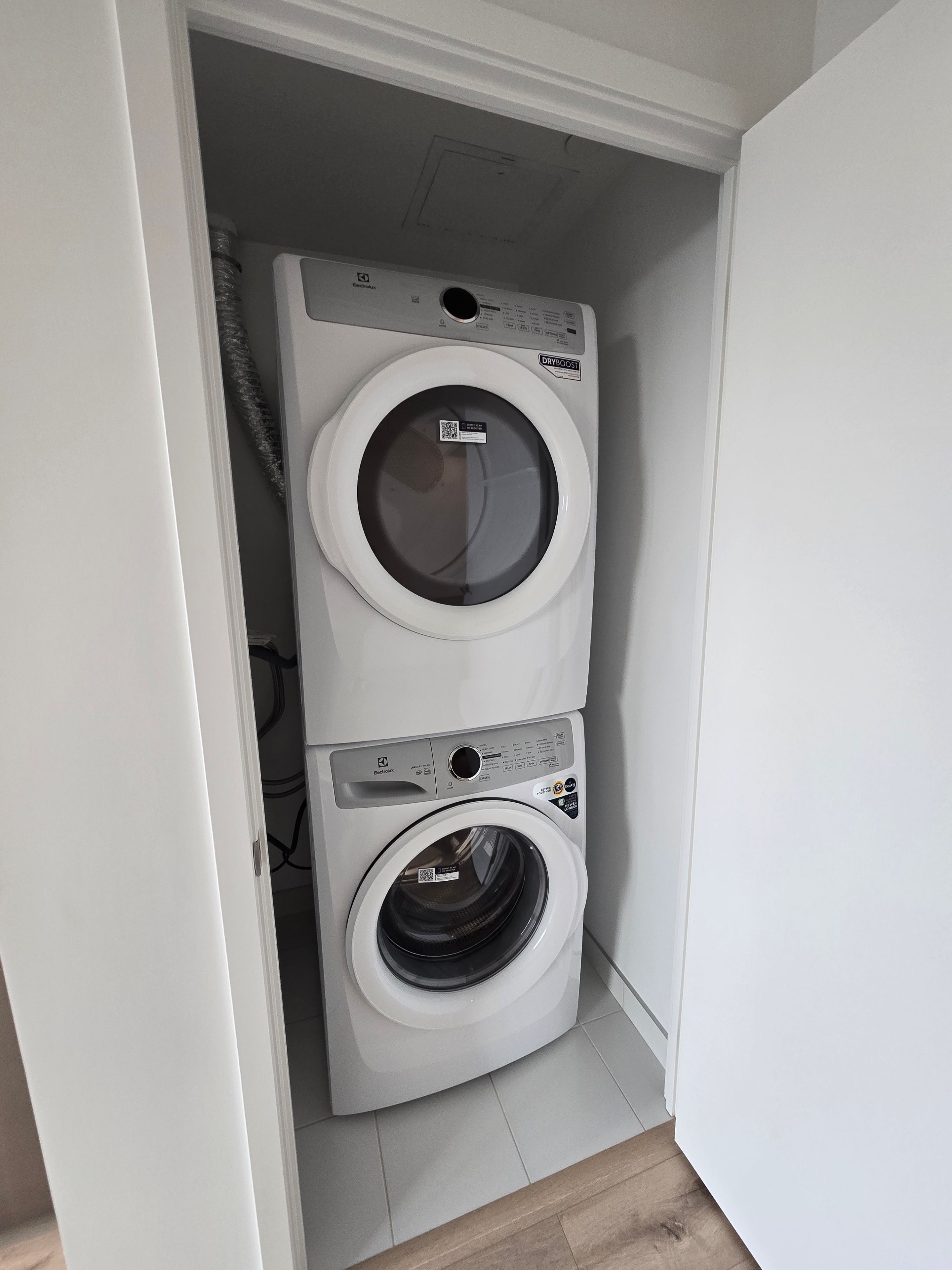 • In-suite laundry and built-in media wall outlets for convenience.