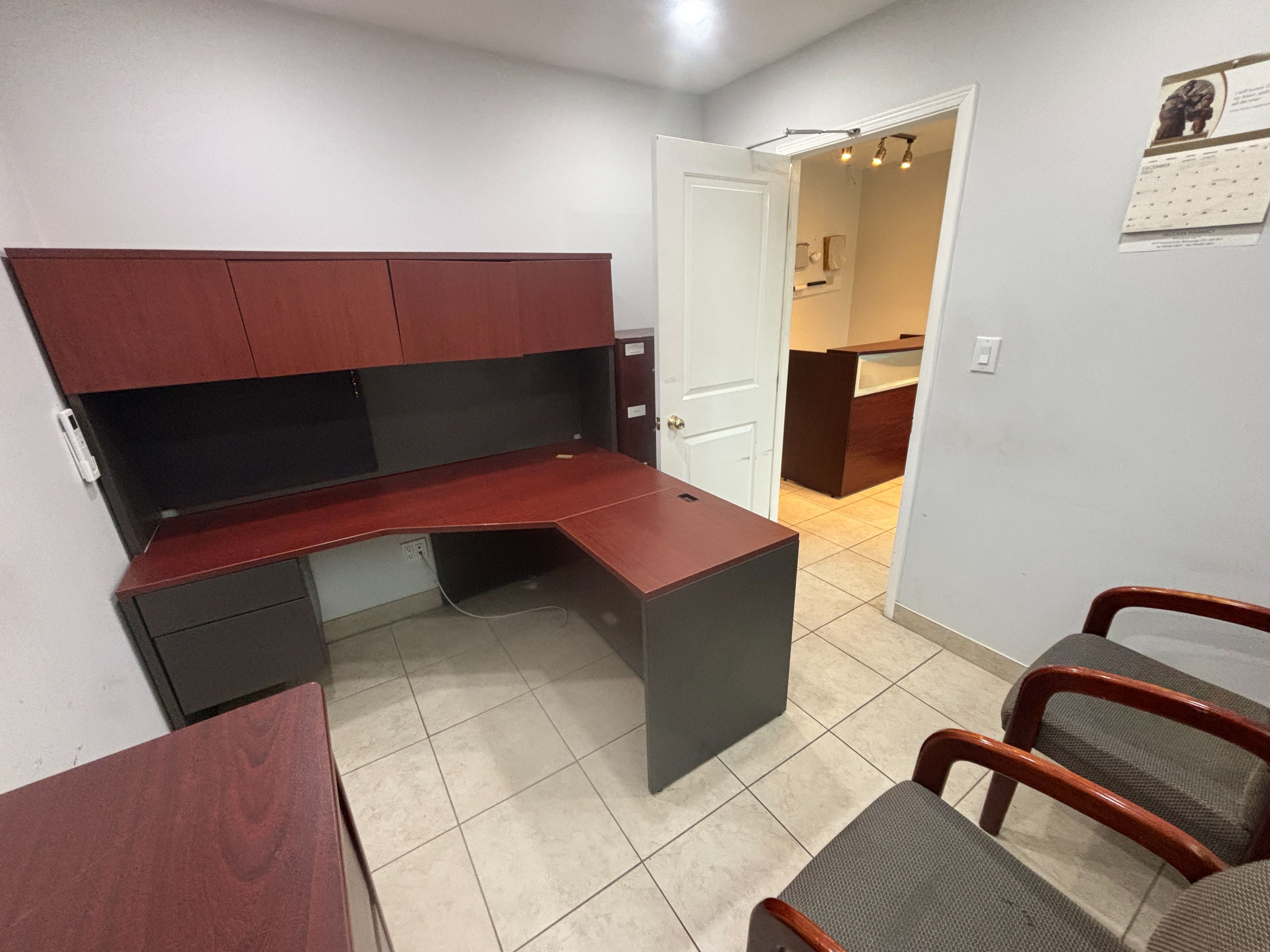 Three small office rooms together with front desk area, kitchen area, and one bath for rent, the size room1: 2. 7x2. 7m with a window, room2, 2. 7x2. 8m, height 2. 5m, room3: 2. 2x2. 7, height 2. 4m, it is perfect for self-employed professional and start-up business like consulting, accouting, insurance and real estate specialist. Furnature included. Move-in ready. It will be fully painted before occupancy. Tenant pays utility and tenant insurance. Lease term is flexible.