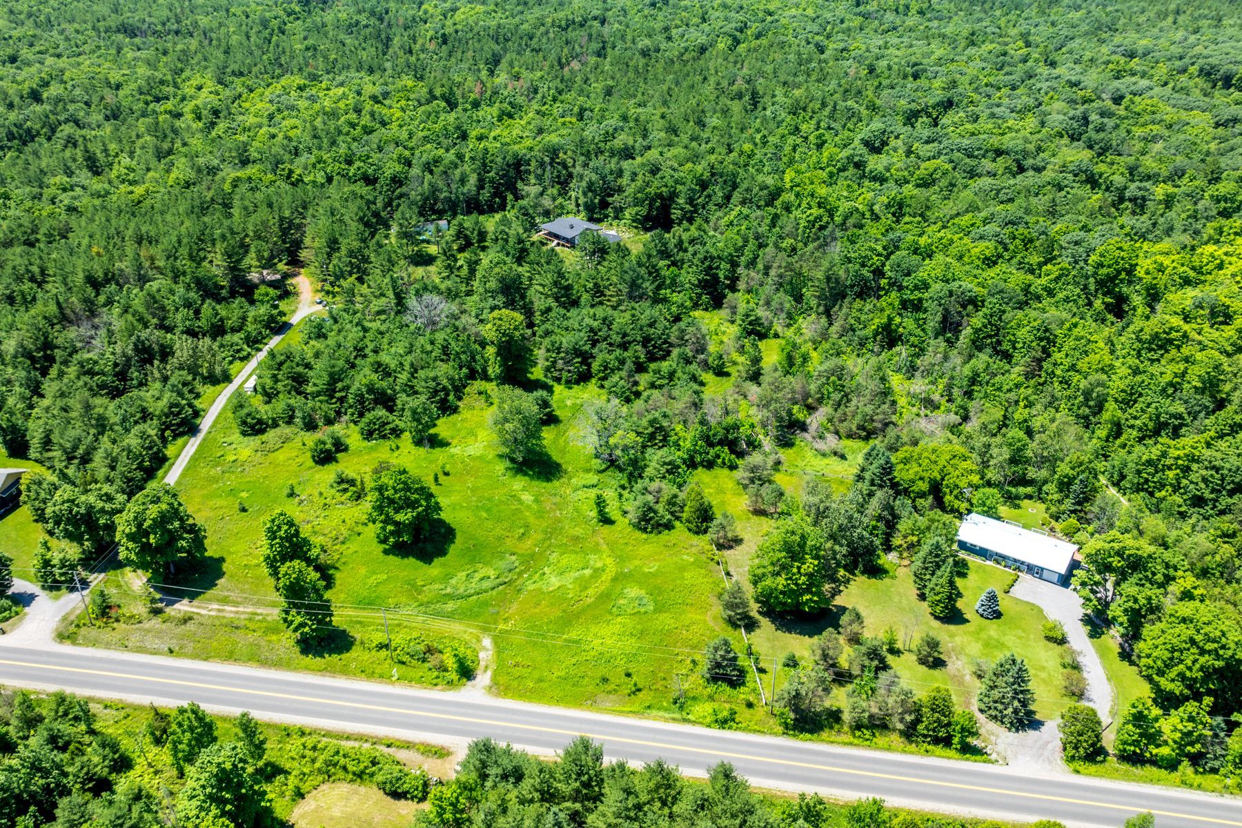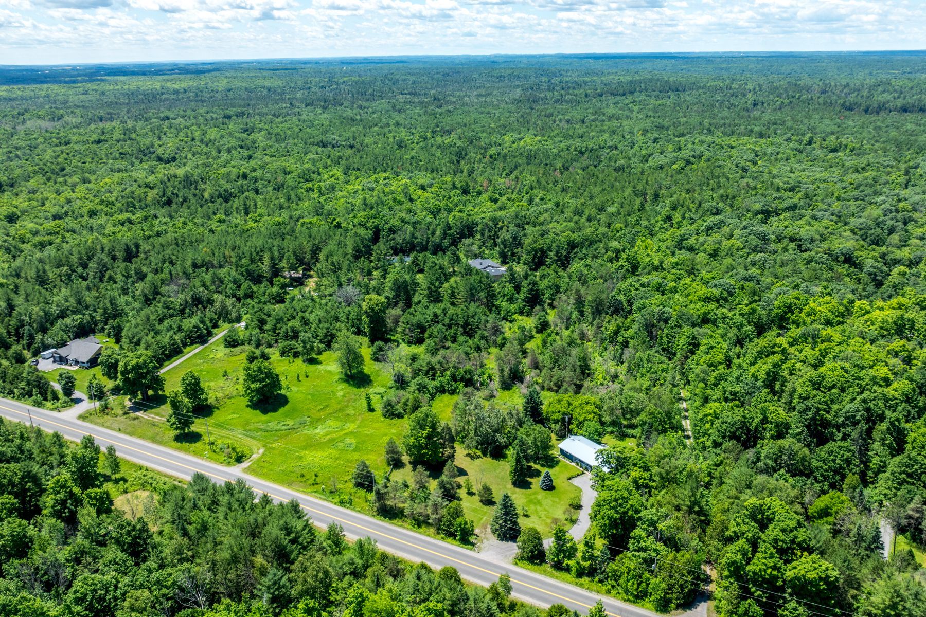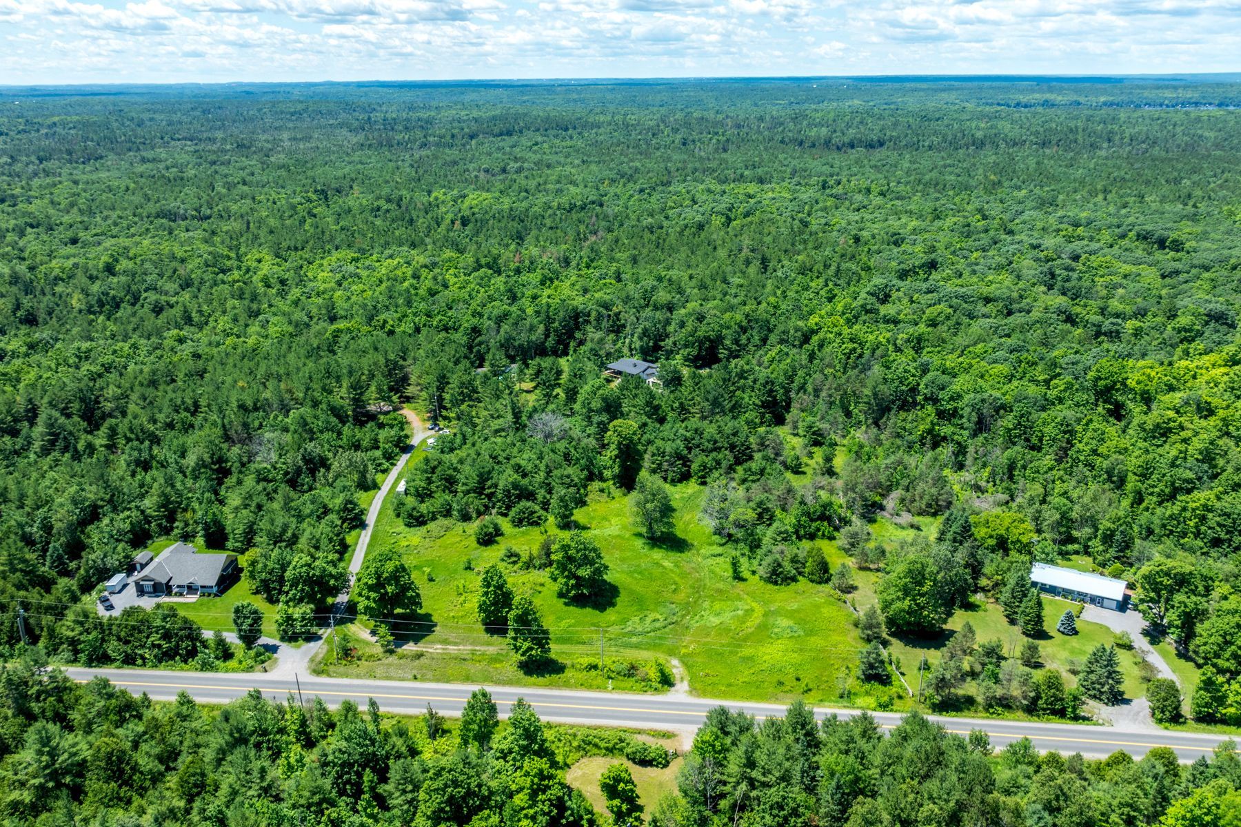 This is a rare opportunity for a nature lover! Please note that the home is not finished however the floor plan is attached to the listing. It allows for a spacious entertaining room which would be comprised of kitchen, dining area and living room complete with a walkout to the deck which surrounds the home. Two large bedrooms share a spacious bathroom and both rooms have large windows overlooking the property. There is a space for a second 4 piece bathroom for guests, a laundry room and a utility room. An oversized double garage with one rear access also provides ample space for your needs. Basement has 9 foot ceilings and is ready for the discerning buyer to finish to his own taste. Board and batten siding completes the exterior finish. The wrap around deck offers multiple views and access to the property. The entire home is spacious and ready for a new buyer to finish and make his own! Located to the south of the house is a huge steel garage - store your toys or create your own space. The property consists of two separate lots which abut each other on the west side. There are many trails to explore and wildlife to observe on this approximately 257 acre property. This location is excellent as you have your own private forest and yet you are 15 minutes to the town of norwood which offers all the necessities-schools, bank, grocery store, diner, drugstore, library, rec centre, arena and more.