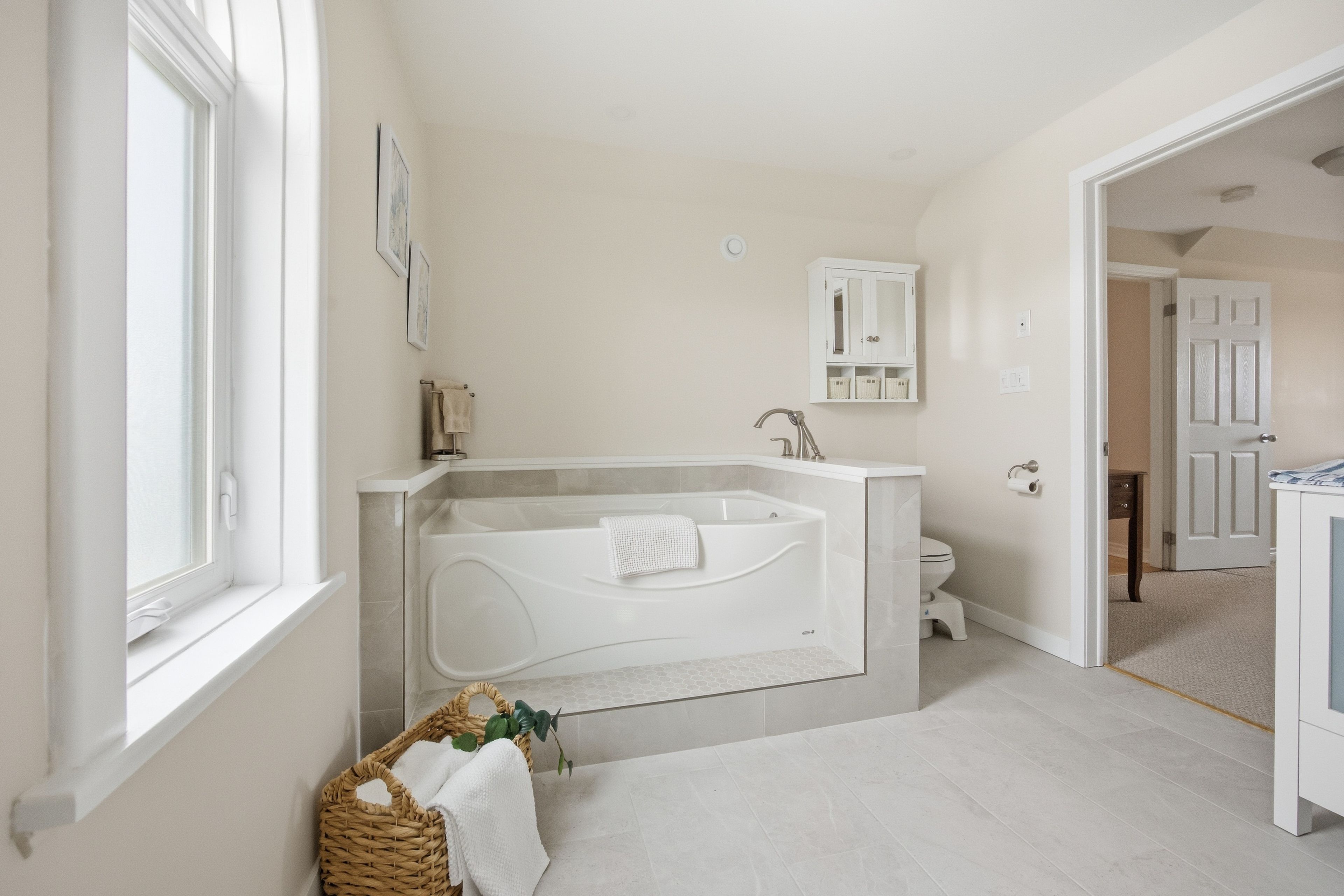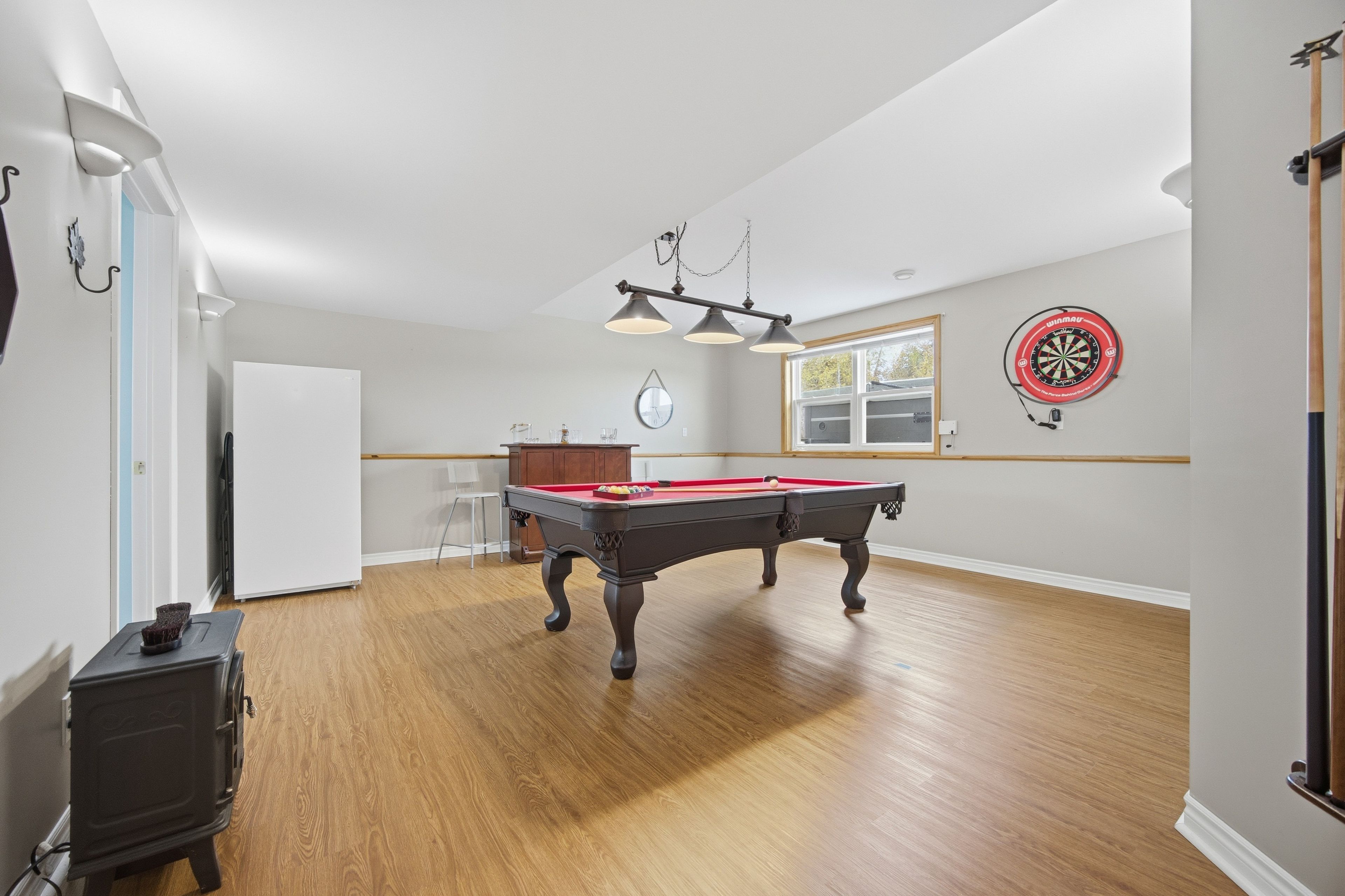 • Lower level includes recreation area, movie room, and extra bedroom.