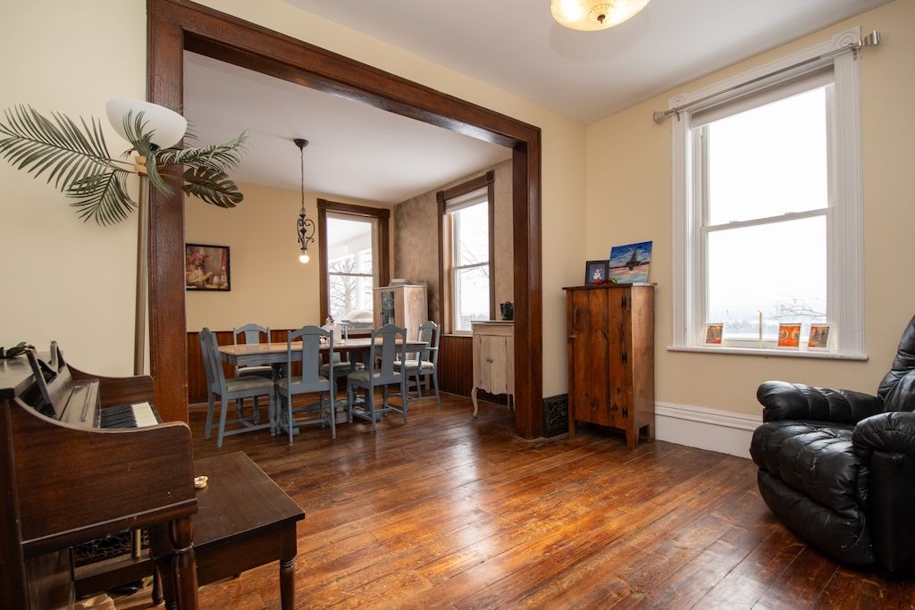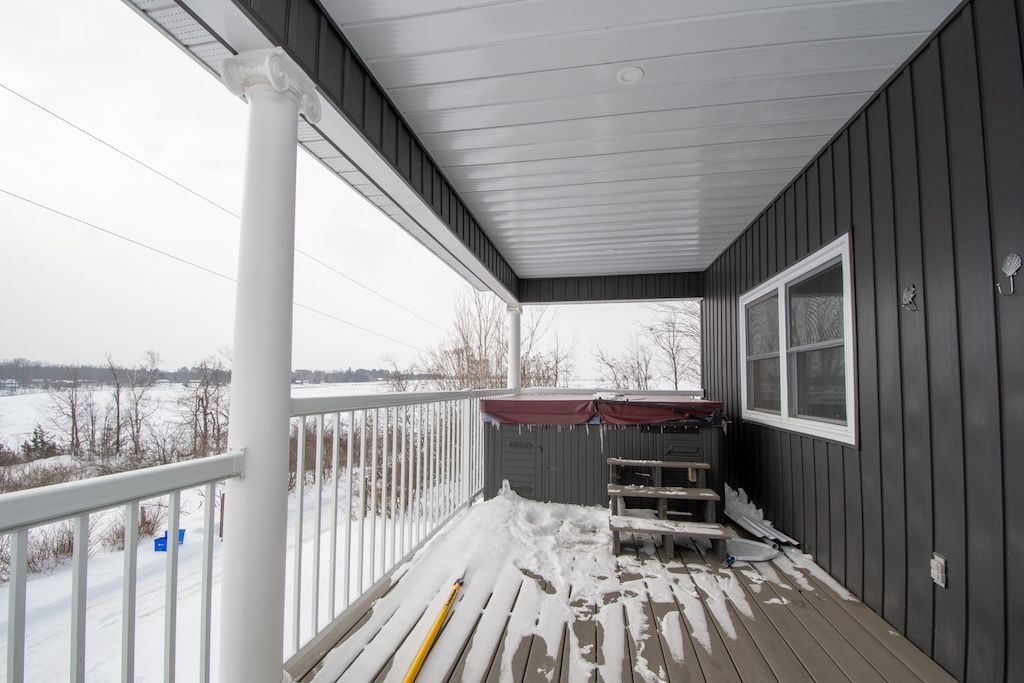 Country charm meets modern luxury in this exceptional brick century farmhouse, seamlessly blended with a stunning 4-year-old addition, offering over 3,500 sq ft of living space. The original farmhouse features a formal living room and dining room, while the expansive eat-in kitchen showcases a large island, new cabinetry with abundant storage, and a walk-in pantry. The main-floor family room impresses with cathedral ceilings, a wood-burning fireplace, and a walkout to a beautifully fenced in-ground pool-perfect for entertaining. A fully refinished century staircase leads to the second level, featuring four generous bedrooms plus a spectacular 22' x 13' primary suite complete with a walk-in closet, full ensuite, and private access to an upper-level balcony with hot tub and breathtaking countryside views. Additional second-floor highlights include a dedicated office, 4-piece bath, and convenient laundry. The property offers exceptional garage space with an oversized 2-car garage providing ample storage and direct access to a large mudroom, plus an additional attached 3-car garage with workshop. The property is serviced by a new septic system (2021), drilled well, 200-amp electrical panel (2022), and two propane furnaces with separate thermostats. All of this is set on a meticulously manicured 1. 1-acre lot with spectacular panoramic country views. Quick access to hwy 115 and 407 for easy commute to the gta.